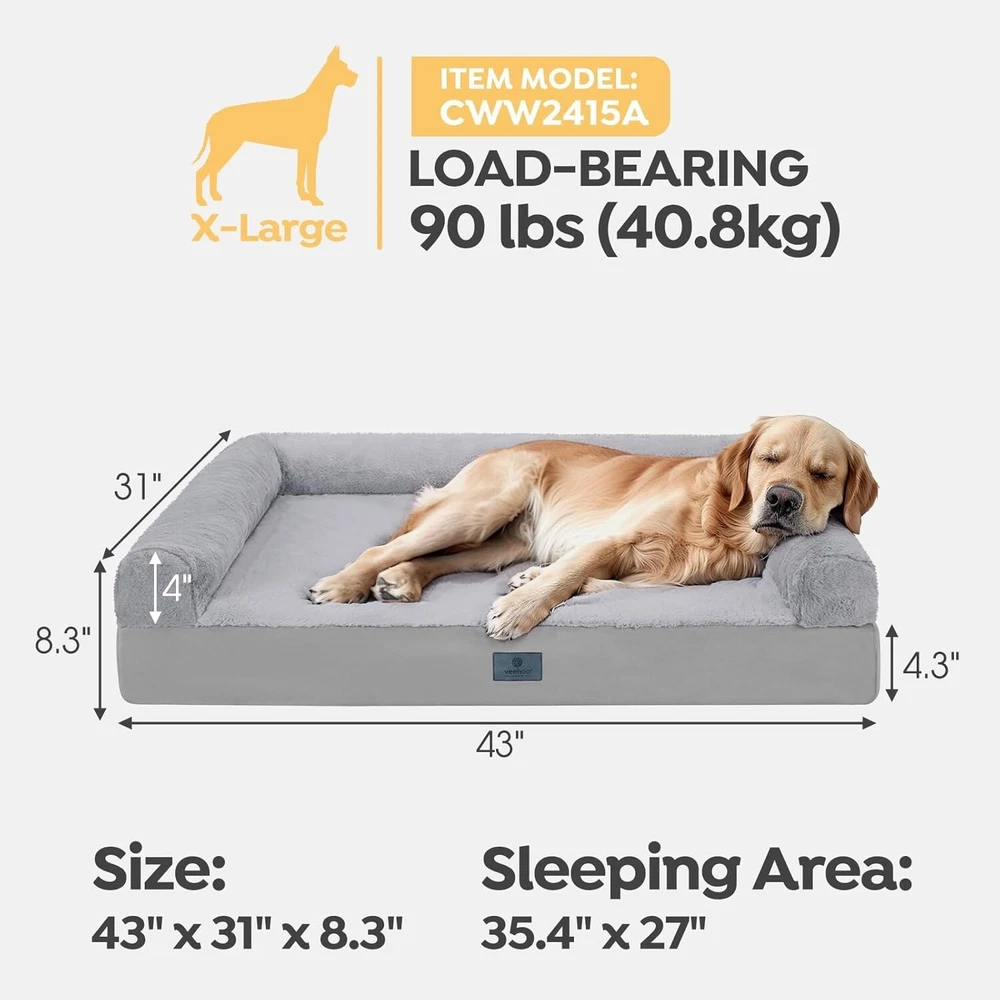 Comfortable 43" x 31" XL Dog Sofa Bed with Egg Crate Foam for Large Breeds ‹ › ‹ › ‹ › ‹ › ‹ › ‹ › ‹ › ‹ › ‹ › ‹ › ‹ › Comfortable 43" x 31" XL Dog Sofa Bed Your beloved furry friend deserves nothing but the best, and our XL Dog Sofa Bed is designed to provide unparalleled comfort and support for large breeds. With dimensions of 43" x 31" x 8.3", including a 4" bolstered side pillow, this bed is perfect for dogs weighing up to 90 lbs. For added comfort and wiggle room, we recommend considering a size up! Key Features: Dimensions: 43" x 31" x 8.3" with 4" bolstered side pillows. 2-in-1 design: Use as a spacious dog bed or remove the outer cover for an orthopedic resting spot. 4.3-inch egg crate foam gently cradles your pet while evenly distributing weight. Ideal for senior dogs and those suffering from arthritis. Fitted sheet cover made from ultra-soft, breathable fabric. Easy to remove and machine washable, ensuring a fresh and clean environment. Non-slip bottom keeps the bed securely in place for your pet's safety. Benefits: Alleviates joint pressure and enhances sleep quality. Offers robust head and neck support, promoting best sleeping posture. Convenient to clean with machine-washable covers. Perfectly designed for large breeds or dogs needing extra space. Stylish appearance that complements your home decor. Why Choose Our XL Dog Sofa Bed? Your furry friend deserves luxurious comfort and support, and our XL Dog Sofa Bed is crafted to meet those needs. With its orthopedic design featuring high-quality egg crate foam, this bed cradles your pet's body, offering relief from joint pain and ensuring restful sleep. The convenient 2-in-1 functionality and easy-care feature make it not only practical but a stylish addition to your home. Invest in a better sleep experience for your pet and elevate their comfort with our XL Dog Sofa Bed. Order today and watch them drift into blissful dreams! Shipping Free & Fast Shipping - We offer free shipping to most of the USA with a normal delivery time of 3-7 days. However, due to the current situation, additional delivery time (up to 3 weeks) may be required for some items. Alternative Carriers - We may use alternative carriers (e.g. USPS, FedEx, UPS, etc.) to ensure your package arrives safely and on time. Due to the use of multiple carriers, we are unable to provide a tracking number automatically. Handling Time - Orders are processed and shipped within 1-2 business days of receiving cleared payment. Shipping Restrictions - Shipping to Alaska, Hawaii, Puerto Rico, Guam, and other US territories may incur shipping charges or delivery restrictions. Please contact us before ordering, or your order can be refunded/cancelled. State Restrictions - There may be restrictions based on your state of purchase. For example, certain items may not be shipped to California due to state regulations. Contact for Tracking Updates - If you require tracking updates or have any concerns about the delivery of your order, please feel free to contact us, and we will be happy to assist you. Return 30-Day Hassle-Free Returns - We want you to be completely satisfied with your purchase. If you are not, you can return the item within 30 days of receiving it for a full refund or exchange. Easy Return Process - To start a return, simply contact us and we will provide you with a prepaid return shipping label and detailed instructions. Restocking Fee - There are no restocking fees for returns. However, the buyer is responsible for return shipping costs if the return is not due to a seller's error. Refund Processing Time - Refunds will be processed within 5 business days of receiving the returned item in its original condition. Payment We accept all major credit cards, PayPal, and Apple Pay for your convenience. Your payment information is secure and encrypted to ensure a safe and seamless transaction. Please complete your payment within 3 days of purchase to avoid any delays in shipping. Feedback Your feedback is extremely important to us. We strive to provide the best products and customer service possible. If you are satisfied with your purchase, please take a moment to leave us a positive review. If you have any concerns or issues with your order, please contact us before leaving negative feedback. We are committed to resolving any problems and ensuring your satisfaction. Contact Us If you have any questions or concerns, please feel free to reach out to our customer support team. You can contact us through the eBay messaging system. We are available Monday to Friday, 9:00 am to 5:00 pm EST, and we will do our best to respond to your inquiry within 24 hours. Buy it now and enjoy a pleasant shopping experience! UPC: Not Set Model: Not Set MPN: Not Set Unit Quantity: 90 Features: Machine Washable,Orthopedic,Portable,Removable Cover,Scratch-Proof,Waterproof,Easy to Clean,Anti-Slip,Durable,Easy to Use Dog Size: XL Type: Cushion Dog Breed: Labrador Retriever Brand: Unbranded Material: Polyester Country/Region of Manufacture: Not Set Unit Type: lb Personalize: Not Set