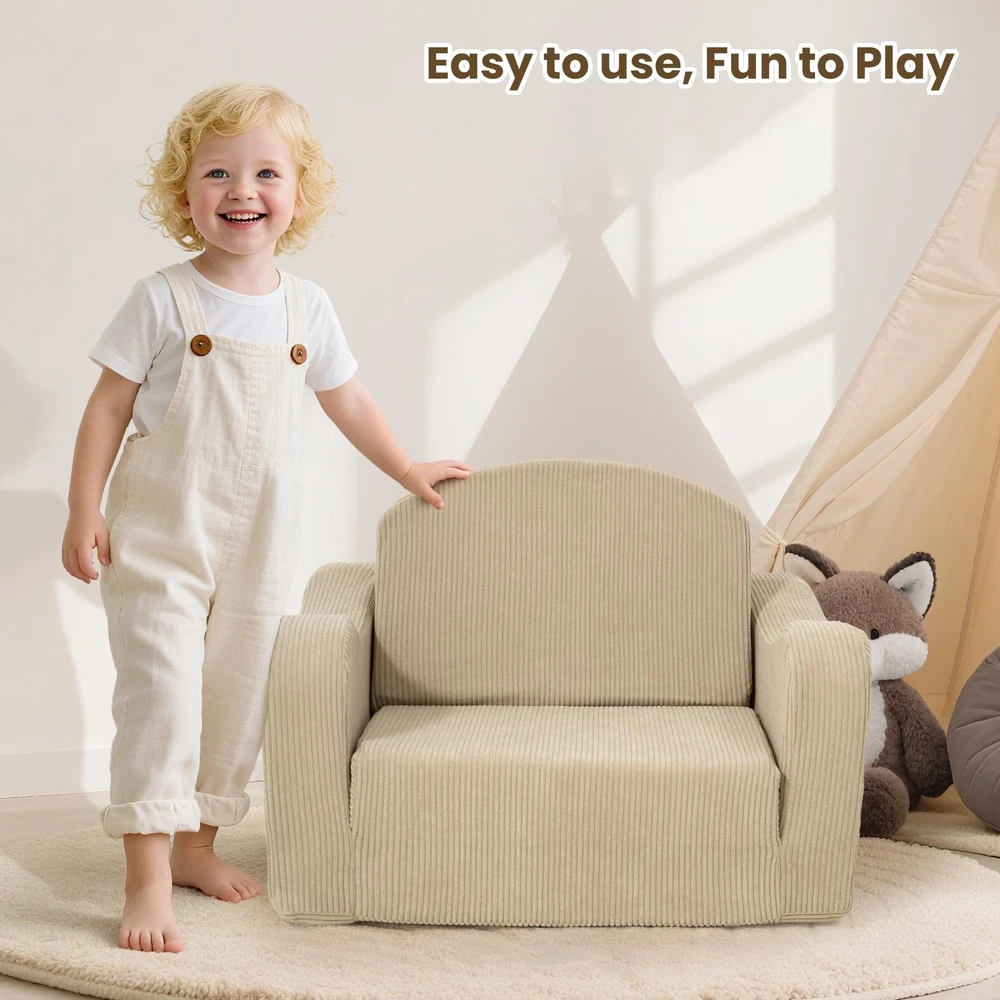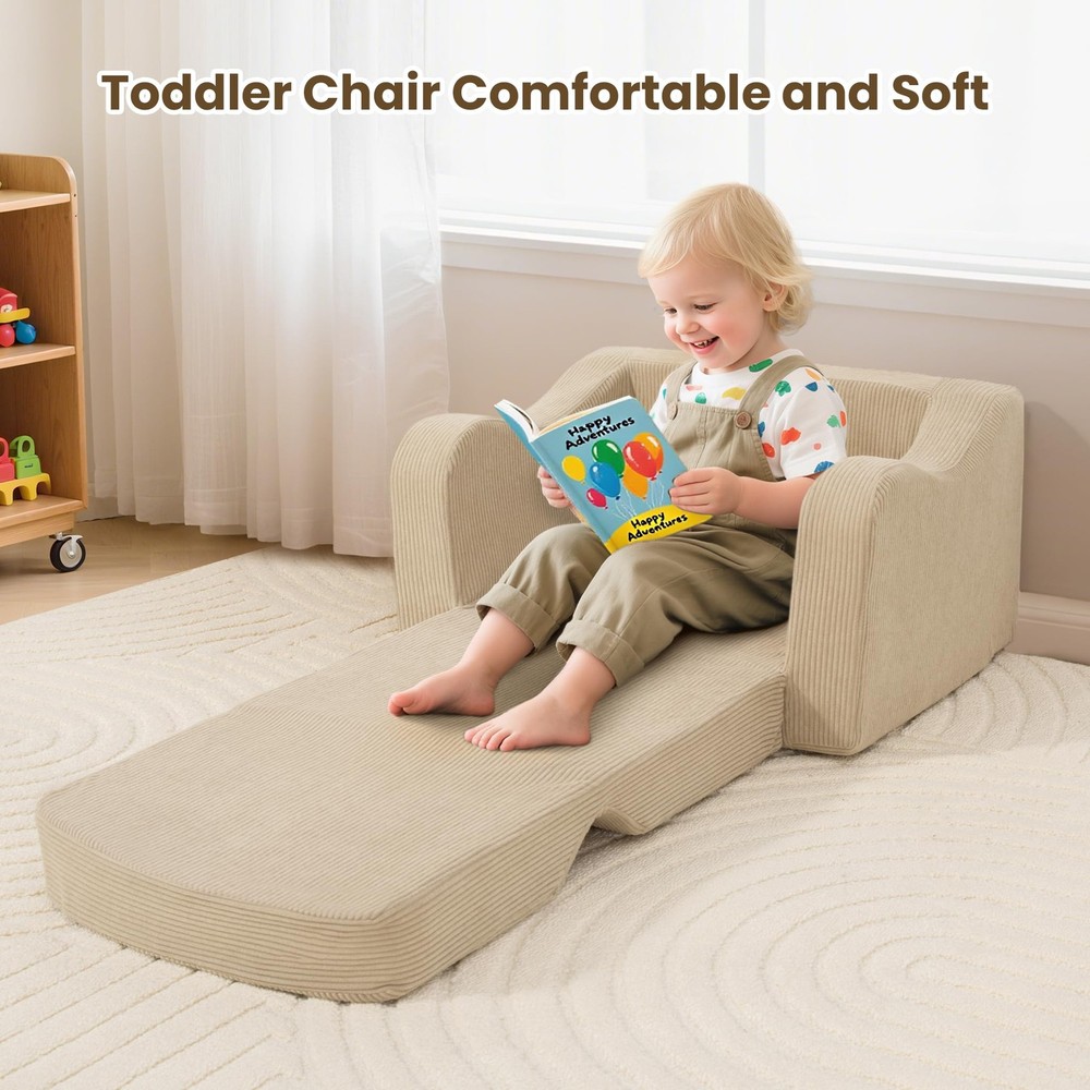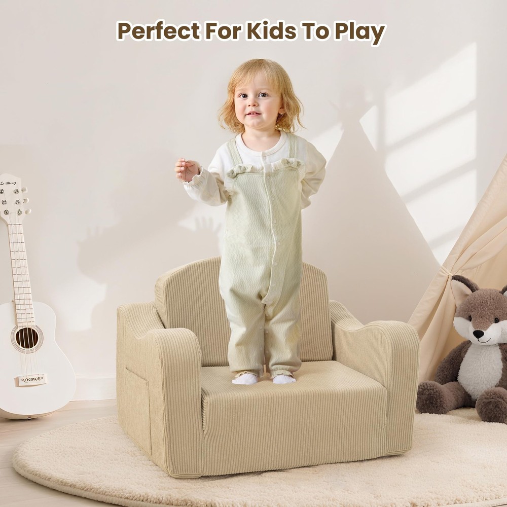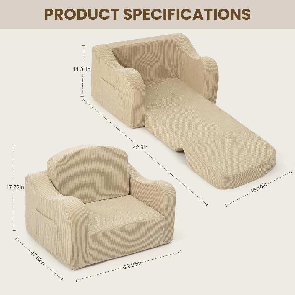 toddler couches that fold out,kids chairs comfy Convertible 2-in-1 Couch : Comfortable toddler chair adapts to every moment, providing a comfortable and supportive space for all their adventures. Whether reading, relaxing or engaging in imaginative play Safety Design: The toddler sofa for kids cover is made of durable, soft skin-friendly fabric. This kids couch is padded with durable, high-density foam for a stable, long-lasting comfort. Designed with safety in mind, it has no sharp corners or hard edges Child-Friendly Design: 2 in 1 fold out toddler couch is perfect for reading, watching, and playing. It pulls out in seconds for a comfortable resting cushion. Practical side pockets keep toddler essentials close at hand, such as books and toys No Installation Required: Our cozy couch for toddler arrive vacuum-packed and pre-assembled. Simply unpack and wait approximately 48-72 hours for them to fully form. You'll get a cuddly, comfortable kids lounge sofa Machine Washable: The kids chairs comfy features a removable, machine-washable zipper cover that's easy to remove and clean. After cleaning, simply follow the provided installation example for successful installation
