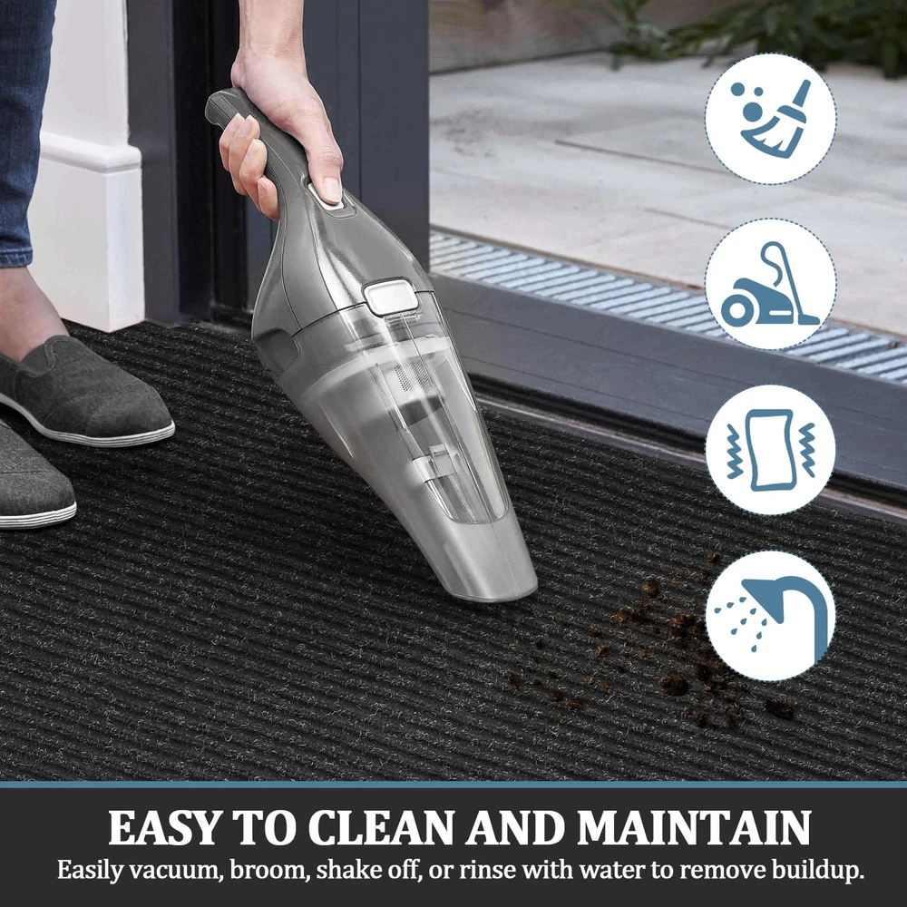 This commercial-grade mat is a game-changer! The extra-wide 3'x10' size catches dirt and moisture perfectly, while the anti-slip rubber backing keeps it securely in place. The low-pile polyester surface is easy to clean, waterproof, and resists fading—ideal for high-traffic indoor/outdoor areas. Sturdy enough for heavy use yet lightweight enough to shake out or hose down. The classic striped design looks sharp while trapping debris in its deep grooves. Perfect for muddy paws, snowy boots, or everyday dirt—this mat handles it all without sliding or staining!