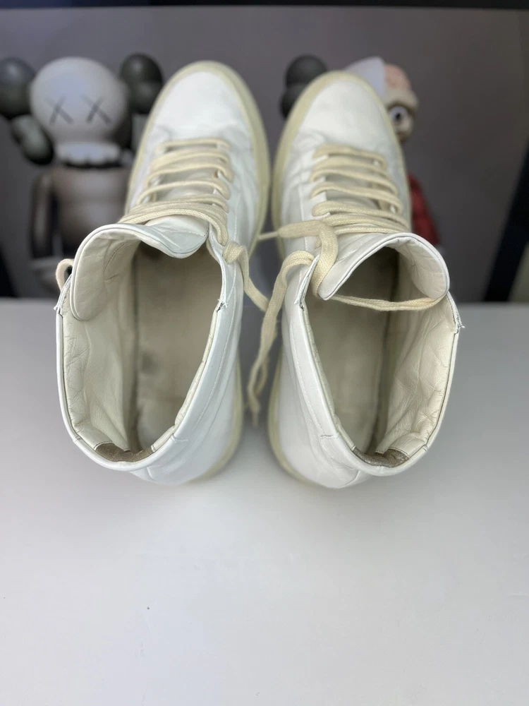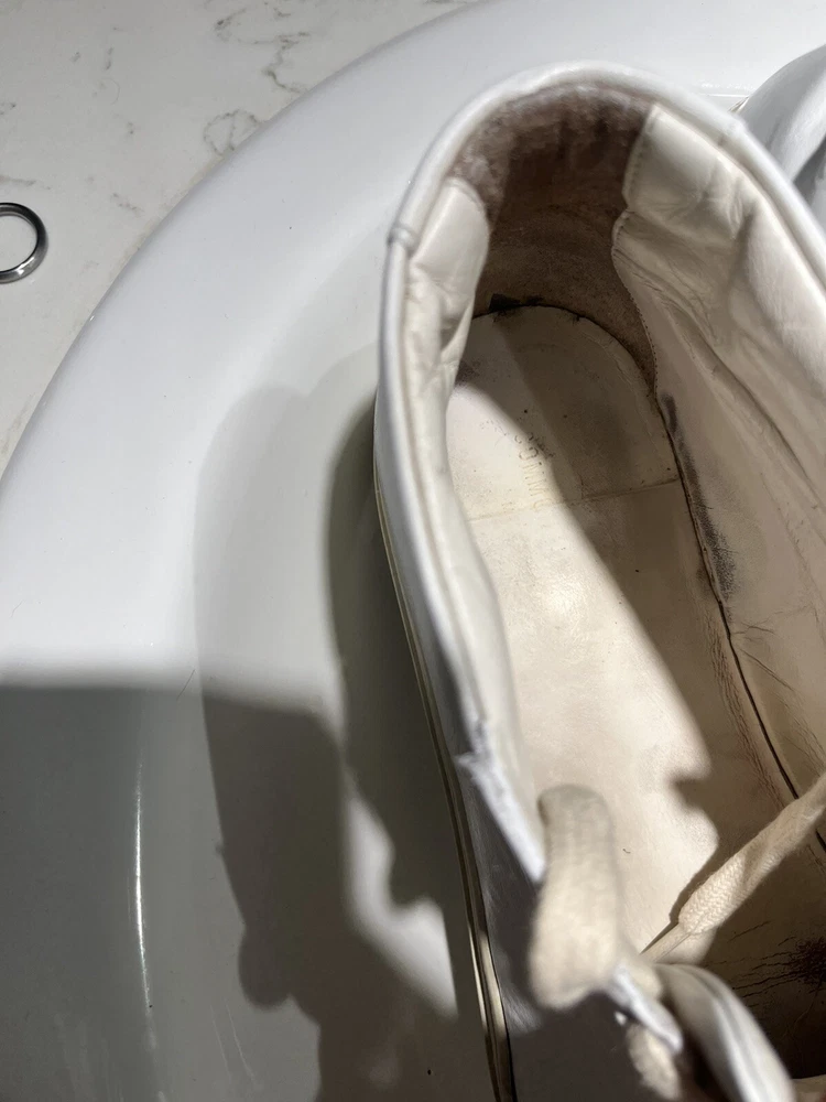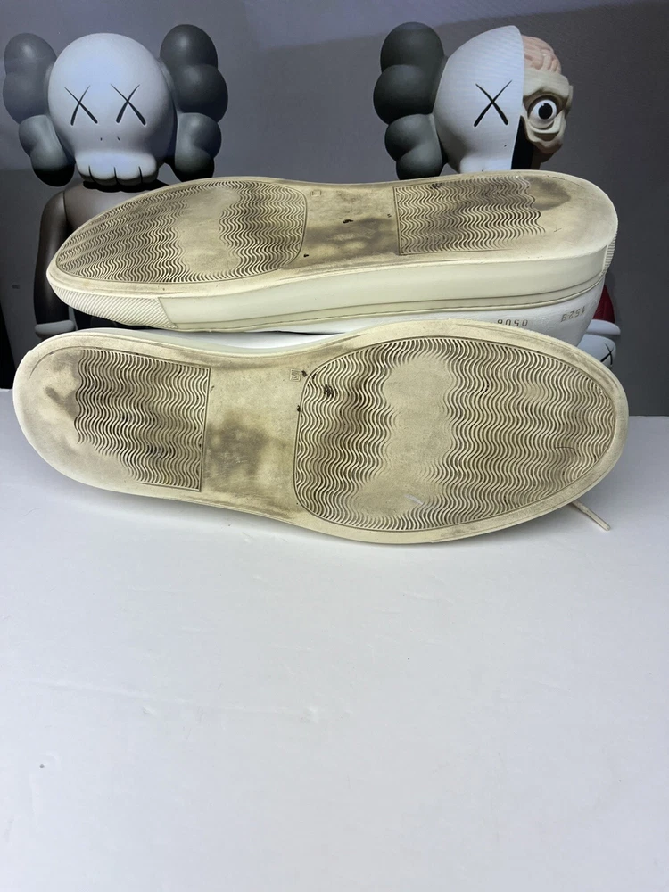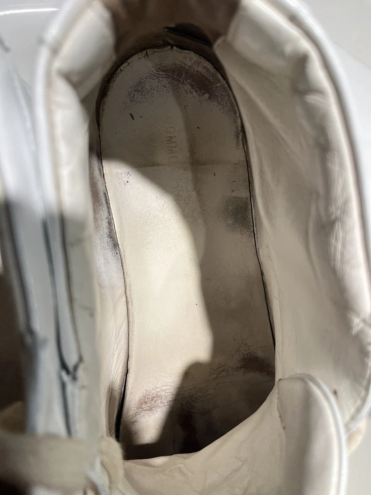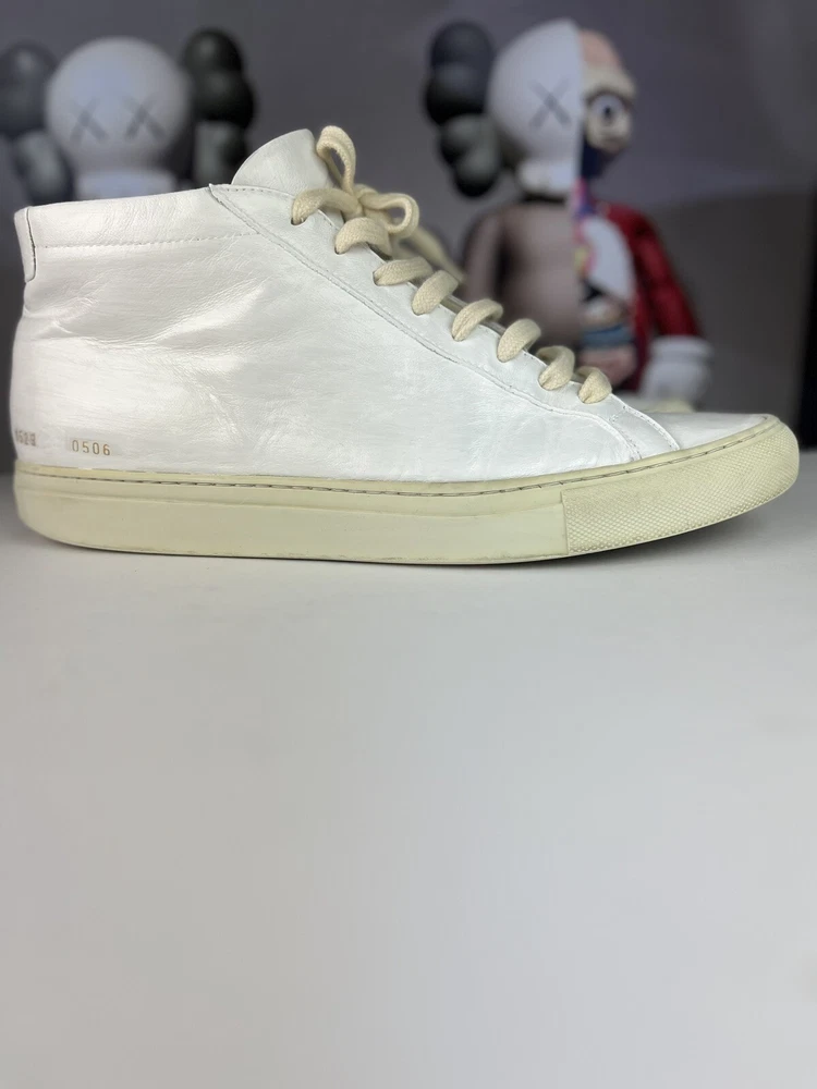 Elevate your casual shoe collection with these Common Projects Achilles Mids. Crafted with high-quality leather in Italy, these sneakers feature a solid white pattern with hand-painted accents. The lace-up closure ensures a secure fit, while the rubber outsole provides durability and traction. These shoes are part of the COMMON PROJECTS Achilles product line and are perfect for men who want to add a stylish touch to their wardrobe. With a UK shoe size of 10 and a US shoe size of 11, these sneakers are available in size 44. The leather lining and insole provide comfort, making these shoes perfect for daily wear. ****this sneakers have been repurposed/ hand painted by hand - giving it the Maison Margiela style