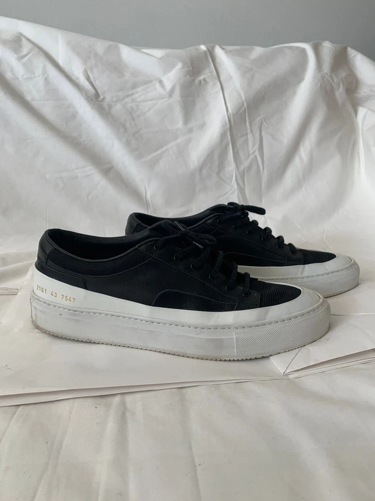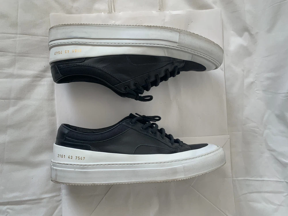 Common Projects Achilles Super, Black and White, Size Men's EU 43 / US 10 Pre-owned condition, Sold as is. Check the exact condition by enlarging photos. Just FYI, I put my items on sale on multiple platforms, so a particular listing can be canceled at any time without further notice when it is sold elsewhere. Serious buyers only - Will consider reasonable offers, but Low baller offers will NOT be responded
