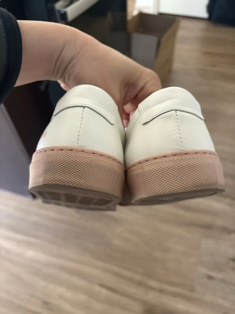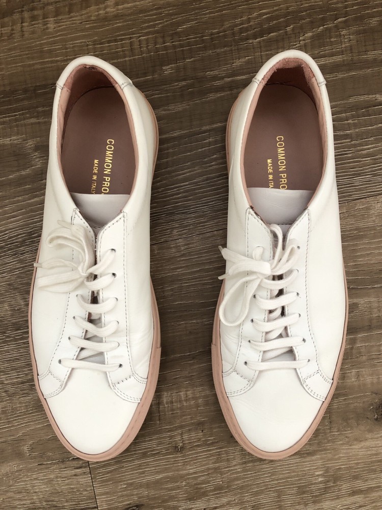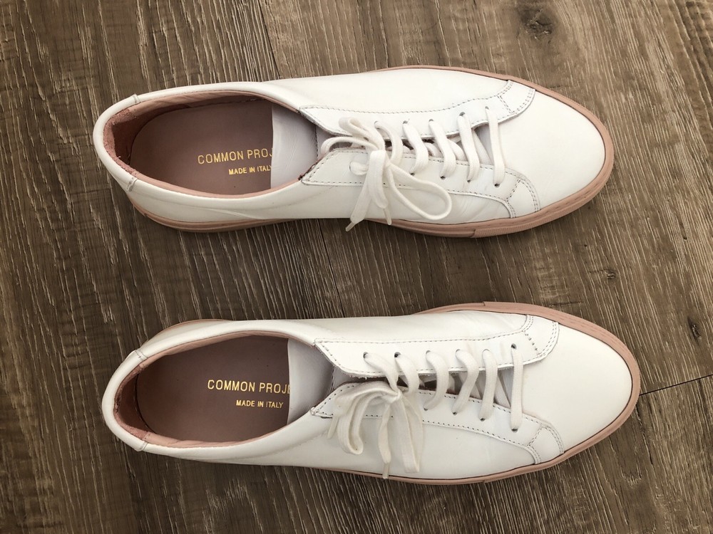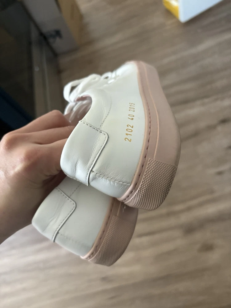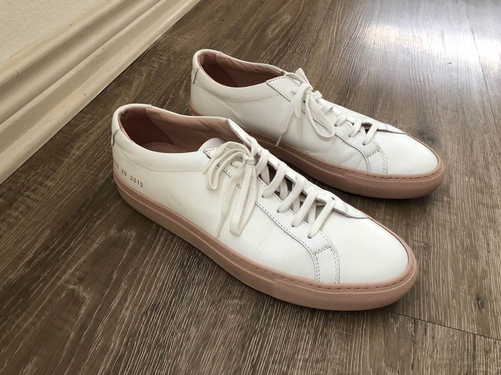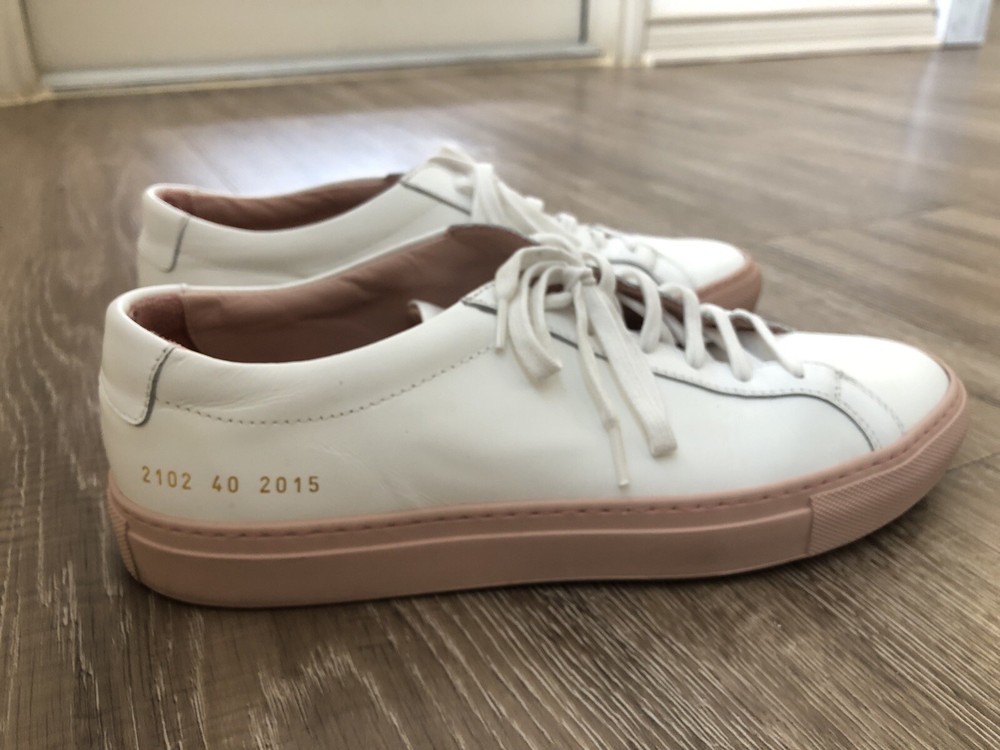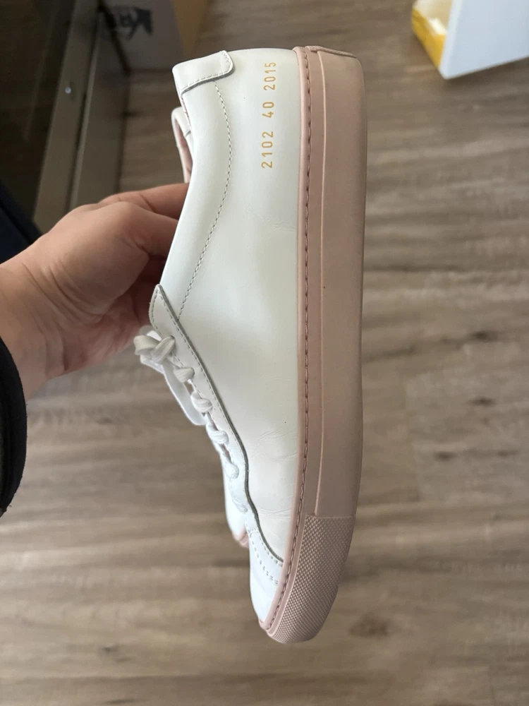 The product is a pair of Common Projects Achilles Low Top Sneakers for men in white color. They are in size EU 40/US 7 with a D width. The sneakers feature a leather upper material and belong to the Common Projects brand. Barely worn! Grab a pair while the deal lasts!