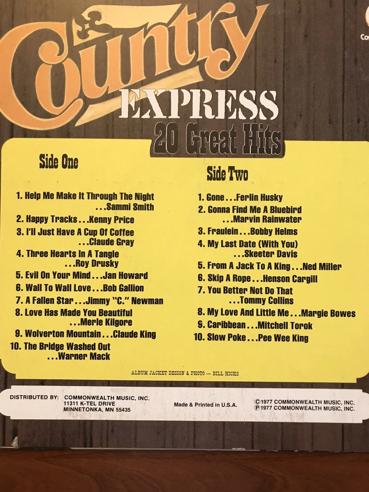 Commonwealth Music Presents Country Express LP Record. This record plays very well. It is in very good condition as well. Condition is "Used". Shipped with USPS Media Mail.