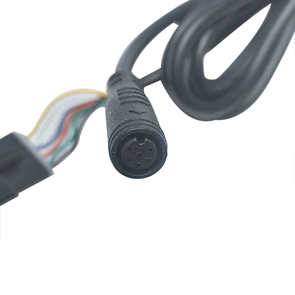 Waterproof Communication Cable from Throttle to Controller for DYU Y16 and Jetson Haze Atlas Folding Electric Bike. The cable is designed for DYU Y16 and JETSON Haze Folding Electric bikes and connects Throttle to the controller. The cable length is about 130cm (51.1 inches) , and a 6-pin round female plug connects Throttle. A 6-pin square male plug at one end connects the controller