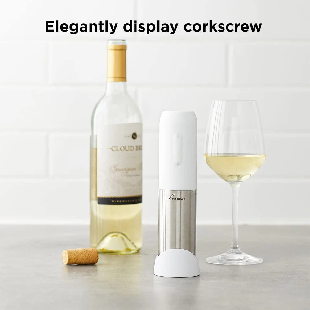No more broken corks or struggling to open bottles of wine. This electric wine opener smoothly opens bottles with a simple up/down button, and works on all types of corks. The base features a built-in foil cutter, and allows you to store the electric corkscrew either vertically or horizontally, customized for your needs. The compact size makes storage simple and efficient. BEST SELLING AUTOMATIC CORKSCREW: A crowd favorite and best-seller, this corkscrew works on both natural and synthetic corks. VERY EASY TO USE: This electric wine bottle opener automatically removes cork from wine bottle upon contact and then automatically ejects cork from wine corkscrew. COMPACT STORAGE: The wine opener can be elegently displayed upright or easily stored away horizontally in a drawer or on a shelf. BUILT-IN WINE FOIL CUTTER: The foil cutter built into the base of the electric wine opener allows you to complete the entire process of opening a bottle of wine with just one tool. Remove foil before openeing the wine bottle. NO BATTERIES NEEDED: The wine opener comes with a micro USB wall charger so you don't need to waste money on additional batteries. A single charge opens 30+ bottles of wine. QUIET & SMOOTH: Sick of excessively loud electric corkscrews? We’ve got you covered! This electric bottle opener opens bottles smoothly and with minimal noise.