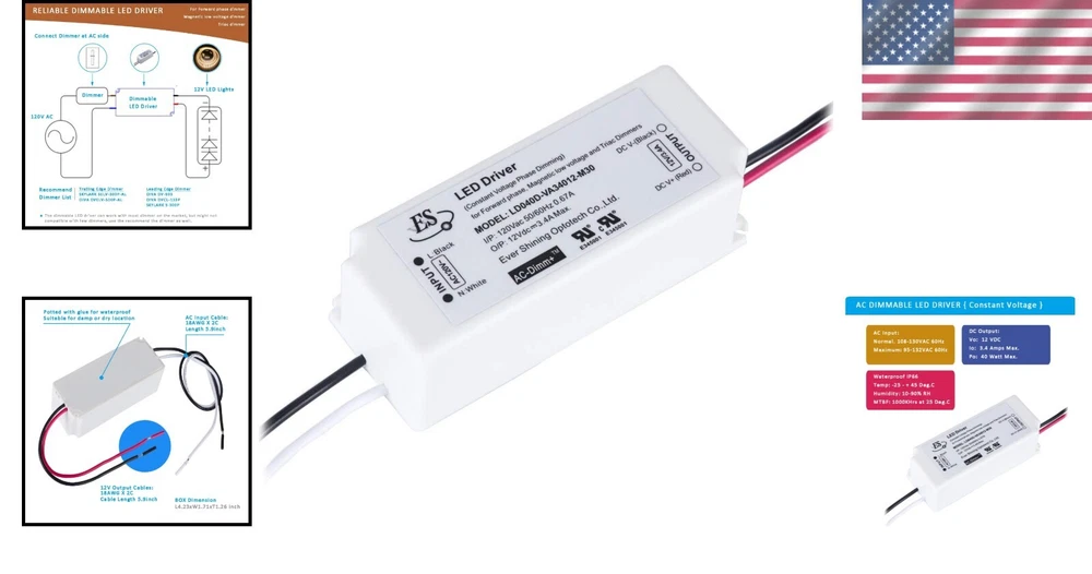 Compact 12V Dimmable LED Power Supply - 3.4A Triac Driver with OVP Protection ‹ › ‹ › ‹ › ‹ › ‹ › ‹ › ‹ › ‹ › Compact 12V Dimmable LED Power Supply -3.4A Triac Driver with OVP Protection Features: Compatible with most dimmer switches, including triac and ELV dimmers from various brands. Experience smooth dimming from 1-100% for your 12 Volt DC LED lighting with new, advanced dimming technology ensuring stability and zero flicker. Perfect for a variety of 12V DC LED lights including LED Strip Lights, Cabinet Lights, Puck Lights, and Rigid Strip Lights. Compact design with dimensions of L4.23 x W1.71 x T1.26 inches, ideal for installations in tight spaces. Easy wiring for hassle-free integration with your 12V lighting setups. Fully potted for waterproofing, making it suitable for both wet and dry locations. Comprehensively designed with full protection features: OVP (Over Voltage Protection), OCP (Over Current Protection), OTP (Over Temperature Protection), and Surge protection. Benefits: Ensure compatibility with various dimmer systems for flexibility in your lighting design. Achieve the perfect ambiance in any space with smooth and stable dimming capabilities. Versatile for use in residential and commercial settings, catering to diverse lighting needs. Space-saving design minimizes clutter and simplifies installation in limited areas. Waterproof features ensure reliability in all environments. Comprehensive protection safeguards your valuable lighting investments. Why choose our Compact 12V Dimmable LED Power Supply? Are you searching for a reliable and efficient power supply for your LED lighting solutions? Our Compact 12V Dimmable LED Power Supply presents an ideal combination of innovation, convenience, and safety. With its advanced dimming technology, compatibility with various dimming systems, and robust protective features, it’s designed to enhance both the functionality and aesthetic of your space. Don’t settle for less when it comes to powering your LED lighting. Embrace a brighter future with our Compact 12V Dimmable LED Power Supply—order yours today! Shipping Free & Fast Shipping - We offer free shipping to most of the USA with a normal delivery time of 3-7 days. However, due to the current situation, additional delivery time (up to 3 weeks) may be required for some items. Alternative Carriers - We may use alternative carriers (e.g. USPS, FedEx, UPS, etc.) to ensure your package arrives safely and on time. Due to the use of multiple carriers, we are unable to provide a tracking number automatically. Handling Time - Orders are processed and shipped within 1-2 business days of receiving cleared payment. Shipping Restrictions - Shipping to Alaska, Hawaii, Puerto Rico, Guam, and other US territories may incur shipping charges or delivery restrictions. Please contact us before ordering, or your order can be refunded/cancelled. State Restrictions - There may be restrictions based on your state of purchase. For example, certain items may not be shipped to California due to state regulations. Contact for Tracking Updates - If you require tracking updates or have any concerns about the delivery of your order, please feel free to contact us, and we will be happy to assist you. Return Please see our eBay Return Policy. Thank you. Payment We accept all major credit cards, PayPal, and Apple Pay for your convenience. Your payment information is secure and encrypted to ensure a safe and seamless transaction. Please complete your payment within 3 days of purchase to avoid any delays in shipping. Feedback Your feedback is extremely important to us. We strive to provide the best products and customer service possible. If you are satisfied with your purchase, please take a moment to leave us a positive review. If you have any concerns or issues with your order, please contact us before leaving negative feedback. We are committed to resolving any problems and ensuring your satisfaction. Contact Us If you have any questions or concerns, please feel free to reach out to our customer support team. You can contact us through the eBay messaging system. We are available Monday to Friday, 9:00 am to 5:00 pm EST, and we will do our best to respond to your inquiry within 24 hours. Thank you for supporting our small family business! UPC: Not Set Item Diameter: 1.26 in Item Height: Not Set Item Length: Not Set Item Weight: Not specified Item Width: Not Set Product Line: Not Set Unit Quantity: 1 Features: Dimmable,Waterproof,Compact,Triac Dimming,Constant Voltage,Low Voltage,Surge Protection,Full Protection Material: Not specified Department: Unisex Baby & Toddler,Boys,Girls,Kids,Teens,Adults Compatible Product: 12V DC LED lights Smart Home Protocol: Not applicable Smart Home Compatibility: Not applicable Compatible Model: Not specified Labels & Certifications: Not Set Brand: Unbranded Type: Power Supply Lighting Technology: LED Number in Pack: 1 Current Type: AC Connectors: Not specified Voltage: 120 V Output Voltage: 12 V Bulb Shape Code: Not applicable Amperage: 3.4 A Power: 40 W Color: Not specified Power Source: AC Mains Bulb Wattage: Not applicable MPN: Not Set Model: Not Set Installation Area: Indoor & Outdoor Power Consumption: 40 W IP Rating: IP67 Style: Not specified LED Chip Code: Not applicable Pattern: Not Set Year Manufactured: Not Set Country/Region of Manufacture: Not Set LED String/Strip Type: Not applicable Compatible Brand: Not Set Manufacturer Warranty: Not Set Unit Type: Not Set Personalized: Not Set