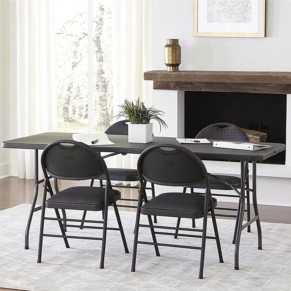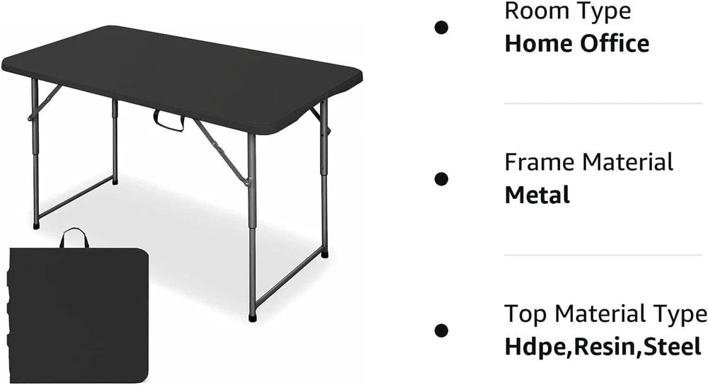 STURDY TABLE FOR ALL OCCASIONS - Built to last with durable materials, this folding table is perfect for use as a small table, card table, or portable desk, and even doubles as a camping table and outdoor table. CONVENIENTLY FOLDABLE - With a compact and foldable design, this folding table is easy to store and transport, making it perfect for those with limited space. MULTIPLE HEIGHT ADJUSTMENTS - The adjustable legs of this foldable desk make it perfect for use as a standing desk or seated workspace, giving you complete flexibility and customization. EASY TO ASSEMBLE - With no complicated setup required, this folding table is easy to assemble and disassemble, making it perfect for those who need a quick and convenient solution for their workspace or recreational needs. VERSATILE AND DURABLE - Made from high-quality materials, this folding table is built to last and can withstand heavy use, making it perfect for both indoor and outdoor use.