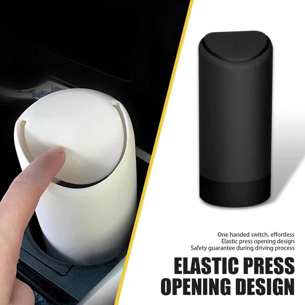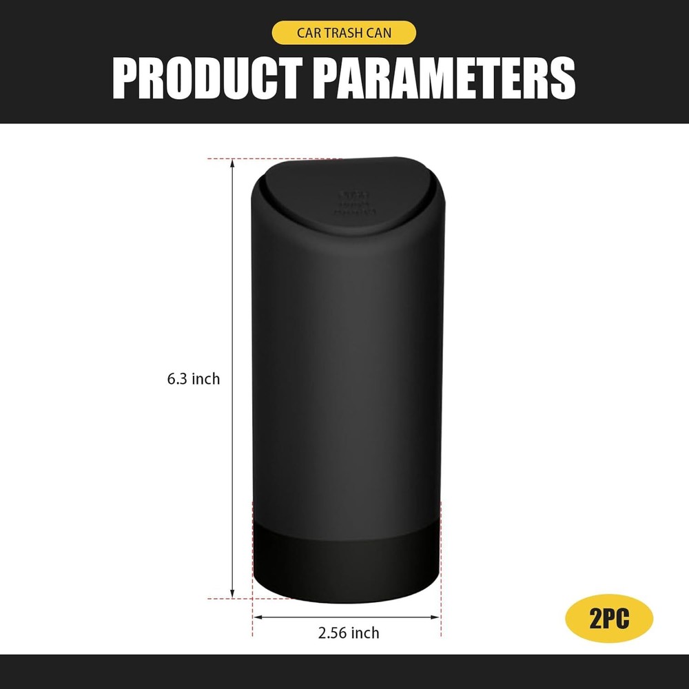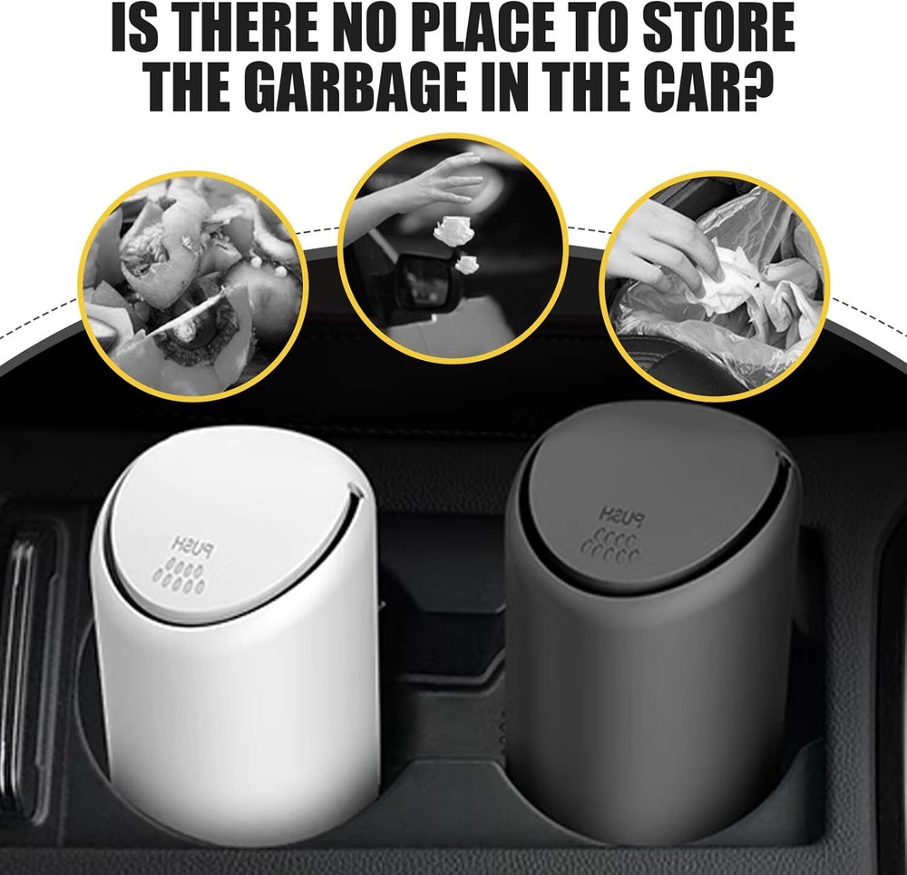 About this item Design with Lid: The design of this trash can with lid can effectively isolate odors and keep fresh air in the car. It is very suitable for storing cigarette butts, peels, tissues, and other waste during travel, so you no longer need to throw it out of the window or put it in the car. Product Details: You will receive 1 piece of car trash can, with overall dimensions of 1"L x 1"W x 1"H. It features a high-end fashion design that is compact and mini, making it easy to carry. Can be placed in car cup holder, center console, or door. Detachable Structure: This trash can has an upper and lower detachable structure, making it easier to wash and clean, thus extending its service life. Made from environmentally friendly materials, it has no special odor, is insulated and flame retardant, and offers enhanced durability. Portable Design: This trash can adopts a push-type design. You can put the garbage in with a gentle push, and it is easy to operate with one hand without affecting driving. It brings a neat and clean environment to your car. Widely Used: This trash can is suitable for most cars and trucks. It can also be used as a desktop trash can in offices, bedrooms, kitchens, computer desks, etc. The simple design is very modern and enhances the overall texture. Dimensions: 1"L x 1"W x 1"H.