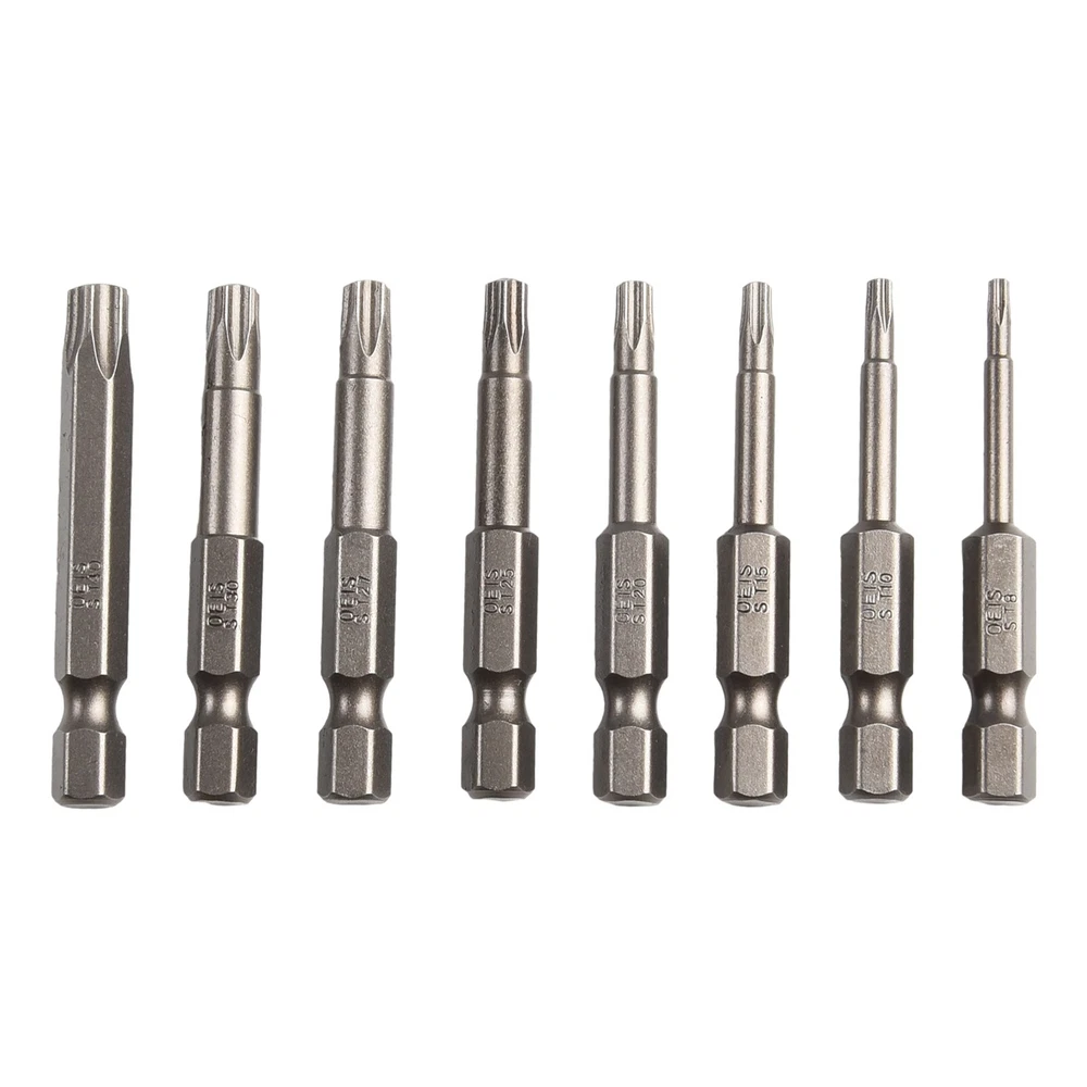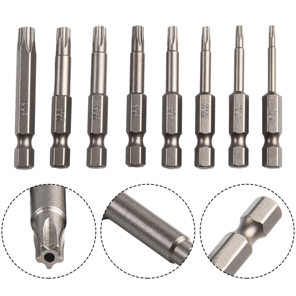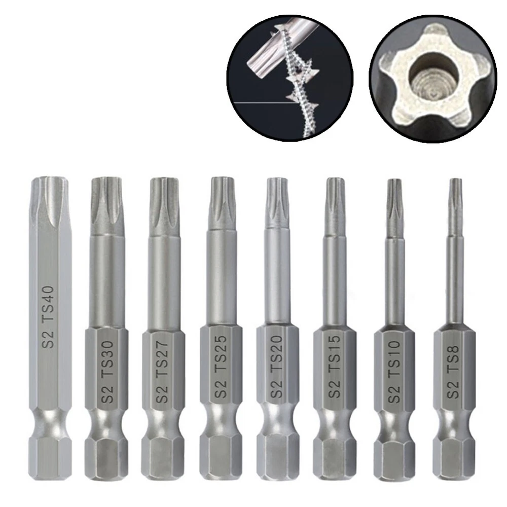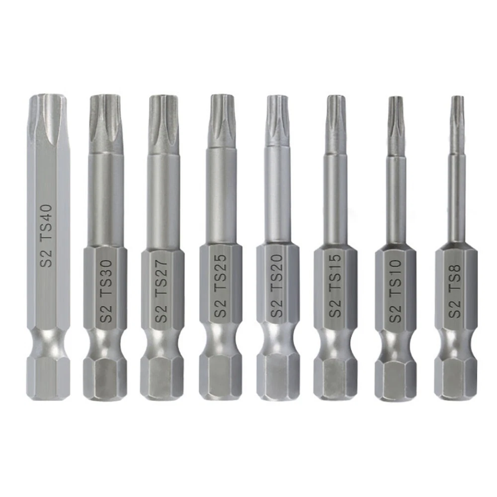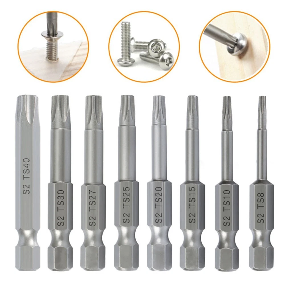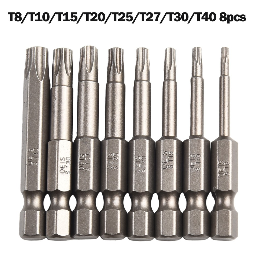 Product Description Features: *High-Quality Material: Made of tough,-resistant material with extremely high abrasion resistance, durability and longevity. *Effortless Screwdriving: With the right screwdriver bar, screws can be easily unscrewed with minimal effort. The bit securely locks onto each edge, damage to both the screw and the screwdriver head. *Versatile Applications: Widely used in manual electric screwdrivers, screwdrivers, drills, and other tools. Suitable for electronics, automotive parts, furniture, and various commercial and industrial applications. *Wide Range of for Torx Sizes: This set includes five-pointed star for Torx head sizes T8, for T10, for T15, for T20, for T25, T27, for T30 and T40, providing a comprehensive solution for various screw sizes. *Convenient Design: The bits have a /4 inch hex shank, compatibility with different screwdriver models. Each bit has a length of 50mm(.96 inches), offering ease of use and maneuverability. Specifications: Product name: for Torx Screwdriver Bit Set Material: Alloy Steel Color: Silver Bit Type: five-pointed star, with Hole Length:(Approx.) 50mm/1.96'' Size: T8, for T10, for T15, for T20, for T25, T27, for T30, T40( of each) Suitable for: electric screwdrivers, screwdrivers, drills, and other tools. Quantity: 8pcs/Set Package Content: 8*Screwdriver Bits Note: .Transition: 1cm=10mm=0.39inch. 2. The real color of the item may be slightly different from the pictures shown on website caused by many factors such as brightness of your monitor and light brightness. 3. Please allow slight manual measurement deviation for the data. Payment Payment must be completed within 5 days. If you have any problems about payment, please contact us via ebay message. Delivery details We only ship to confirmed ebay Order addresses. Please comfirm that your Order address is in line with your shipping address. Please kindly note that the c ombined shipping is not provided because the shipping fee is calculated by weight. Also, the each additional item means exactly the the same color and size. It takes about 7 -15 working days to US; about 10-30 working days to other countries. Transit time may be a little delayed because of the bad weather and customs inspection . If you do not receive your item within 30 working days since payment finished, please contact us immediately for further assistance. Contact us We strive for 100% customer satisfaction! Positive Feedback is very important to us. If you have any questions, p lease feel free to contact us via "Ask seller a question" . We will reply your email within 24 working hours.