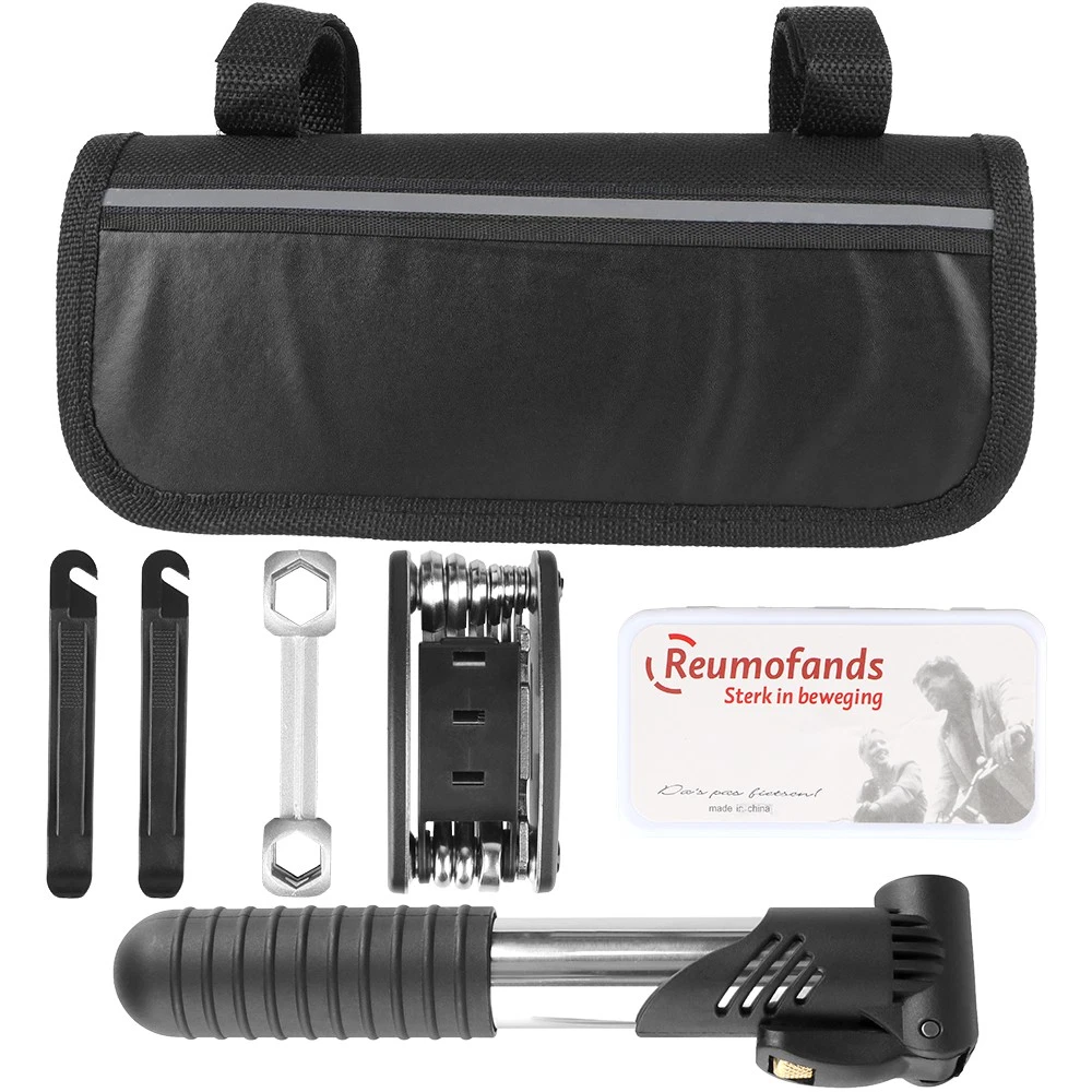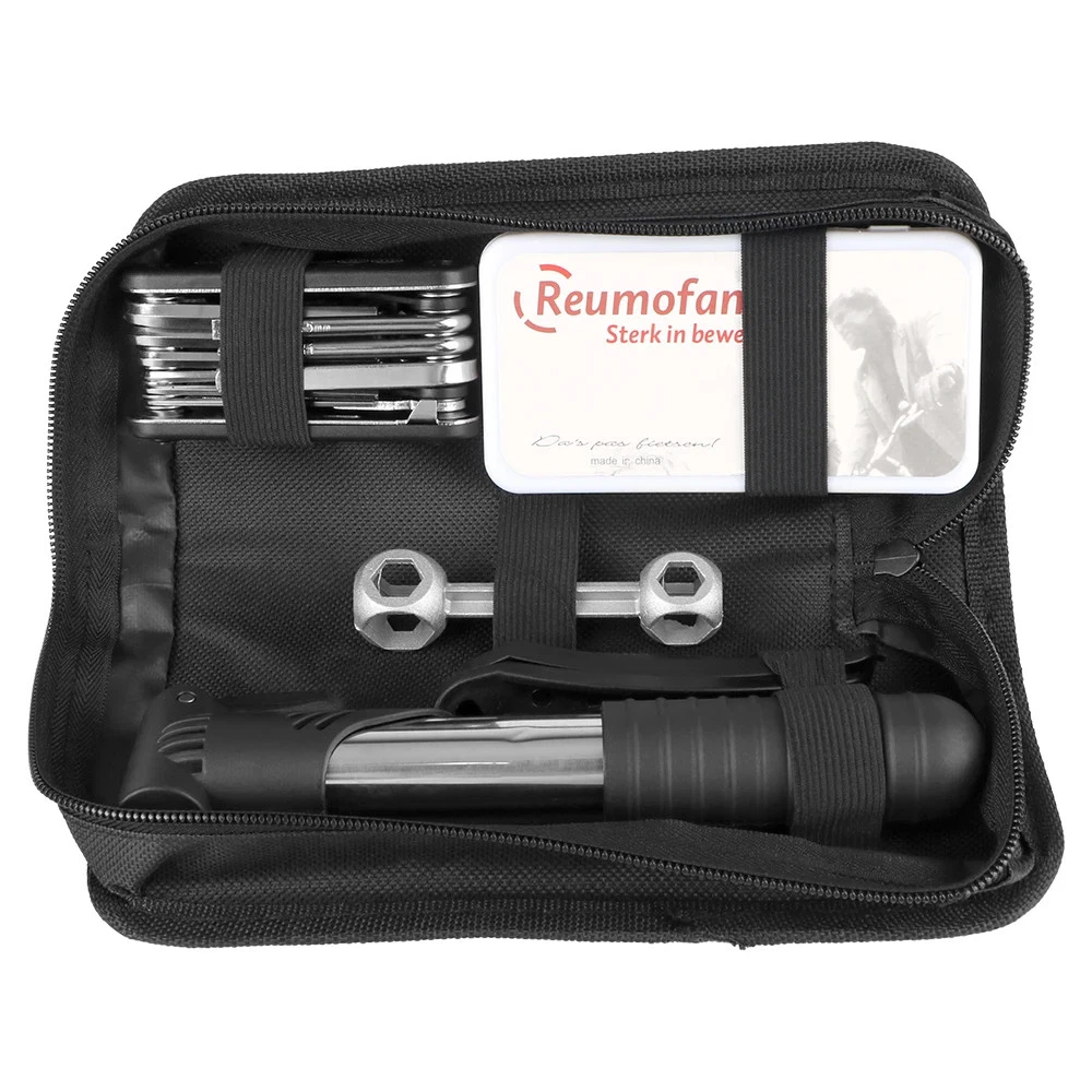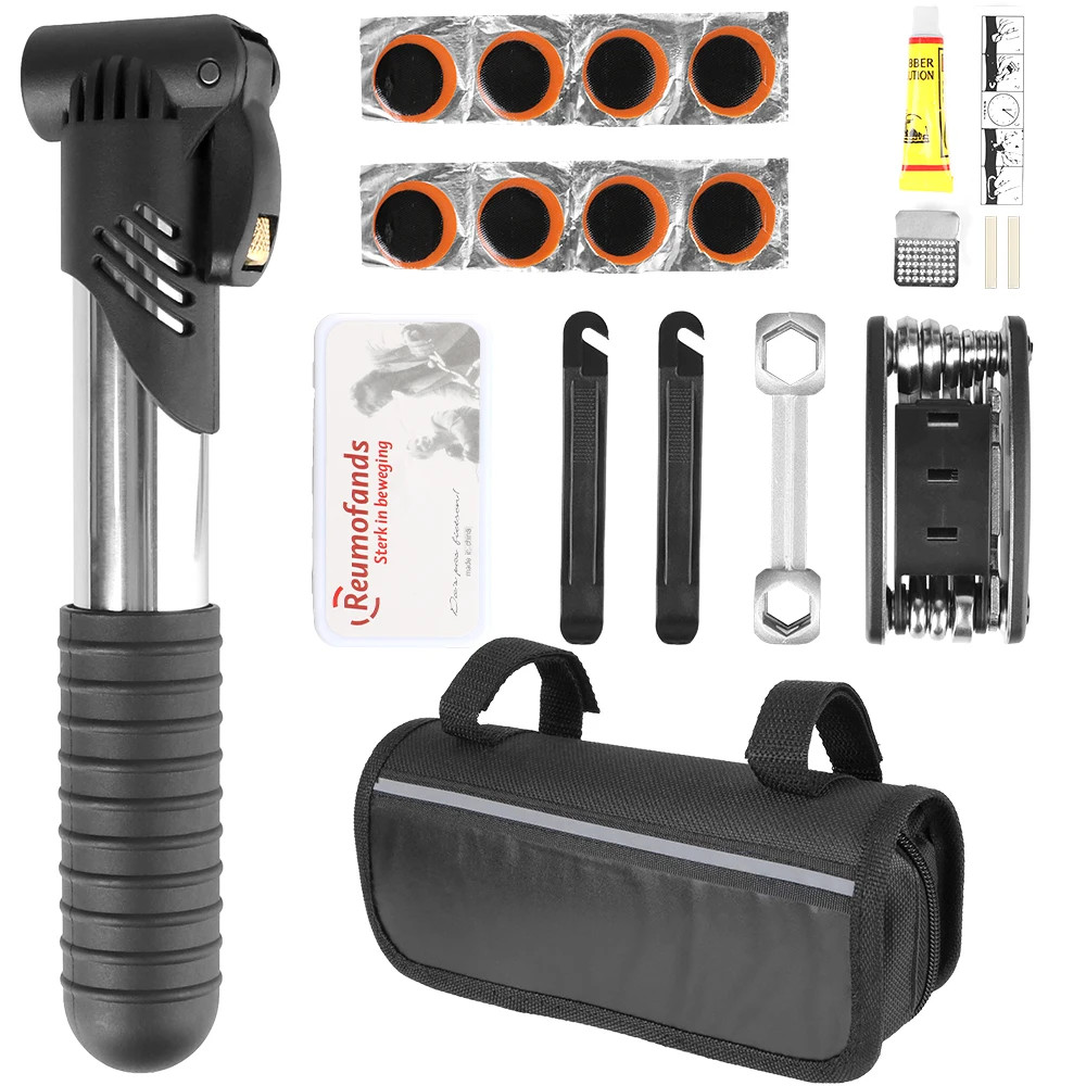 Features: The bike tool kit comes with all the essential tools needed for basic repairs and maintenance of your bicycle , includes : professional bike bag, bicycle pump, multi-function bicycle tools. 16 in 1 Multi-function Bike Repair Tool – Foldable all in one bicycle tool is made of premium quality stainless steel and very sturdy materials. Bike Repair Kit With Pump – mini bike pump is made of high-quality material, reliable and lightweight, compared to conventional portable bicycle pumps. It also can inflate sports balls, swimming rings and strollers Character:Multiple mounting types, suitable for all Kinds of bieycle. Effectively resolve the emergency you will encounter on yourriding trip. Portable and the best companion for your riding. The Bike repair kit is produced for the most convenient bicycle outdoor tire repair to solve cyclists' problems. Specifications: Product Name: Bicycle Repair Kits Material: Metal + Plastic Color: Black Size: As show Package Included: 1x Tool bag 1x Mini pump*1 1x 16 in 1 multi-tool 1x Repair kit box 1x Bone wrench 2x Tire levers