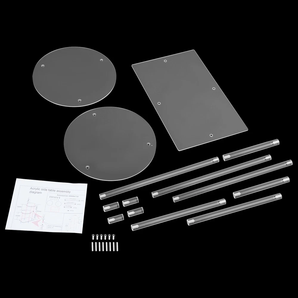 Application This product can be used as a coffee table, display table, or bedside table, for use in bedrooms, living rooms, offices, reception rooms, rest areas, and other places. Specification Material: PC Color: Clear Assembly Required: Yes Style: Modern Desktop Shape: Round Mount Type: Freestanding Number of Tiers: 3 Total Load-bearing Capacity: About 5kg/11.02lbs Plate Thickness: 5mm/0.2in Base Size: 42.4*30cm/16.7*11.8in Each Tabletop Diameter: 30cm/11.8in Total Product Height: 59.7cm/23.5in Lower Tier Height: 30cm/11.8in Distance Between Upper & Lowe Tier: 22.6cm/8.9in Package Size: 41*31*3cm/16.14*12.2*1.18in Gross Weight: 1.1kg/2.43lbs Net Weight: 1.04kg/2.29lbs Package Included 1*Side Table 1*English Installation Diagram Side Table Home Bedside Table with Open Storage Shelf Indoor Clear Side Table US Description This side table is not only sturdy and durable but also thoughtfully designed and powerful. The 3-tier structure allows you to sort various jewelry, cosmetics, lamps, books, snacks, and cups. With this product, you can create a neat and cozy room environment, so that you can have a good mood every day! Key Features Build to Last : Premium PC makes this product environmentally friendly , safe, corrosion-resistant , and less prone to deform, so it can maintain aesthetics and practicality for a long time. Storage Assistant: With its 3-tier construction, this product offers plenty of storage space for your items. You can sort your books, toys, cosmetics, plants, and decorative items (all not included) on separate tiers. Suitable Load-bearing Capacity: High-grade materials( 5mm ) and reasonable structure allow this product to hold about 11.02 lbs in total, so you can use it with confidence. Space-saving : With its stepped structure and vertical design, this product has a small footprint( 16.7*11.8 inches) and can be placed in most corners to create a tidy space. Thoughtful Design : The open design and clear appearance allow you to find the items you need at a glance, reducing search time and improving efficiency. Ideal Gift : Beautiful appearance and practical function make it a thoughtful housewarming gift for friends. Easy to Install : The pre-drilled holes, complete accessories and a detailed English installation diagram allow you to complete installation and start using it in a short period. Nice Appearance: It has a pleasing clear color and smooth lines, giving it a modern appearance that matches most décor styles, making it suitable for most usage scenarios. Effortless Cleaning : With its open construction and smooth surface, you can simply rinse it with water or wipe off surface dust with a damp rag. Good Customer Service : We stand behind all our guests and look forward to assisting you with your purchase. It is our pleasure to answer your confusion and questions. The end of the story between us is not "we sell and you buy". Details Rounded Edges: The rounded edges not only ensure safe use but also enhance the aesthetics of the product. Sturdy Pillars: They are connected by screws, providing very stable support and ensuring the safety of items placed on the product. Application This product can be used as a coffee table, display table, or bedside table, for use in bedrooms, living rooms, offices, reception rooms, rest areas, and other places. Specification Material: PC Color: Clear Assembly Required: Yes Style: Modern Desktop Shape: Round Mount Type: Freestanding Number of Tiers: 3 Total Load-bearing Capacity: About 5kg/ 11.02 lbs Plate Thickness: 5mm/0.2in Base Size: 42.4*30cm/16.7*11.8in Each Tabletop Diameter: 30cm/11.8in Total Product Height: 59.7cm/23.5in Lower Tier Height: 30cm/11.8in Distance Between Upper & Lowe Tier: 22.6cm/8.9in Package Size: 41*31*3cm/16.14*12.2*1.18in Gross Weight: 1.1kg/2.43lbs Net Weight: 1.04kg/2.29lbs Package Included 1*Side Table 1*English Installation Diagram All Accessories for Assembly Notes Please confirm the product dimensions before purchasing. Please note that this product does not contain any decorations. Please allow the slight color difference caused by the shooting light and 1-3 cm error due to manual measurement, and make sure you do not mind before ordering. Payment Delivery details Terms of sales About us Contact us Payment We accept ebay payment 。 Fees such as import duties, taxes are not included in the item price or shipping costs. These charges are the buyer's responsibility. Delivery details Shipping: 2-9 working days to: USA Terms of sales We maintain high standards of excellence and strive for hundred percent customer satisfaction. Feedback is very important to us. We hope that you contact us immediately before you give neutral or negative feedback, so that we can address your concerns. It is impossible to address issues if we do not know about them! About us Your satis faction is our ultimate goal. We work hard to earn your trust and future business. Our certified technicians have tested each item before shipping. The unit comes with 1 year limited warranty on all manufacturing defects. a) If you receive a defective item, you may return it or ask for a discount. Please contact us within 14 days after you receive the package. b) What you returned must be intact and in its original packaging as re? u. Customer is responsible for shipping costs of the returned item. c) We will cover the cost of shipping back t with the shipping rate indicated in the registration page. We will send you a new unit or refund the full payment you paid. Thank you. Contact us Business Hour Business Hour: Monday To Friday: 8:30 AM to 5:00 PM (Beijing China time) Due to time zones, our reply to your questions may not be immediately. But within above working time, we will reply your email within 24 hours. If it's non-workdays, please kindly be patient and wait till Monday. Please contact us with ebay message. Please feel free to contact us if you have any questions. Monday To Friday: 8:30 AM to 5:00 PM (Beijing China time) Due to time zon