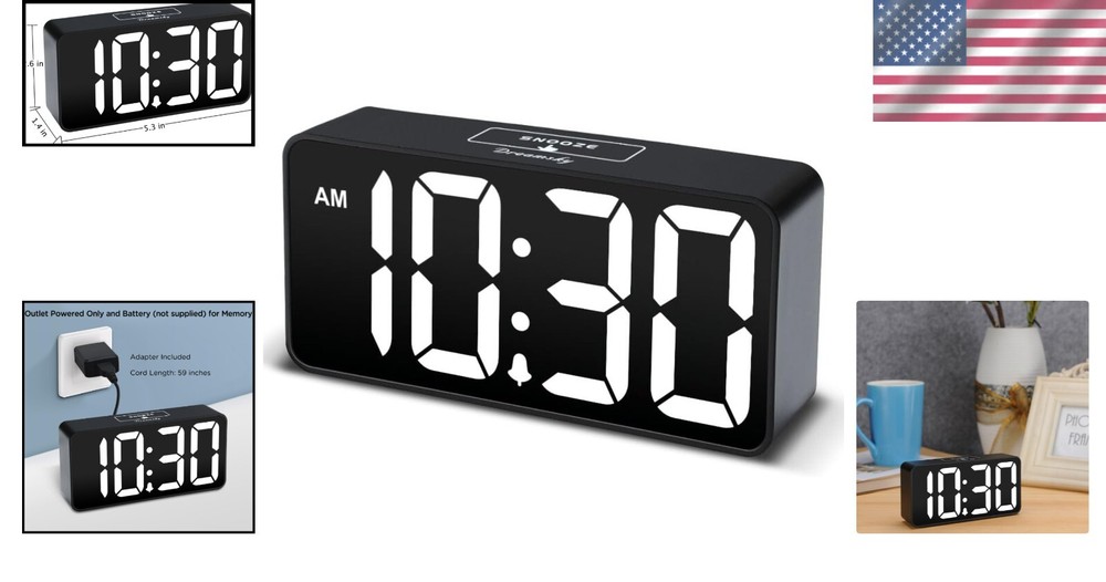 Compact Digital Alarm Clock with Jumbo Numbers & Adjustable Volume Control ‹ › ‹ › ‹ › ‹ › ‹ › ‹ › ‹ › ‹ › ‹ › ‹ › ‹ › Compact Digital Alarm Clock with Jumbo Numbers Elevate your waking experience with our Compact Digital Alarm Clock, designed for clarity and convenience. Features: Large Display: Features 2-inch jumbo illuminated LED digits for easy visibility, even for those with impaired vision. Adjustable Brightness: Customize the display brightness with a convenient dimmer, ensuring it’s just right for your sleep environment. Personalized Alarm Sound: Adjustable beep alarm with a volume range of 30-90 dB, so you can wake up gently or with a bit more urgency. Snooze Feature: Enjoy a 9-minute snooze option for those extra moments of rest. USB Charging Port: Conveniently charge your smartphone or other devices directly from the clock without needing a wall outlet. Easy to Use: Simple interface that makes setting the time and alarms stress-free for kids, seniors, and everyone in between. Battery Backup: Powered by an adapter but equipped with a battery backup (2 x AAA batteries not included) to retain settings during power outages. Benefits: Designed for ease of use and visibility, perfect for daily life. Provides a personalized waking experience with adjustable volume and brightness. Convenient USB charging quickly organizes your space while keeping your devices powered up. Peace of mind with battery backup ensures your alarm settings are saved. Why Choose Our Compact Digital Alarm Clock? Say goodbye to straining your eyes to read the time and worrying about alarming noises that disturb your sleep. This elegant, user-friendly alarm clock offers bright visibility with excellent customization options. Its compact design makes it a seamless addition to any bedside, ensuring you wake refreshed and ready to embrace the day ahead. Don’t compromise on your mornings—opt for clarity, convenience, and style with our Compact Digital Alarm Clock. Experience precise timekeeping and modern functionality at your fingertips. Order now and redefine your wake-up routine! Shipping Free & Fast Shipping - We offer free shipping to most of the USA with a normal delivery time of 3-7 days. However, due to the current situation, additional delivery time (up to 3 weeks) may be required for some items. Alternative Carriers - We may use alternative carriers (e.g. USPS, FedEx, UPS, etc.) to ensure your package arrives safely and on time. Due to the use of multiple carriers, we are unable to provide a tracking number automatically. Handling Time - Orders are processed and shipped within 1-2 business days of receiving cleared payment. Shipping Restrictions - Shipping to Alaska, Hawaii, Puerto Rico, Guam, and other US territories may incur shipping charges or delivery restrictions. Please contact us before ordering, or your order can be refunded/cancelled. State Restrictions - There may be restrictions based on your state of purchase. For example, certain items may not be shipped to California due to state regulations. Contact for Tracking Updates - If you require tracking updates or have any concerns about the delivery of your order, please feel free to contact us, and we will be happy to assist you. Return 30-Day Hassle-Free Returns - We want you to be completely satisfied with your purchase. If you are not, you can return the item within 30 days of receiving it for a full refund or exchange. Easy Return Process - To start a return, simply contact us and we will provide you with a prepaid return shipping label and detailed instructions. Restocking Fee - There are no restocking fees for returns. However, the buyer is responsible for return shipping costs if the return is not due to a seller's error. Refund Processing Time - Refunds will be processed within 5 business days of receiving the returned item in its condition. Payment We accept all major credit cards, PayPal, and Apple Pay for your convenience. Your payment information is secure and encrypted to ensure a safe and seamless transaction. Please complete your payment within 3 days of purchase to avoid any delays in shipping. Feedback Your feedback is extremely important to us. We strive to provide the best products and customer service possible. If you are satisfied with your purchase, please take a moment to leave us a positive review. If you have any concerns or issues with your order, please contact us before leaving negative feedback. We are committed to resolving any problems and ensuring your satisfaction. Contact Us If you have any questions or concerns, please feel free to out to our customer support team. You can contact us through the eBay messaging system. We are available Monday to Friday, 9:00 am to 5:00 pm EST, and we will do our best to respond to your inquiry within 24 hours. Buy it now and enjoy a pleasant shopping experience! Item Length: Digital Alarm Clock Product Line: Digital Alarm Clock Unit Quantity: 0.5 pounds Features: Alarm,Large Display,USB Charging Port,Adjustable Volume,Brightness Dimmer,Snooze Function,Power Adapter,Battery Backup for Memory,Easy Operation Theme: Number Room: Bedroom,Living Room,Kid's Room,Office Material: Plastic Department: Kids,Teens,Adults Type: Digital Clock Display Type: Digital Color: White Movement: Digital Clock Power Source: Corded Electric Style: Modern Finish: White Era: 21st Century (2000-Now) Frame Material: Plastic Shape: Rectangular Protection Plan: No Coverage Item Height: 1 Centimeters Item Weight: Less Than 1 lb Number Type: Arabic Numerals Unit Type: Unit