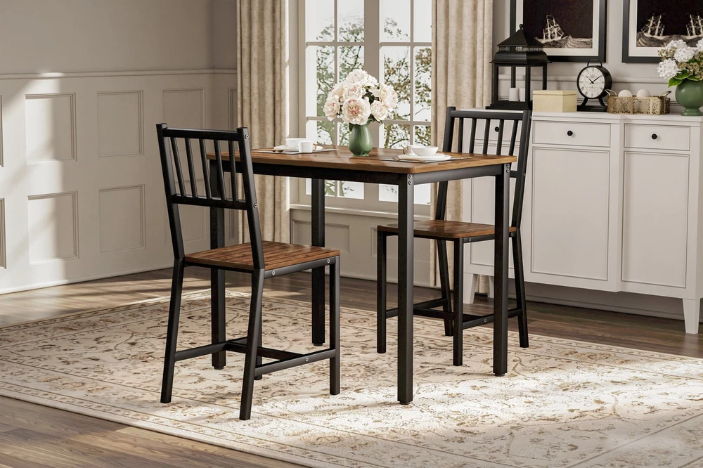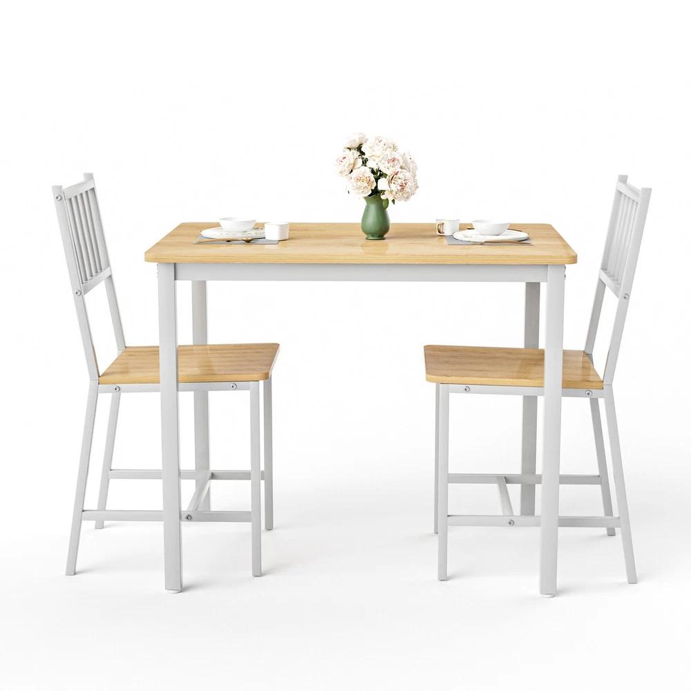 Home Shipping Return Policy About Us Contact Us Feedback Material: E0 Grade MDF, Iron Steel Sizes: Please Check Photos Net Weight: 35 lb Features: 【Compact Design】 - This small dining table set features a compact design to be perfect for small room and apartment. And its compact size allows you to maximize the space and keep room organized for more convenient use. 【Sturdy Frame】- The table and stools are mainly made with MDF panel and steel which is durable and solid enough to support the weight. The largest bearing weight of each stool is 300 pounds and table is 200 pounds to ensure safety. 【Widely Use】- A smooth tabletop with metal legs adds a modern and stylish. It is perfect for kitchen, bar, apartment, small space which can be used as a bar table set, breakfast table set, kitchen table set. 【Easy Assembly】- Easy assembly. Instructions, accessories, and tools included. This kitchen dining table set easy to clean with damp cloth or mild detergent. Parcel Included: Dining Table & 2 Highback Chairs Set (Home Assembly Required, Detailed Installation Instructions and Fittings are Included) Payment Delivery details Terms of sales About us Contact us Payment Thank you for buying, and any payment Ebay accept is OK. Delivery details Usually your parcel or parcels will be handled and sent out in 1 working day. Usually you will receive your parcel or parcels in 2~5 working days, depends on the courier and parcel size, sometimes large parcel is slower. In case there is any problem about tracking or delivery, please feel free to contact us, we will contact courier to resolve, and no matter what, we will resolve for you. Terms of sales Any message from you will be replied in 24 Hours. Any problem will be resolved or offered solutions in 24 Hours. Please kindly do not open any case before contacting us, I promise you that any question or problem will be replied or resolved much faster if you contact us directly. We are all nice and honest people, in case anyone don't reply you in polite manner, or anyone don't resolve your problem in good way, send a message with a title Your manager, then I will take care your problem by myself. Thank you very much, and I am the company owner, Jess Wang. About us A experienced team to service USA people and market, we always be available to our customers, we don't let anyone wait longer than 24 Hours, please feel free to contact us at any time. Contact us Free Return for any problem even it is just a slight problem when you want to return. Please kindly contact us before opening any case. When you want to return just because you buy wrong or just don't like it or just don't want it, also, just contact us, we will assist you as always. Have a lovely day, thank you for visiting.