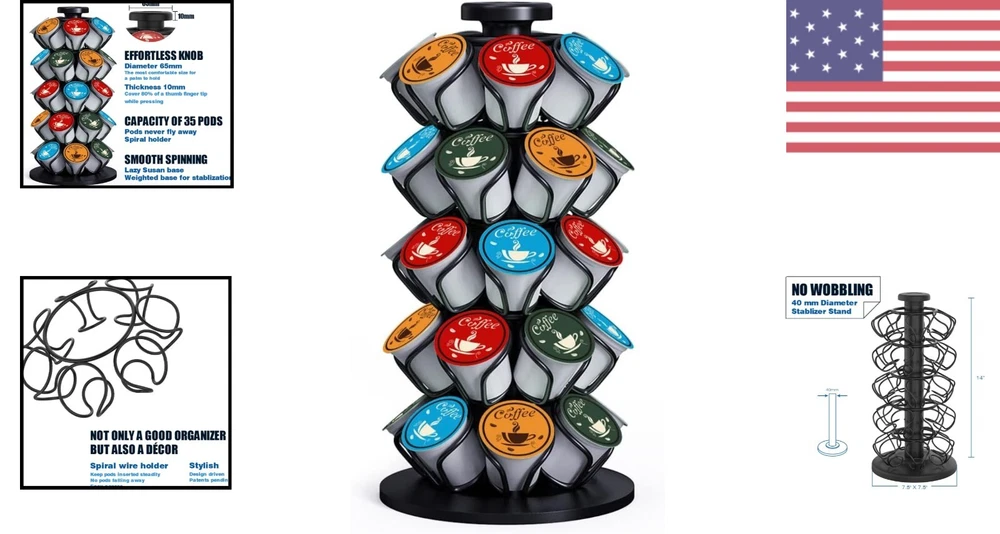 Compact Lazy Susan Coffee Pod Holder - Accommodates 35 K-Cup Pods Effortlessly ‹ › ‹ › ‹ › ‹ › ‹ › ‹ › ‹ › ‹ › Compact Lazy Susan Coffee Pod Holder The perfect blend of innovation and elegance for your coffee ritual! This Lazy Susan coffee pod holder accommodates up to 35 K-Cup pods effortlessly, offering a stylish and practical solution for your coffee storage needs. Features: Capacity of 35 Pods : Compatible with K-Cups and other 3rd party coffee pods suitable for Keurig brewers. Wobble Free Stand : Designed with a 40 mm diameter central stand and a weighted base for exceptional stability, ensuring a smooth and steady spin every time. Stylish Design : Patented spiral holders keep coffee pods secured and add a chic touch to your countertop. Effortless Use : The spinning knob is thoughtfully crafted with a 65 mm diameter for easy grip, while the 10 mm touching surface provides comfort for your fingers. Space Saving : Compact size fits seamlessly in most kitchens, ideal for cabinets that are typically 15" or 18" higher than countertops. Why Choose Our Compact Lazy Susan Coffee Pod Holder? Elevate your coffee experience with a storage solution designed for style and efficiency! Say goodbye to cluttered kitchen counters and welcome this sleek holder that not only organizes your coffee pods but also enhances your kitchen aesthetic. Whether you're a casual drinker or a coffee aficionado, this carousel allows you to display your favorite pods elegantly while saving space. Join us at , where innovation meets craftsmanship. Our focus on smart designs and quality ensures that every coffee moment is a delightful experience. Don’t miss the chance to transform your coffee corner—order your Compact Lazy Susan Coffee Pod Holder today! Shipping Free & Fast Shipping - We offer free shipping to most of the USA with a normal delivery time of 3-7 days. However, due to the current situation, additional delivery time (up to 3 weeks) may be required for some items. Alternative Carriers - We may use alternative carriers (e.g. USPS, FedEx, UPS, etc.) to ensure your package arrives safely and on time. Due to the use of multiple carriers, we are unable to provide a tracking number automatically. Handling Time - Orders are processed and shipped within 1-2 business days of receiving cleared payment. Shipping Restrictions - Shipping to Alaska, Hawaii, Puerto Rico, Guam, and other US territories may incur shipping charges or delivery restrictions. Please contact us before ordering, or your order can be refunded/cancelled. State Restrictions - There may be restrictions based on your state of purchase. For example, certain items may not be shipped to California due to state regulations. Contact for Tracking Updates - If you require tracking updates or have any concerns about the delivery of your order, please feel free to contact us, and we will be happy to assist you. Return 30-Day Hassle-Free Returns - We want you to be completely satisfied with your purchase. If you are not, you can return the item within 30 days of receiving it for a full refund or exchange. Easy Return Process - To start a return, simply contact us and we will provide you with a prepaid return shipping label and detailed instructions. Restocking Fee - There are no restocking fees for returns. However, the buyer is responsible for return shipping costs if the return is not due to a seller's error. Refund Processing Time - Refunds will be processed within 5 business days of receiving the returned item in its original condition. Payment We accept all major credit cards, PayPal, and Apple Pay for your convenience. Your payment information is secure and encrypted to ensure a safe and seamless transaction. Please complete your payment within 3 days of purchase to avoid any delays in shipping. Feedback Your feedback is extremely important to us. We strive to provide the best products and customer service possible. If you are satisfied with your purchase, please take a moment to leave us a positive review. If you have any concerns or issues with your order, please contact us before leaving negative feedback. We are committed to resolving any problems and ensuring your satisfaction. Contact Us If you have any questions or concerns, please feel free to reach out to our customer support team. You can contact us through the eBay messaging system. We are available Monday to Friday, 9:00 am to 5:00 pm EST, and we will do our best to respond to your inquiry within 24 hours. Buy it now and enjoy a pleasant shopping experience! UPC: Not Set Unit Quantity: 3.19 lbs Material: Metal,Iron Features: Wobble Free,Wobble Free Stand,Stylish Design,Large Spinning Knob,Space Saving Mounting: Free Standing Set Includes: Not Set Department: Unisex Brand: Unbranded Item Height: Coffee Pod Holder Item Length: Coffee Pod Holder Item Width: Coffee Pod Holder Type: K Cup Holder Color: Black Size: Medium Number of Shelves: 1 Number of Compartments: Not Set Shape: Not Set Number of Tiers: 1 MPN: Not Set Style: Modern Rack Type: Carousel/ Revolving Country/Region of Manufacture: Not Set Wood Tone: Not Set Item Depth: 7.5 in Item Diameter: 7.5 in Item Weight: 3.19 lbs Capacity: 35 Pods Capsule/Pod Capacity: Not Set Model: Not Set Unit Type: Not Set Personalize: Not Set