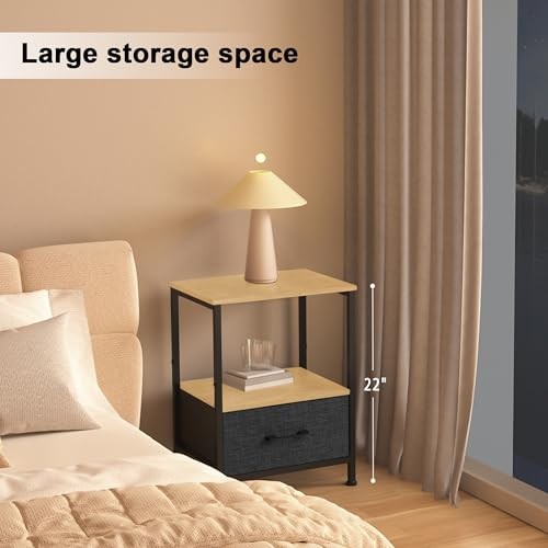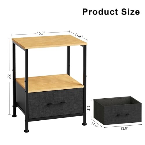 $ 44.3Nightstand with USB Charging Station and Adjustable Fabric Drawer for Bedroom Storage