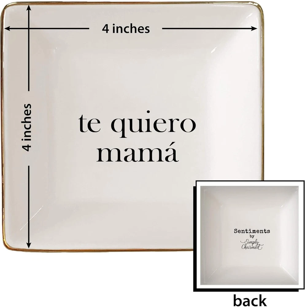 Compact Square Jewelry Dish - Spanish Mama Mother's Day Gift in Polished Ceramic ‹ › ‹ › ‹ › ‹ › ‹ › ‹ › ‹ › Compact Square Jewelry Dish -Spanish Mama Mother's Day Gift in Polished Ceramic Features: Cute ring holder dish that holds jewelry Reminds mom that she is loved Beautiful white ceramic trinket tray Measures a little over 10 cm x 10 cm Perfect size for small treasures Fits nicely on a bedside table or near a bathroom sink Benefits: Great gift for mom Sentimental birthday present Conveys love and appreciation Memorable and lasting gift High quality and durable Perfect for Mother's Day or birthday Why choose our Compact Square Jewelry Dish? Looking for a special gift for mom that she can use every day? Our Compact Square Jewelry Dish is the perfect choice. Not only does it hold her jewelry, but it also serves as a constant reminder of your love and appreciation. Made of beautiful white ceramic, it is the perfect size for her small treasures and fits nicely on a bedside table or near a bathroom sink. Don't miss out on this heartfelt and memorable gift - order your Compact Square Jewelry Dish today! Shipping Free & Fast Shipping - We offer free shipping to most of the USA with a normal delivery time of 3-7 days. However, due to the current situation, additional delivery time (up to 3 weeks) may be required for some items. Alternative Carriers - We may use alternative carriers (e.g. USPS, FedEx, UPS, etc.) to ensure your package arrives safely and on time. Due to the use of multiple carriers, we are unable to provide a tracking number automatically. Handling Time - Orders are processed and shipped within 1-2 business days of receiving cleared payment. Shipping Restrictions - Shipping to Alaska, Hawaii, Puerto Rico, Guam, and other US territories may incur shipping charges or delivery restrictions. Please contact us before ordering, or your order can be refunded/cancelled. State Restrictions - There may be restrictions based on your state of purchase. For example, certain items may not be shipped to California due to state regulations. Contact for Tracking Updates - If you require tracking updates or have any concerns about the delivery of your order, please feel free to contact us, and we will be happy to assist you. Return 30-Day Hassle-Free Returns - We want you to be completely satisfied with your purchase. If you are not, you can return the item within 30 days of receiving it for a full refund or exchange. Easy Return Process - To start a return, simply contact us and we will provide you with a prepaid return shipping label and detailed instructions. Restocking Fee - There are no restocking fees for returns. However, the buyer is responsible for return shipping costs if the return is not due to a seller's error. Refund Processing Time - Refunds will be processed within 5 business days of receiving the returned item in its original condition. Payment We accept all major credit cards, PayPal, and Apple Pay for your convenience. Your payment information is secure and encrypted to ensure a safe and seamless transaction. Please complete your payment within 3 days of purchase to avoid any delays in shipping. Feedback Your feedback is extremely important to us. We strive to provide the best products and customer service possible. If you are satisfied with your purchase, please take a moment to leave us a positive review. If you have any concerns or issues with your order, please contact us before leaving negative feedback. We are committed to resolving any problems and ensuring your satisfaction. Contact Us If you have any questions or concerns, please feel free to reach out to our customer support team. You can contact us through the eBay messaging system. We are available Monday to Friday, 9:00 am to 5:00 pm EST, and we will do our best to respond to your inquiry within 24 hours. Thank you for supporting our small family business!