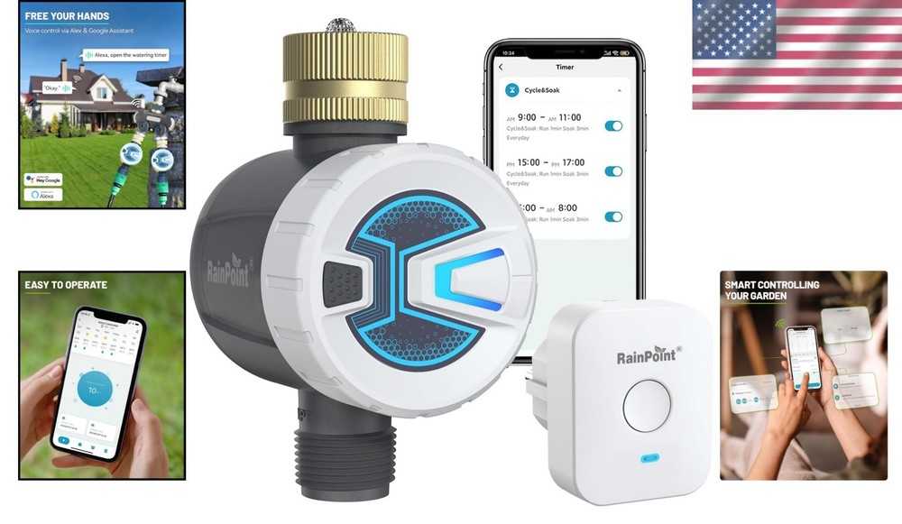 Compact WiFi Water Timer for Garden Hose - Remote Control & Rain Delay Options ‹ › ‹ › ‹ › ‹ › ‹ › ‹ › ‹ › ‹ › ‹ › ‹ › Compact WiFi Water Timer for Garden Hose - Remote Control & Rain Delay Options Features: Smart App Control: Remotely control your watering system via the TUYA APP anytime, anywhere, when connected to 2.4Ghz WiFi. Bluetooth Connectivity: No WiFi? Connect via Bluetooth from up to 60 meters away for seamless control. Expandable Irrigation System: Add multiple water timers to cover more areas efficiently; recommended up to 4 timers for optimal stability. Flexible Watering Schedule: Set multiple personalized watering schedules, with options for normal cycle mode or soaker cycle mode for maximized efficiency and reduced water costs. Rain Delay & Manual Watering: Easily adjust schedules with a 24/48/72 hour rain delay or activate one-click manual watering without disrupting your pre-set schedule. Track Watering Records: Independent watering record page that logs start time, duration, and end time of each session, facilitating a data-driven management approach to your gardening needs. Benefits: Manage your garden from anywhere, ensuring your plants receive the perfect amount of water tailored to their needs. Enjoy a hassle-free experience with remote access and additional features that make watering automated and precise. Save on your water bill while maximizing hydration through smart scheduling and adjustable watering durations. Be prepared for unexpected weather changes with straightforward rain delay options. Maintain complete control and oversight of your irrigation system for sustainable gardening. Why choose our Compact WiFi Water Timer? Embrace the future of gardening with our Compact WiFi Water Timer. Designed for the modern gardener, this innovative system grants you the ability to effortlessly manage your watering needs from the palm of your hand. With its user-friendly app, you can oversee your garden's hydration even when you're miles away. Coupled with rain delay options and efficient watering schedules, this timer is not just a tool; it's your partner in maintaining a beautiful, thriving garden. Invest in your passion for gardening – choose our Compact WiFi Water Timer today and watch your garden flourish effortlessly! Shipping Free & Fast Shipping - We offer free shipping to most of the USA with a normal delivery time of 3-7 days. However, due to the current situation, additional delivery time (up to 3 weeks) may be required for some items. Alternative Carriers - We may use alternative carriers (e.g. USPS, FedEx, UPS, etc.) to ensure your package arrives safely and on time. Due to the use of multiple carriers, we are unable to provide a tracking number automatically. Handling Time - Orders are processed and shipped within 1-2 business days of receiving cleared payment. Shipping Restrictions - Shipping to Alaska, Hawaii, Puerto Rico, Guam, and other US territories may incur shipping charges or delivery restrictions. Please contact us before ordering, or your order can be refunded/cancelled. State Restrictions - There may be restrictions based on your state of purchase. For example, certain items may not be shipped to California due to state regulations. Contact for Tracking Updates - If you require tracking updates or have any concerns about the delivery of your order, please feel free to contact us, and we will be happy to assist you. Return 30-Day Hassle-Free Returns - We want you to be completely satisfied with your purchase. If you are not, you can return the item within 30 days of receiving it for a full refund or exchange. Easy Return Process - To start a return, simply contact us and we will provide you with a prepaid return shipping label and detailed instructions. Restocking Fee - There are no restocking fees for returns. However, the buyer is responsible for return shipping costs if the return is not due to a seller's error. Refund Processing Time - Refunds will be processed within 5 business days of receiving the returned item in its condition. Payment We accept all major credit cards, PayPal, and Apple Pay for your convenience. Your payment information is secure and encrypted to ensure a safe and seamless transaction. Please complete your payment within 3 days of purchase to avoid any delays in shipping. Feedback Your feedback is extremely important to us. We strive to provide the best products and customer service possible. If you are satisfied with your purchase, please take a moment to leave us a positive review. If you have any concerns or issues with your order, please contact us before leaving negative feedback. We are committed to resolving any problems and ensuring your satisfaction. Contact Us If you have any questions or concerns, please feel free to out to our customer support team. You can contact us through the eBay messaging system. We are available Monday to Friday, 9:00 am to 5:00 pm EST, and we will do our best to respond to your inquiry within 24 hours. Buy it now and enjoy a pleasant shopping experience! Set Includes: Hose Features: Smart App Control,Expandable Irrigation System,Flexible Watering Schedule,Rain Delay,Manual Watering,Track Watering Records,Remote Control,Multiple Watering Schedules,Normal Cycle Mode,Soaker Cycle Mode,Rain Delay Feature,Manual Watering Function Smart Home Protocol: Bluetooth,Wi-Fi Smart Home Compatibility: Tuya Smart App Suitable For: Occasional Watering Material: Metal Type: Sprinkler Timer Number of Zones: Not Specified Number of Watering Programs: 12 Number of Outlets: Not Specified Watering Duration: Not Specified Watering Frequency: Not Specified Number of Items in Set: 1 Control Style: App Control Power Source: Not Specified Color: Brass Item Weight: Not Specified
