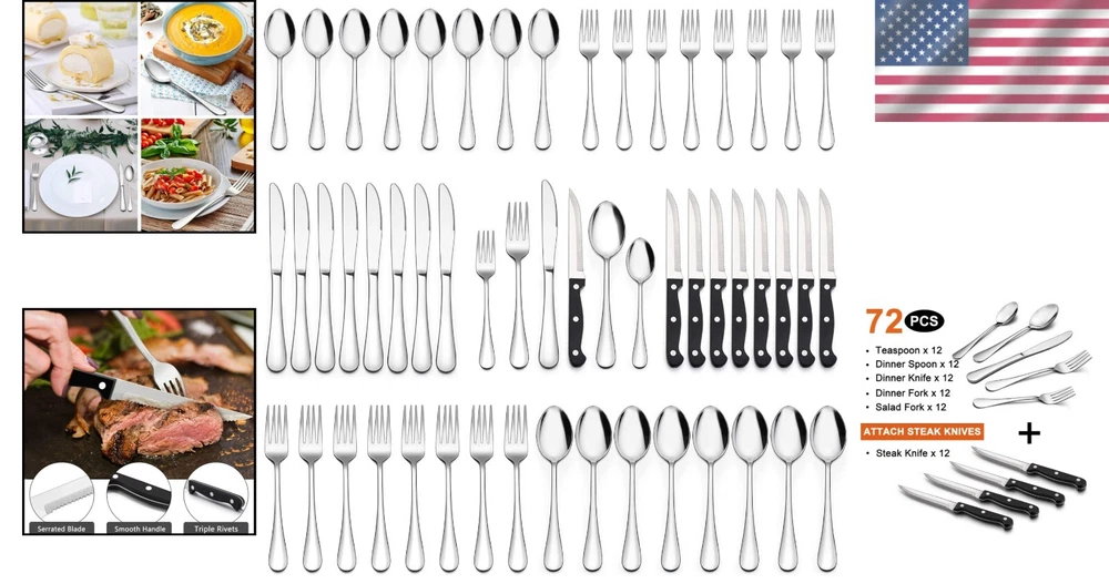 Complete 72-Piece Silverware Set with Ergonomic Steak Knives - Ideal for Gifting ‹ › ‹ › ‹ › ‹ › ‹ › ‹ › ‹ › ‹ › ‹ › Complete 72-Piece Silverware Set with Ergonomic Steak Knives Ideal for Gifting Set Includes: 12 Dinner Spoons 12 Teaspoons 12 Dinner Knives 12 Steak Knives 12 Dinner Forks 12 Salad Forks This exquisite 72-piece flatware set is designed for 12 people and is perfect for daily family use, catering, parties, gatherings, banquets, weddings, restaurants, hotels, and any occasion where elegance is essential. Features: Ergonomic steak knives with sharp serrated blades for smooth slicing, ensuring your dining experience is effortless. Ergonomically designed handles provide a firm grasp, triple-riveted for durability and safety. Made of high-quality stainless steel, rust-resistant and corrosion-resistant for long-lasting use. Solid, sturdy structure ensures utensils won’t bend during heavy use and are dishwasher safe for easy cleaning. Highly mirror polished surface maintains a shining appearance, adding a touch of elegance to any table setting. Exquisite craftsmanship ensures smooth surfaces that prioritize safety for your lips and skin. Perfect weight for comfort, suited for both adults and older children. Benefits: Transforms everyday meals into fine dining experiences. Elegant design elevates your table’s aesthetic. Perfect gift option for weddings, housewarmings, birthdays, Christmas, and Thanksgiving. Designed for versatility across various dining occasions. Why Choose Our Silverware Set? Experience the perfect blend of style and functionality with our Complete 72-Piece Silverware Set. With its elegant design, durable construction, and ergonomic features, this set not only serves as an essential dining tool but also a remarkable addition to your table decor. Enhance your dining experience and impress your guests with the elegance this beautiful set brings. Make a meaningful gift that will be cherished for years - order your Complete 72-Piece Silverware Set today! Shipping Free & Fast Shipping - We offer free shipping to most of the USA with a normal delivery time of 3-7 days. However, due to the current situation, additional delivery time (up to 3 weeks) may be required for some items. Alternative Carriers - We may use alternative carriers (e.g. USPS, FedEx, UPS, etc.) to ensure your package arrives safely and on time. Due to the use of multiple carriers, we are unable to provide a tracking number automatically. Handling Time - Orders are processed and shipped within 1-2 business days of receiving cleared payment. Shipping Restrictions - Shipping to Alaska, Hawaii, Puerto Rico, Guam, and other US territories may incur shipping charges or delivery restrictions. Please contact us before ordering, or your order can be refunded/cancelled. State Restrictions - There may be restrictions based on your state of purchase. For example, certain items may not be shipped to California due to state regulations. Contact for Tracking Updates - If you require tracking updates or have any concerns about the delivery of your order, please feel free to contact us, and we will be happy to assist you. Return 30-Day Hassle-Free Returns - We want you to be completely satisfied with your purchase. If you are not, you can return the item within 30 days of receiving it for a full refund or exchange. Easy Return Process - To start a return, simply contact us and we will provide you with a prepaid return shipping label and detailed instructions. Restocking Fee - There are no restocking fees for returns. However, the buyer is responsible for return shipping costs if the return is not due to a seller's error. Refund Processing Time - Refunds will be processed within 5 business days of receiving the returned item in its original condition. Payment We accept all major credit cards, PayPal, and Apple Pay for your convenience. Your payment information is secure and encrypted to ensure a safe and seamless transaction. Please complete your payment within 3 days of purchase to avoid any delays in shipping. Feedback Your feedback is extremely important to us. We strive to provide the best products and customer service possible. If you are satisfied with your purchase, please take a moment to leave us a positive review. If you have any concerns or issues with your order, please contact us before leaving negative feedback. We are committed to resolving any problems and ensuring your satisfaction. Contact Us If you have any questions or concerns, please feel free to reach out to our customer support team. You can contact us through the eBay messaging system. We are available Monday to Friday, 9:00 am to 5:00 pm EST, and we will do our best to respond to your inquiry within 24 hours. Buy it now and enjoy a pleasant shopping experience! UPC: Not Set Unit Quantity: 72 Material: Stainless Steel Set Includes: Serving Set,Steak Knife,Dinner Spoon,Teaspoon,Dinner Knife,Dinner Fork,Salad Fork Department: Kids,Teens,Adults,Unisex Character: Not Set Features: Dishwasher Safe,Rust Resistant,Corrosion Resistant Type: Set Brand: Unbranded Handle Material: Stainless Steel Country/Region of Manufacture: Not Set Color: Silver Finish: Polished Style: Modern Handle Pattern: Not Set MPN: Not Set Occasion: Wedding Character Family: Not Set Wood Tone: Not Set Item Length: Not Set Care Instructions: Dishwasher Safe Model: Not Set Item Weight: Not Set Manufacturer Warranty: Not Set Unit Type: Not Set