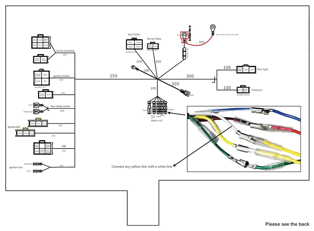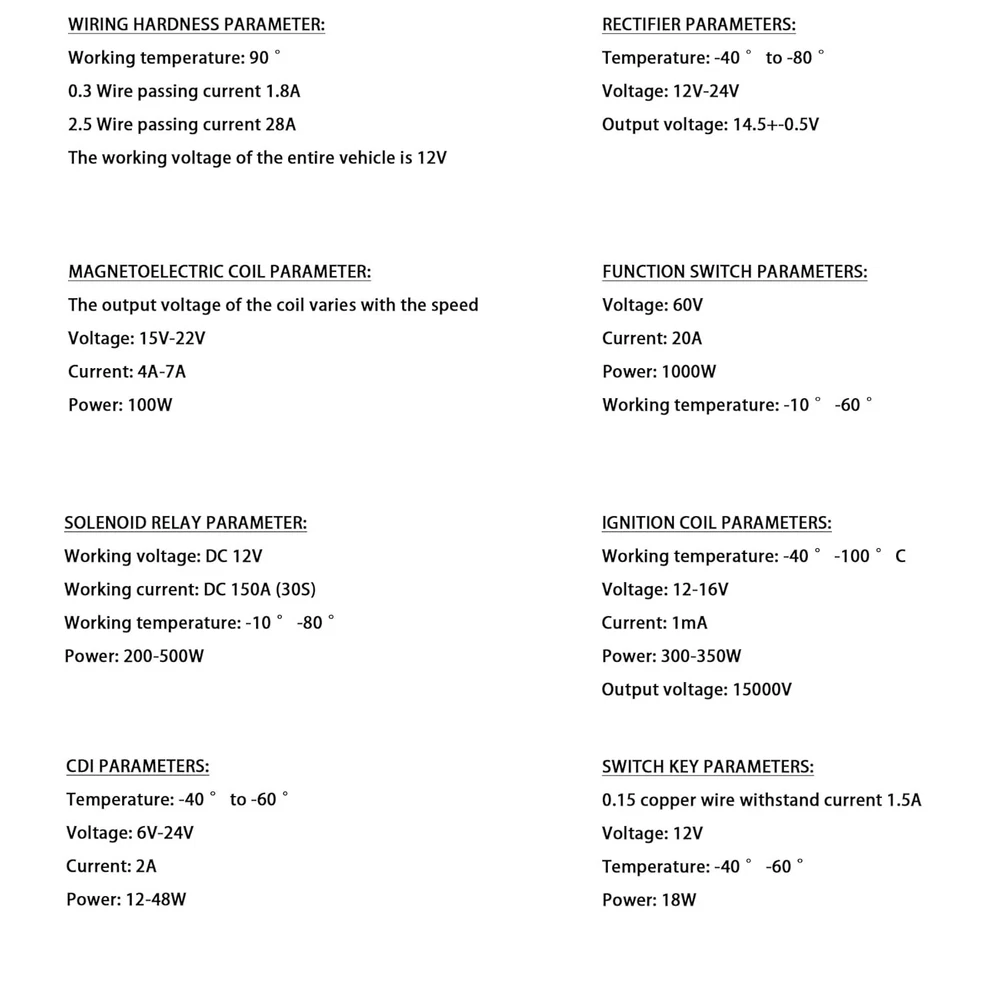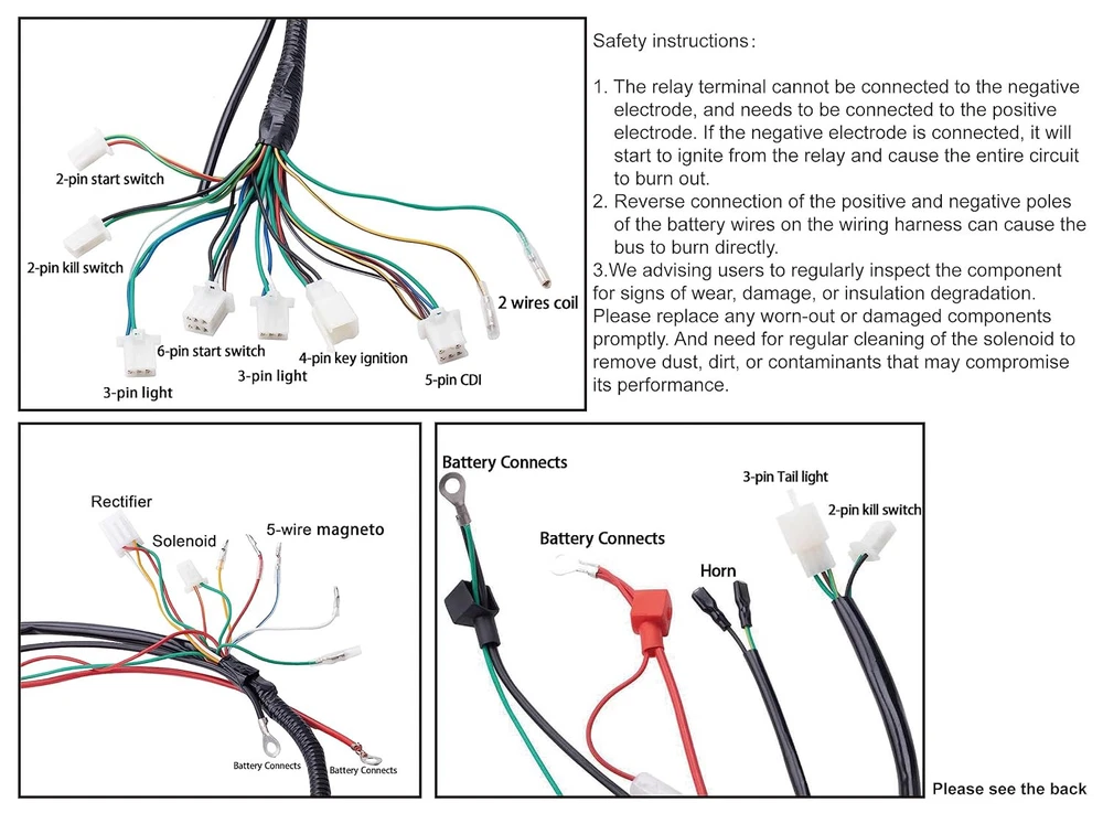 Complete Electrics Wiring Harness Coil Stator Solenoid Relay CDI Spark Plug for 4 Wheelers Stroke ATV 50cc 70cc 90cc 110cc 125cc Go Kart Pit Quad Dirt Buggy Bike Parts by OTOHANS AUTOMOTIVE Product Details Product Dimensions : 1 x 1 x 1 inches; 0.32 ounces Manufacturer : OTOHANS AUTOMOTIVE Country of Origin : China Brand: OTOHANS AUTOMOTIVE Material: Copper Item dimensions L x W x H: 1 x 1 x 1 inches Item Weight: 0.01 Kilograms Manufacturer: OTOHANS AUTOMOTIVE Universal fitting: Compatible with almost all years Chinese made electric start upright engine 49cc 50cc 70cc 80cc 90cc 100cc 110cc 125cc engines. For ATV, Coolster, Quad Bike, Dirt Bike, Pit Bike, Go Kart, Kawasaki KLX, 4 Wheelers, Scooter, Buggy, Motowork, Dune, Taotao. This is a complete electric start engine wiring harness loom,include 1x ATV Wire harness,1x CDI(5Pin AC),1x Solenoid Relay,1xRectifier (Voltage Regulator) ,1x Ignition Switch (2 keys, waterproof),1x Upgraded Multi-functional ATV Switch,1x Stator (Magneto Generator),1x Ignition Coil with lead, 1x Spark plug, 1x Fuse, 10x cable ties. Magnetoelectric coil wiring: red and black wires are ignition wires / blue and white wires are trigger wires / double yellow wires are charging wires connected to voltage stabilizers / green wires are grounding wires. DO NOT FIT: GY6 motorbikes and other 200cc - 250cc Zongshen Lifan ATV / QUAD with different stator or CDI. Note: Please check the pictures carefully before buying, especially the pictures of Magneto Stator. Please check the wiring diagram first before installation, and please consult or hire a mechanic to install this wiring harness if you are not sure about the wirings. False assembly may cause fire on the harness, though this occasion happens rarely.If you have any questions, you can contact us. We will give you a satisfactory answer. Universal fitting: Compatible with almost all years Chinese made electric start upright engine 49cc 50cc 70cc 80cc 90cc 100cc 110cc 125cc engines. For ATV, Coolster, Quad Bike, Dirt Bike, Pit Bike, Go Kart, Kawasaki KLX, 4 Wheelers, Scooter, Buggy, Motowork, Dune, Taotao.
