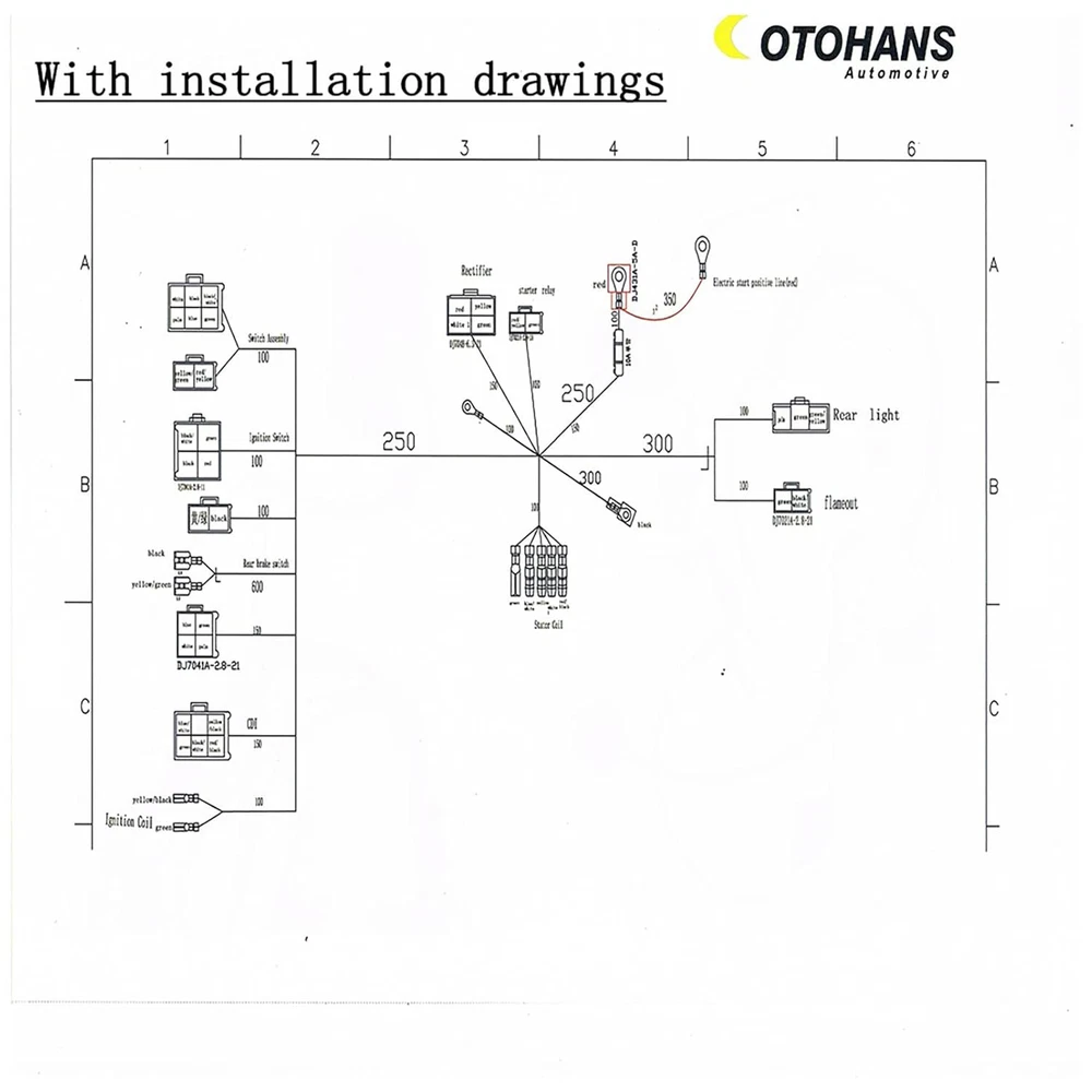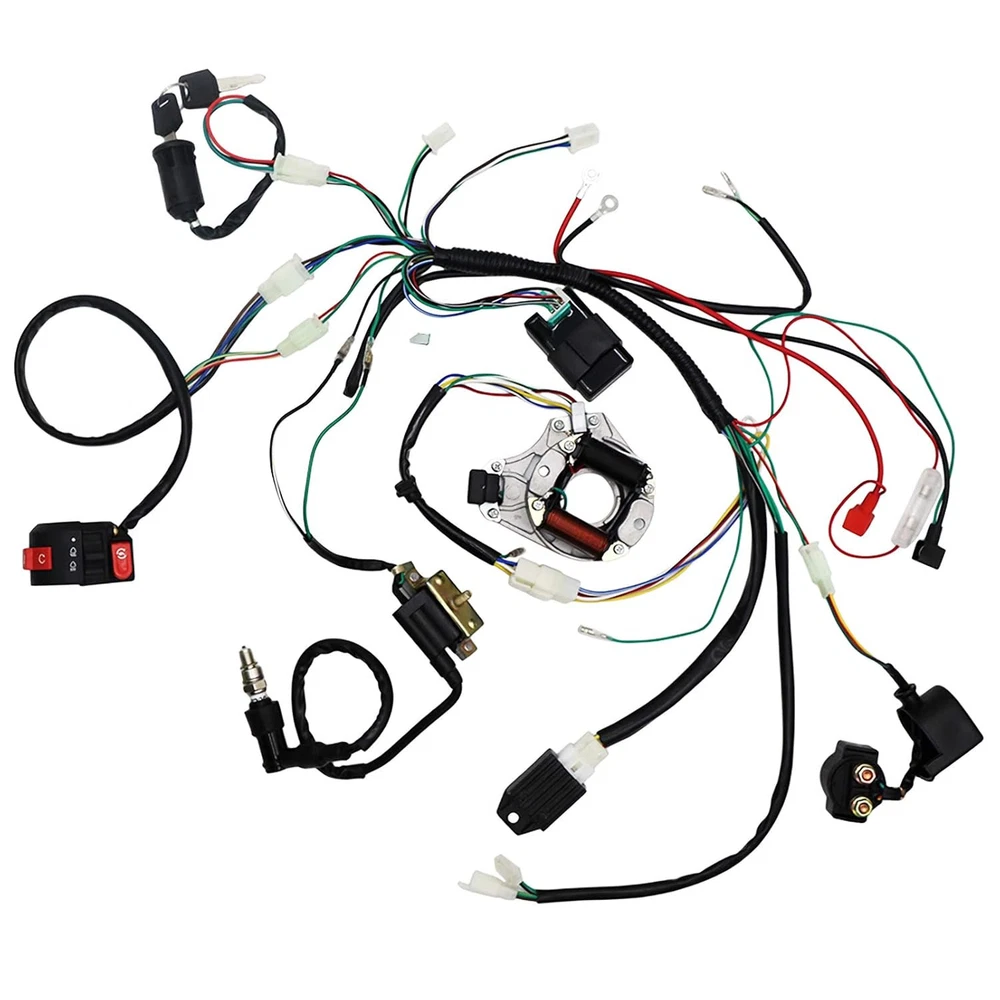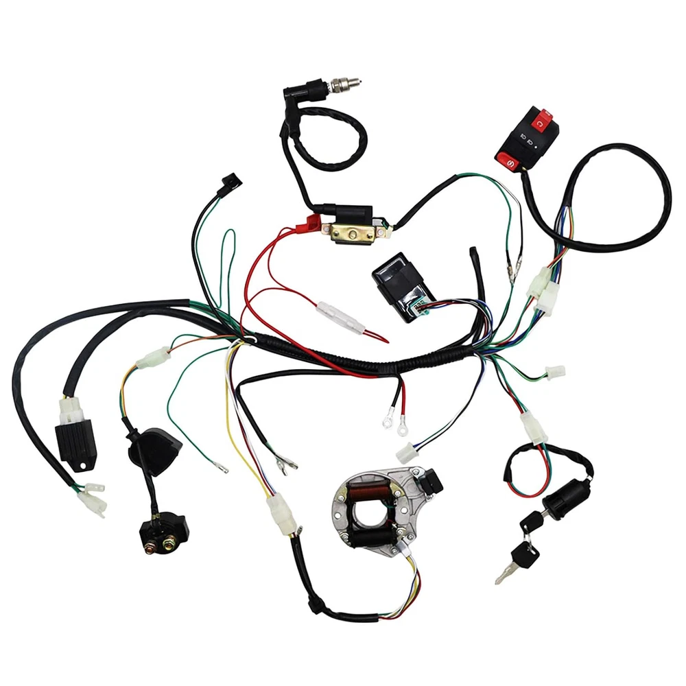 Complete Electrics Wiring Harness Relay Stator Coil CDI Solenoid Spark Plug for 4 Wheelers Stroke ATV (50cc 70cc 110cc 125cc) Pit Quad Dirt Bike Go Kart taotao by OTOHANS AUTOMOTIVE Product Details Product Dimensions : 1 x 1 x 0.5 inches; 8 ounces Manufacturer : OTOHANS AUTOMOTIVE Universal fitting: Compatible with almost all years Chinese made electric start upright engine 49cc 50cc 70cc 80cc 90cc 100cc 110cc 125cc engines. For ATV, Coolster, Quad Bike, Dirt Bike, Pit Bike, Go Kart, Kawasaki KLX, 4 Wheelers, Scooter, Buggy, Motowork, Dune, Taotao. Compatible with many brands,such as: Atomik, Pitpro, Hummer, Orion, Xmoto, Lei, DMX, SWD, TDR, DDR, Tommahawk, Monsoon, Grudge, Kazuma, Bull, Trooper, Hunter, Motox, Trojan, Blitz, Crusade, Link, Bigfoot, Kuda, Motoworks, Nitrous, Reign, Fury, Prox, Raider, Zongshen, Loncin, Ducar, Lifan, Thumpster, Thumbstar, Chongqing. This is a complete electric start engine wiring harness loom,include 1x ATV Wire harness,1x CDI(5Pin AC),1x Solenoid Relay,1xRectifier (Voltage Regulator) ,1x Ignition Switch (2 keys, waterproof),1x Upgraded Multi-functional ATV Switch,1x Stator (Magneto Generator),1x Ignition Coil with lead, 1x Spark plug, 1x Fuse, 10x cable ties. Each of our products is packaged in a color box. The box also contains wiring diagrams. We upgraded Wiring Harness, extended the rectifier link line, extended the stator link line, and extended the battery line.Comes with a brand new fuse. DO NOT FIT: GY6 motorbikes and other 200cc - 250cc Zongshen Lifan ATV / QUAD with different stator or CDI. Attention: Do not connect the negative terminal of the relay, it needs to be connected to the positive terminal. Complete Electric Start Engine Wiring Harness LoomFeatures:High quality and complete electrics all wiring harness wire loom assembly for QUAD / ATV parts.Universal fitting: fits almost all years Chinese made electric start upright engine.Compatible with 49cc 50cc 80cc 90cc 100cc 110cc 125cc ATV / QUAD / Dirt Bike / Kawasaki KLX / Coolster / Go Kart / 4 wheelers / Scooter / buggy / Motowork is a complete electric start engine wiring harness loom Compatible with most of 50cc 70cc 90cc 110cc 125cc Pit Quad Dirt Bike ATV Dune Buggy Go Karts 4 wheelers. Such as these brands: Atomik, Pitpro,Tdr, Hummer, Orion, Xmoto, Lei, Dmx, Swd, Tommahawk, Monsoon, Grudge, Kazuma, Bull, Trooper, Hunter, Motox, Trojan, Blitz, Crusade, Link, Bigfoot, Kuda, Motoworks, Nitrous, Reign, ddr, Fury, Prox, Raider, Zongshen, Chongqing, Loncin, Ducar, Lifan,Thumpster.Note:DO NOT FIT: GY6 motorbikes and other 200cc - 250cc Zongshen Lifan ATV / QUAD with different stator or CDI.Please check the wiring diagram first before installation, and please consult or hire a mechanic to install this wiring harness if you are not sure about the wirings.