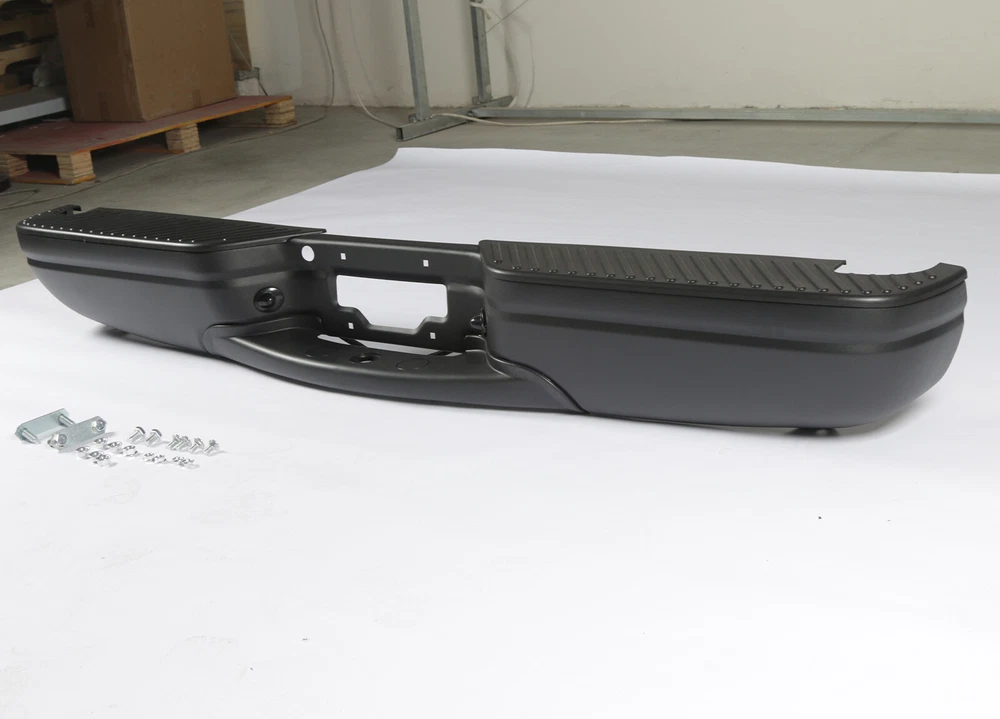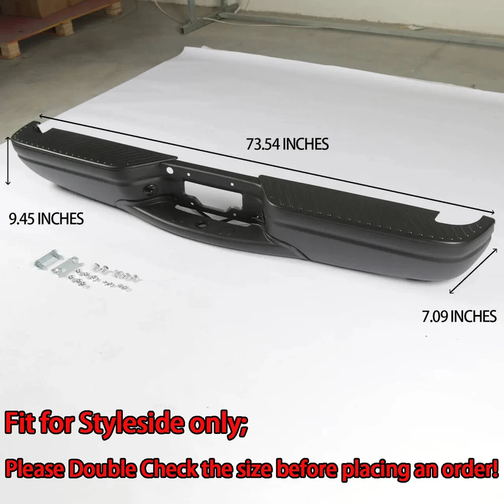 Fitment: Bumper Assembly For 1997 - 2003 Ford F-150 For Styleside Regular & Super Cab Models WITHOUT Park Assist Sensor Holes Package Content: 1x Pickup Rear Bumper with License Plate light 1X Bolts and Screws
