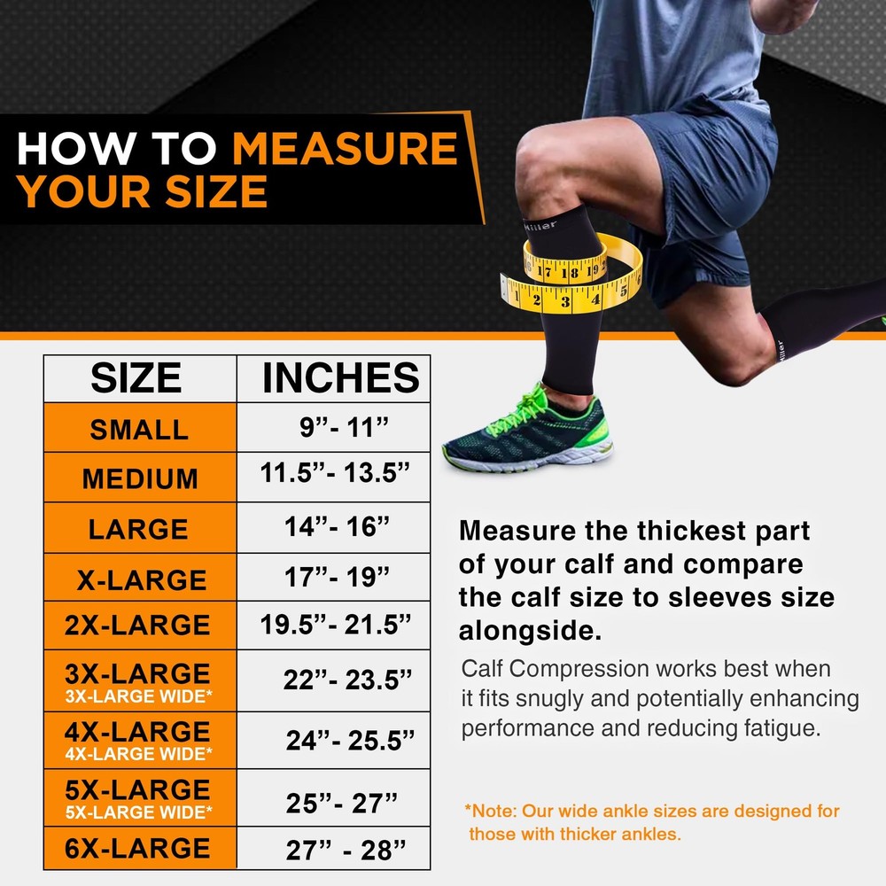 Experience the superior strength and support of 's Calf Compression Sleeves, meticulously engineered to deliver a 20-30mmHg gradient, surpassing standard calf sleeves. Engineered with a tighter grip, these sleeves facilitate swift recovery from tendon and calf injuries, providing targeted compression to alleviate discomfort and promote healing. Whether you're at home, work, or engaged in physical activities, our compression calf sleeves offer unparalleled comfort and durability, ensuring long-lasting relief and support throughout the day. Crafted from premium quality nylon and spandex fabric, these shin splint compression sleeves deliver graduated compression, effectively aiding in the relief of leg cramps, muscle soreness, and fatigue induced by extended periods of standing or sitting. Tailored for both men and women, these footless compression sleeves provide reliable protection and comfort, effectively safeguarding against shin splints, torn calf muscles, and other common ailments. Embrace confidence and ease during your daily routines or sports activities, experiencing a perfect blend of comfort and style with . At , we are committed to providing products that exceed expectations in quality and performance. Explore our extensive range of compression socks, encompassing knee-high socks, thigh-high stockings, toeless compression sleeves, elbow braces, ankle sleeves, and calf sleeves. Available in an array of colors, sizes, plus sizes, compression levels, and patterns, ensuring there's a perfect fit for every need and preference. Experience the difference with compression sleeves and step into comfort and relief today. MEDICAL GRADE COMPRESSION CALF SLEEVES FOR PAIN RELIEF: Experience medical-grade relief from leg cramps, varicose veins, and boosted circulation with our compression calf sleeves for men and women. Engineered with premium nylon and spandex for durability, breathability, and comfort. VERSATILE CALF COMPRESSION SLEEVE FOR MEN AND WOMEN: Our compression calf sleeves are perfect for running, hiking, or everyday use, providing medical-grade support during pregnancy or long hours of standing. Speed up recovery and enjoy value for money with our compression sleeves. Available in a variety of colors and sizes. FAST RECOVERY AND SUPPORT: Speed up recovery with our 20-30mmHg medical-grade compression calf sleeve, providing support to ligaments, tendons, and calf muscles. Ideal for athletes and workers alike, these sleeves offer unmatched comfort and relief. DOCTOR-RECOMMENDED MEDICAL GRADE COMPRESSION: Trust in our doctor-recommended compression calf sleeves for graduated compression and exceptional comfort. Get relief from shin splints and leg fatigue, perfect for runners and everyday use. ENHANCED PERFORMANCE AND COMFORT: Experience enhanced performance and comfort with our compression calf sleeves. Ideal for athletes and those seeking relief from leg fatigue, our sleeves provide medical-grade support without compromising on comfort.
