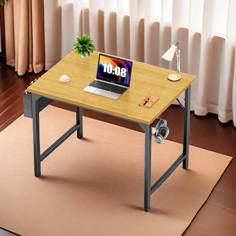 Computer Desk with Storage Bag and Headphone Hook, 31 In Small Home Office Writing Study Desk Modern Simple Style PC Table for Youth Student Adult 30 Inches oak RELIABLE CONSTRUCTION: This workstation boasts a robust 1.18-inch tube frame with a diagonal brace, providing exceptional strength and stability that surpasses standard office desks. The solid metal build ensures durability, while floor-protecting leg pads reduce noise and prevent scratches, creating a steadfast and enduring workspace. DURABLE & FUNCTIONAL DESKTOP: The desk features a premium particle board surface that is scratch-resistant, anti-collision, and waterproof, safeguarding it against daily wear and tear. Its spacious design accommodates a range of items including computers, notebooks, files, pens, and office supplies, offering a versatile and practical work area. CONVENIENT STORAGE OPTIONS: Enhancing organization, a side-mounted storage bag offers space for books or office essentials, streamlining desktop clutter. Additionally, a detachable hook on the opposite side provides a handy spot to hang headphones or bags, catering to the needs of students, professionals, and individuals engaged in various work activities. VERSATILE & STYLISH DESIGN: Ideal for home offices, studies, and writing tasks, this modern desk not only offers functionality but also enhances the aesthetic appeal of your living space. With a weight capacity of 176 lbs, it provides ample support for a variety of work materials and equipment. HASSLE-FREE ASSEMBLY & SUPPORT: Assembly is made effortless with the included installation manual or instructional video, requiring no additional tools and typically taking just 15 minutes to complete. Should any issues arise, reliable after-sales support is readily available to address any concerns, ensuring a seamless and -free experience for customers.