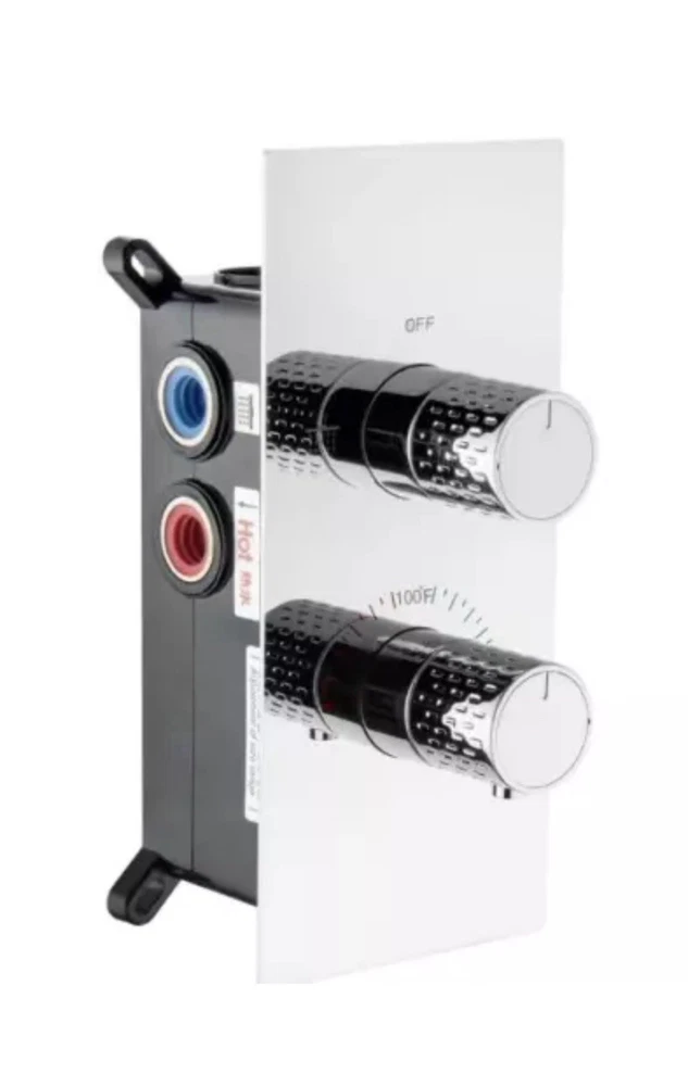 Enhance your bathroom's shower experience with this high-quality Thermostatic Shower Diverter Valve. Crafted with solid brass material, this mixer shower boasts a sleek and modern design that complements any bathroom decor. The diverter valve is designed to control the temperature seamlessly, ensuring a comfortable shower experience every time. This 2-outlet shower valve is suitable for use in the shower and comes with two faucet handles for easy control. The Thermostatic temperature control ensures that the water temperature remains consistent throughout your shower, making it an ideal choice for anyone who loves a comfortable shower experience. Upgrade your bathroom with this premium quality shower valve today!