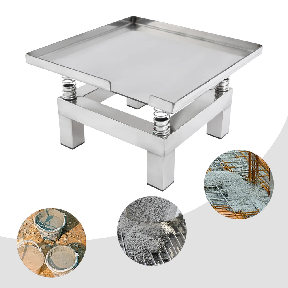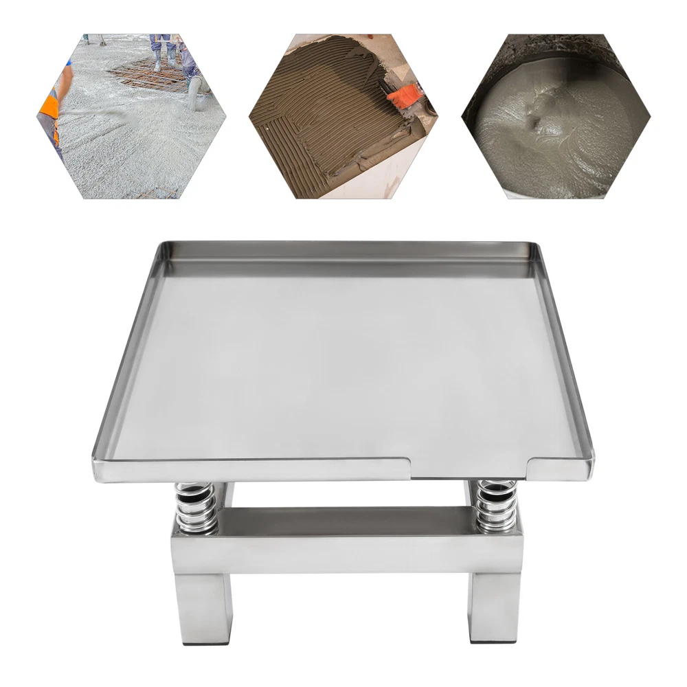 Concrete Vibrating Table, Vibration Platform, Vibration Table Description Description With its compact dimensions, high performance, and reliability, this concrete vibrating table is highly sought after in the field of construction materials testing and is particularly suitable for making concrete test blocks where accuracy is required, such as strength test specimens. Its precise vibration frequency and even distribution of vibration forces ensure that air bubbles are effectively removed from the concrete mixture, thus improving the density and strength of the finished product. Key Features Durable and Sturdy: The main structure is made of high-quality stainless steel, which is not easy to rust, corrosion, and deformation, to ensure stability and durability under long-term use. Large Capacity: The sturdy structure and four load-bearing springs allow it to hold more concrete at one time (about 22.05 lbs), which effectively reduces your working time and the number of operations. High-efficiency Vibration: Driven by a high-performance all-copper-wire motor, it can provide stable and powerful vibration (3000-3600rpm), accelerating the concrete compacting process, reducing air bubbles, and improving the quality of products. Easy to Clean: The platform surface is smooth and seamless, which is easy to clean quickly to avoid concrete residue and keep the working environment neat and hygienic. Easy to Operate: The product has a simple structure and does not require complex operating procedures, so even newcomers can get started quickly. Ease of Movement: Compact size (13.78*13.78*8.66in) makes it easy to move around the lab or construction site, providing high flexibility of use. Ready to Use: The integrated design makes it easy for you to plug it in and use it as soon as you get it, so you don't have to do any additional installation. Customer Service: We aim to provide quality products and services. If you have any problems, please feel free to contact us. We will reply and solve the problem for you as soon as possible. Details Raised Baffle: 0.98in baffle prevents spills and leaks during concrete vibration. High-quality Springs: They help to remove air bubbles inside the concrete faster and improve the compactness and uniformity of the concrete. Smooth Edges: The smooth and burr-free edges enhance the beauty of the product and better care for your skin when installing and cleaning it. Application It can be used for mold vibration molding, increasing the firmness of concrete, shaking the settling liquid, mold filling, durability test experiments and so on. Specification Material: Stainless Steel Motor Type: All-copper Wire Motor Color: Silver Shape: Rectangular Mount Type: Tabletop Mount, Countertop Assembly Required: No Number of Springs: 4 Power: 50W Plug Type: US Standard Power Source: Corded Input: 110V Maximum Load: About 10kg/22.05lbs Vibration Frequency: 3000-3600 rpm Amplitude: 1-2mm/0.04-0.08in Baffle Height: 2.5cm/0.98in Product Size: 35*35*22cm/13.78*13.78*8.66 in Package Size: 38*38*25cm/14.96*14.96*9.84in Net Weight: 6.5kg/14.33 lbs Gross Weight: 8kg/17.64 lbs Package Included 1* Concrete Vibrating Table Notes Please check the style and size before purchasing. Please do not put it on tiles or slippery floors. To ensure better use, you can prepare silicone pads(not included) under it or put it on a tabletop with better friction. It's normal to work hot, please do not put it to work in a very hot place. Please allow the slight color difference caused by the shooting light and 1-3cm error due to manual measurement and make sure you do not mind before ordering. Description Payment Delivery details Terms of sales About us Contact us Payment We accept ebay payment 。 Fees such as import duties, taxes are not included in the item price or shipping costs. These charges are the buyer's responsibility. Delivery details Shipping: 2-9 working days to: USA Terms of sales We maintain high standards of excellence and strive for hundred percent customer satisfaction. Feedback is very important to us. We hope that you contact us immediately before you give neutral or negative feedback, so that we can address your concerns. It is impossible to address issues if we do not know about them! About us Your satis faction is our ultimate goal. We work hard to earn your trust and future business. Our certified technicians have tested each item before shipping. The unit comes with 1 year limited warranty on all manufacturing defects. a) If you receive a defective item, you may return it or ask for a discount. Please contact us within 14 days after you receive the package. b) What you returned must be intact and in its original packaging as re? u. Customer is responsible for shipping costs of the returned item. c) We will cover the cost of shipping back t with the shipping rate indicated in the registration page. We will send you a new unit or refund the full payment you paid. Thank you. Contact us Business Hour Business Hour: Monday To Friday: 8:30 AM to 5:00 PM (Beijing China time) Due to time zones, our reply to your questions may not be immediately. But within above working time, we will reply your email within 24 hours. If it's non-workdays, please kindly be patient and wait till Monday. Please contact us with ebay message. Please feel free to contact us if you have any questions. Monday To Friday: 8:30 AM to 5:00 PM (Beijing China time) Due to time zones, our reply to your questions may not be immediately. But within above working time, we will reply your email within 24 hours. If it's non-workdays, please kindly be patient and wait till Monday. Please contact us with ebay message. Please feel free to contact us if you have any questions. Feature 2 Special Fashion Design shipping notice Can not ship to Puerto Rico,Alaska/Hawaii 1.Feature* Unique Appearance,Great Durability 2.Feature* Compact Design,Convenient Use 2.Highlight! Fast shipping~ 1.highlight High-quality product! Highlight^* High quality wi