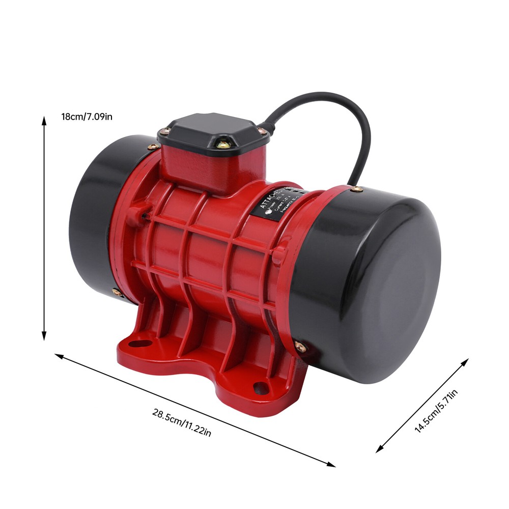 Concrete Vibrator Vibration Motor 250W Vibrating Electric Vibrators Shaker Table Description This concrete vibrator motor is made of aluminum for superior quality and long life. With fast speed and high vibration frequency, it can greatly improve your working efficiency. The bright color is convenient for you to find its position accurately so that you can make adjustments according to the actual situation. This product is surely a good assistant for your work. Key Features Sturdy and Durable: The product is made of aluminum with a painted surface, which has high hardness, high abrasion resistance, anti-corrosion, and anti-rust properties. Good Sealing: Adopting a fully enclosed design and sealed junction box, this product has a great waterproof effect(IP65) and improves safety, so you can use it in a wet environment with peace of mind. High Efficiency: With a high power of 250W, a speed of 3500 rpm, high precision bearings, and finish machined rotors, this product is both energy-saving and efficient. Good Stability: Thickened feet can stably support the machine body so that the product is not easy to tilt in the work, more secure. Multiple Mount Option: With the pre-drilled holes on the fixing feet, you can mount this product on a machine, a vibrating platform, or a base plate (not included) for vibrating concrete. Unique Appearance: It has a simple shape and a bright red+black color, which makes it easy for you to find its position clearly when you are working. Easy to Clean: With a simple structure and a smooth surface, you can easily wipe off stains with a rag. Customer Service: We aim to provide quality products and services. If you have problems, please feel free to contact us. We will reply and solve the problem for you as soon as possible. Details Heat Dissipation Structure: The three-dimensional heat dissipation structure can dissipate heat in time to ensure that the motor works for a long time and avoids burning. All-copper Motor: It has stable performance, is not easy to burn, and has a longer service life. Smooth Edge: The rounded and smooth edges not only add to the aesthetics of the product but also improve the safety of use. Application It is widely used in mining, metallurgy, coal, electric power, construction, chemical, medical, foundry, food, powder spraying equipment, powder sieving, food machinery, etc. Specification Color: Red+Black Material: Aluminum Process: Spray Paint Assembly Required: No Recommended Uses For Product: Concrete Indoor/Outdoor Usage: Outdoor Insulation Class: F Waterproof Class: IP65 Motor Type: Pure Copper, Single Phase Power Source: Corded Electric Plug: US Standard Power: 250W Voltage: 110V Current: 0.67A Vibration Force: 150kg/f / 330.69lbs/f Frequency: 60Hz Speed: 3500 rpm Power Cable Length: 1m/ 3.28ft Gross Weight: 5kg/11 lbs Package Size: 26.50*16.50*18.00cm/10.43*6.5*7 in Package Included 1* Concrete Vibrator Motor 1* English Manual Notes Please note that this product does not include a base plate. Please read the operating manual completely before use. And pay particular attention to the safety instructions included. Please remember to regularly check the tightness of the mounting screws(not included) and the dust on the vibrating motor surface. Please be sure to fix the motor well, and make sure the voltage is 110V. After adjustment, the screws should be fixed tightly to prevent the screws from falling off during vibration. Please allow the slight color difference caused by the shooting light and the 1-3 cm error due to manual measurement, and make sure you do not mind before ordering. Payment Delivery details Terms of sales About us Contact us Payment We accept ebay payment 。 Fees such as import duties, taxes are not included in the item price or shipping costs. These charges are the buyer's responsibility. Delivery details Shipping: 2-9 working days to: USA Terms of sales We maintain high standards of excellence and strive for hundred percent customer satisfaction. Feedback is very important to us. We hope that you contact us immediately before you give neutral or negative feedback, so that we can address your concerns. It is impossible to address issues if we do not know about them! About us Your satis faction is our ultimate goal. We work hard to earn your trust and future business. Our certified technicians have tested each item before shipping. The unit comes with 1 year limited warranty on all manufacturing defects. a) If you receive a defective item, you may return it or ask for a discount. Please contact us within 14 days after you receive the package. b) What you returned must be intact and in its original packaging as re? u. Customer is responsible for shipping costs of the returned item. c) We will cover the cost of shipping back t with the shipping rate indicated in the registration page. We will send you a new unit or refund the full payment you paid. Thank you. Contact us Business Hour Business Hour: Monday To Friday: 8:30 AM to 5:00 PM (Beijing China time) Due to time zones, our reply to your questions may not be immediately. But within above working time, we will reply your email within 24 hours. If it's non-workdays, please kindly be patient and wait till Monday. Please contact us with ebay message. Please feel free to contact us if you have any questions. Monday To Friday: 8:30 AM to 5:00 PM (Beijing China time) Due to time zones, our reply to your questions may not be immediately. But within above working time, we will reply your email within 24 hours. If it's non-workdays, please kindly be patient and wait till Monday. Please contact us with ebay message. Please feel free to contact us if you have any questions. On Feb 21, 2026 at 19:52:32 PST, seller added the following information: