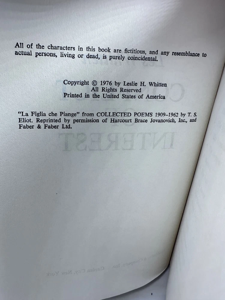 Conflict of Interest by Whitten, Les Cover: Hardcover w/Jacket Publisher: Doubleday Date: 1976 Book Club Edition Book: VG DJ: G Book Club Edition