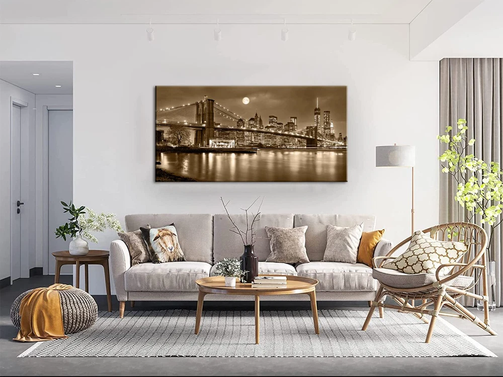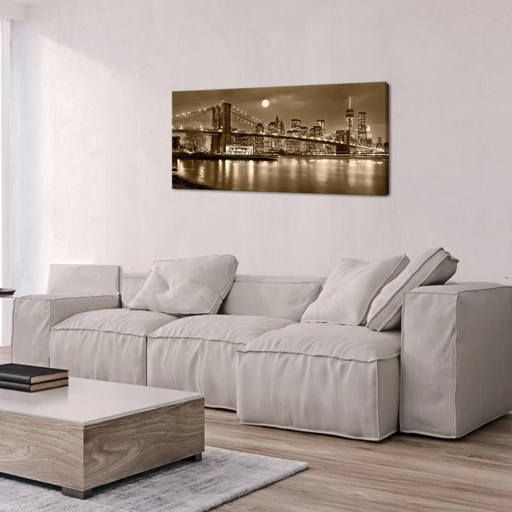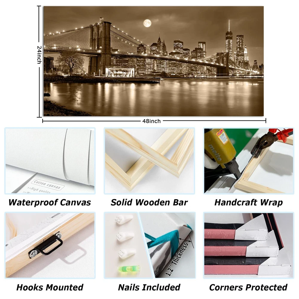 Canvas Print Framed Size: 24"x48"x1pc High Quality: HD prints on premium canvas, vivid and beautiful, waterproof, fading resistant indoor. Easy to Hang: Gallery wrapped and stretched on wooden frame, back of the canvas frame mounted strong hooks. nails and accessories are in the package.Ready to hang. City canvas artwork will light up your room, like living room, bedroom, kitchen, office, Hotel, dining room, office, bathroom, bar etc. This painting is a perfect gift choice for birthday, Christmas,housewarming,thanksgiving and New year, etc..