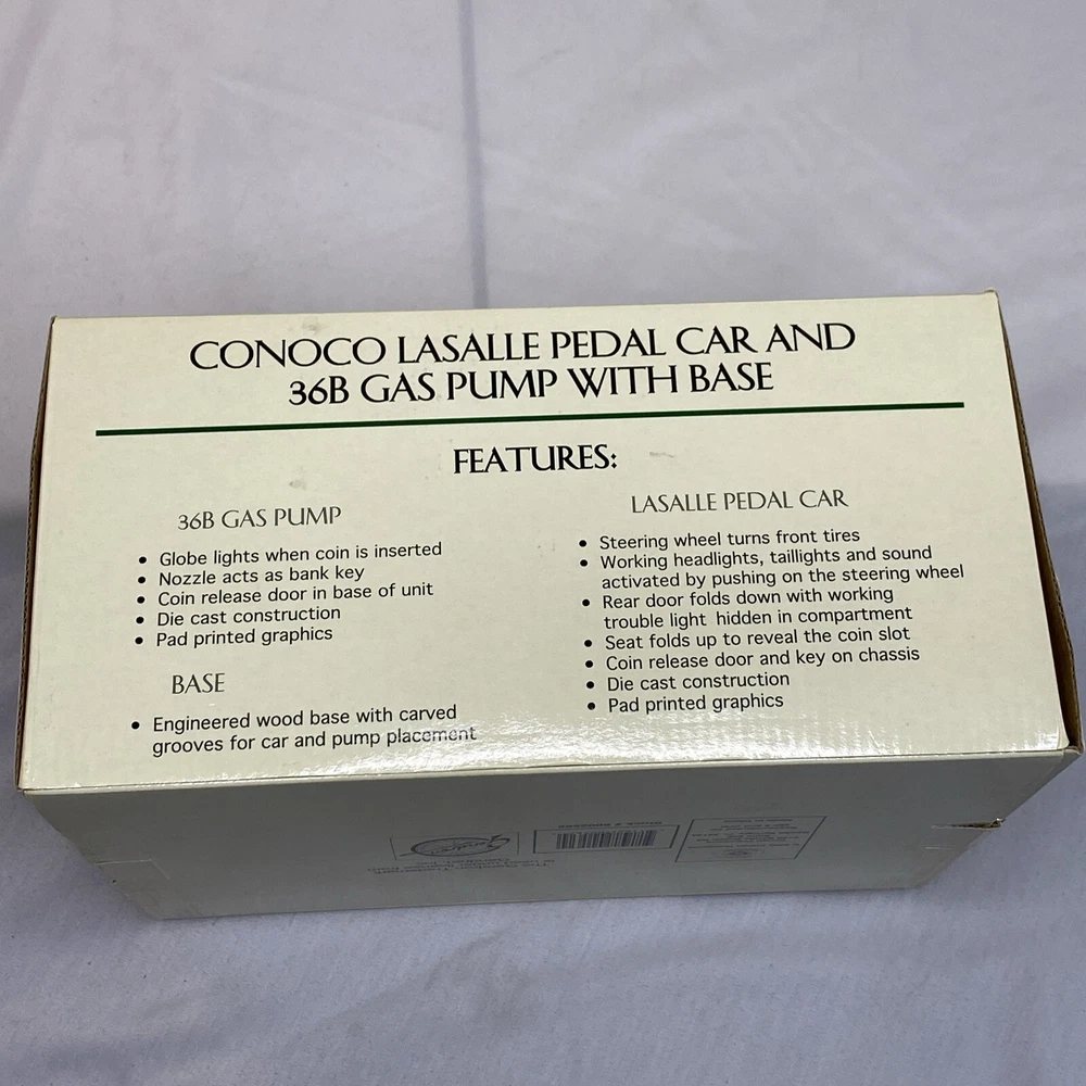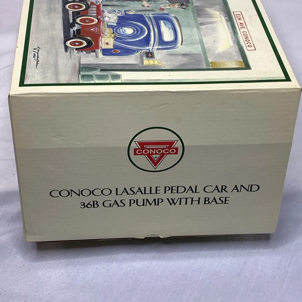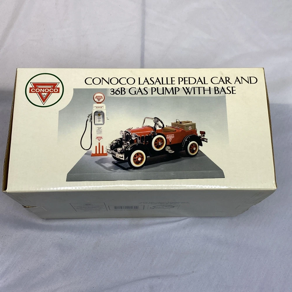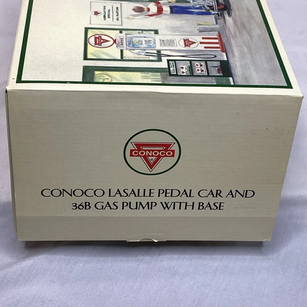 Conoco Lasalle Pedal Car And 36B Gas Pump With Base New/Open Box