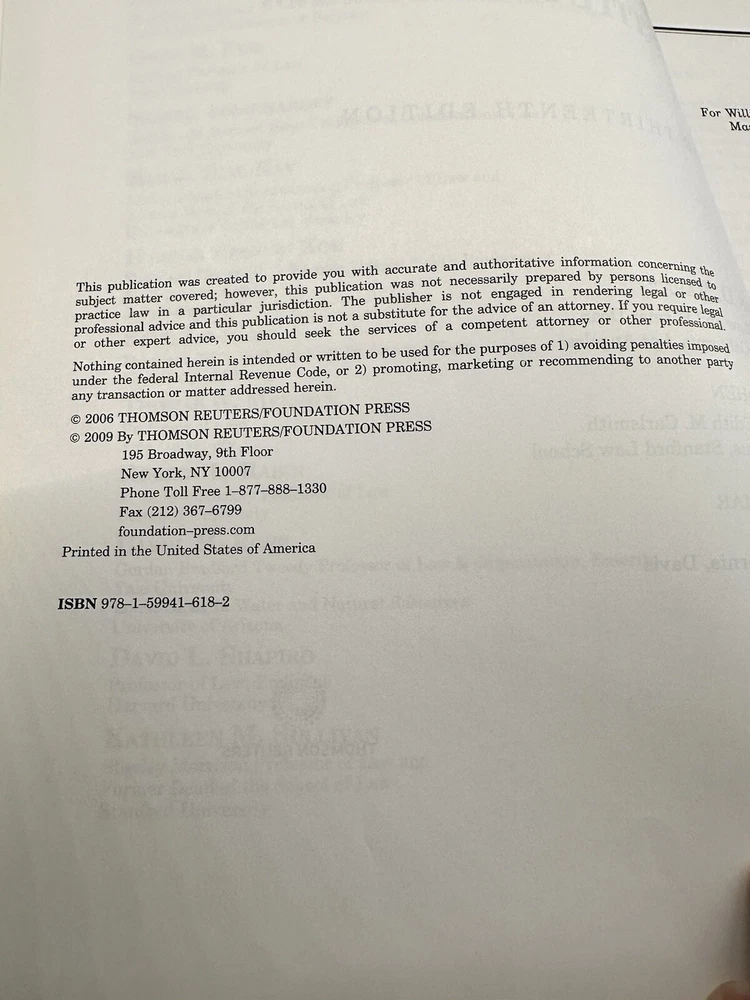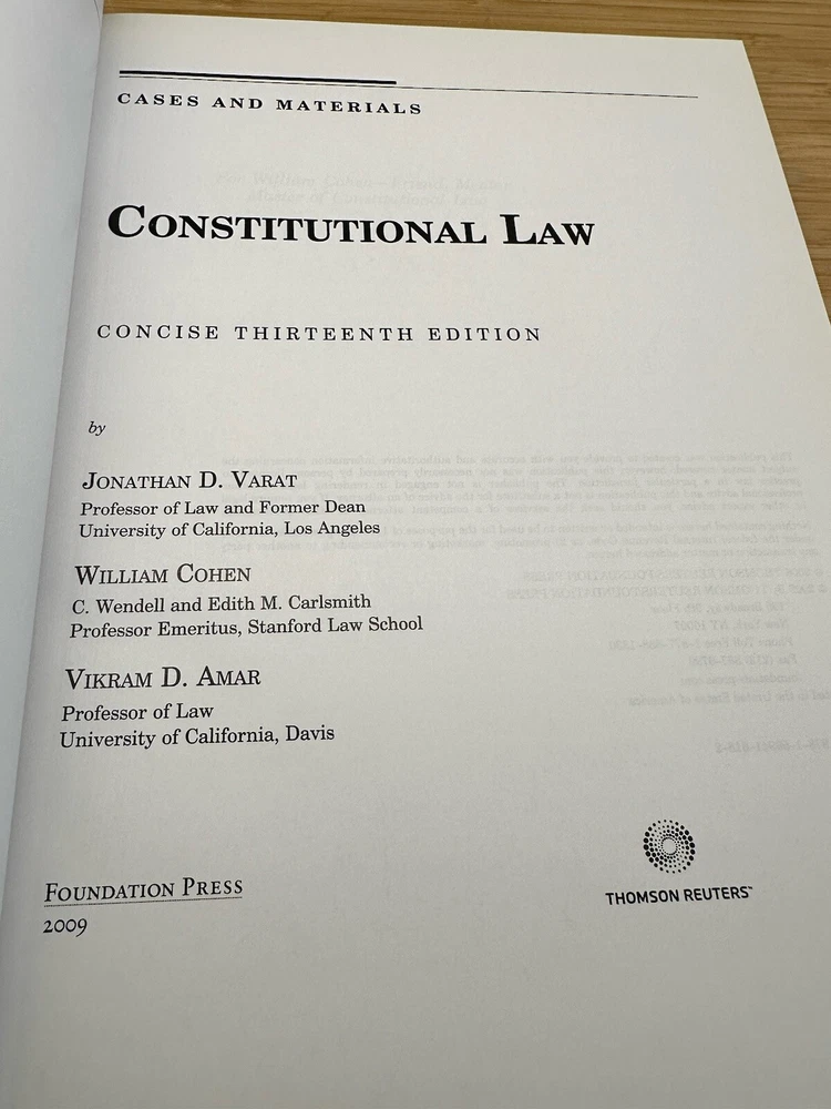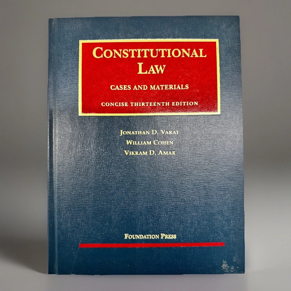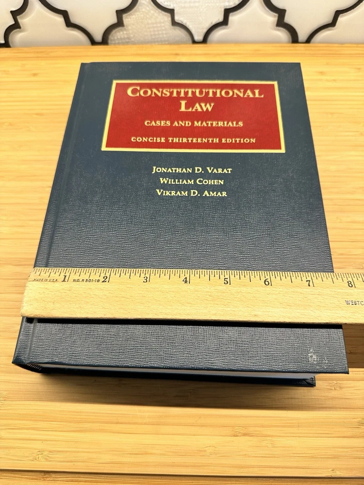 This textbook is an excellent resource for those studying constitutional law. It includes cases and materials necessary to understand the subject area. The book is published by Foundation Press and is part of the University Casebook Ser. The thirteenth edition is authored by Jonathan D. Varat, Vikram D. Amar, and William Cohen. This is the CONCISE 13th Edition. (Longer version of 2022 pages, I also have in my eBay store) The hardcover book has been measured and showed in pictures. It has 1213 pages. The book has never been cracked open and is a thirteenth edition. It is written in English and is intended for adult and further education, as well as law school. The publication was created to provide you with accurate and authoritative information concerning the subject matter covered. New, never been cracked open. PLEASE NOTE: I have approximately 100 law books that are either listed in my EBay shop or will be listed over the next few weeks.