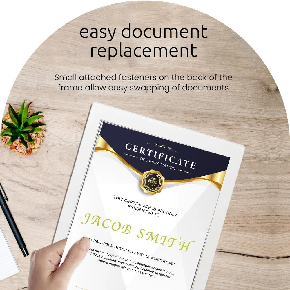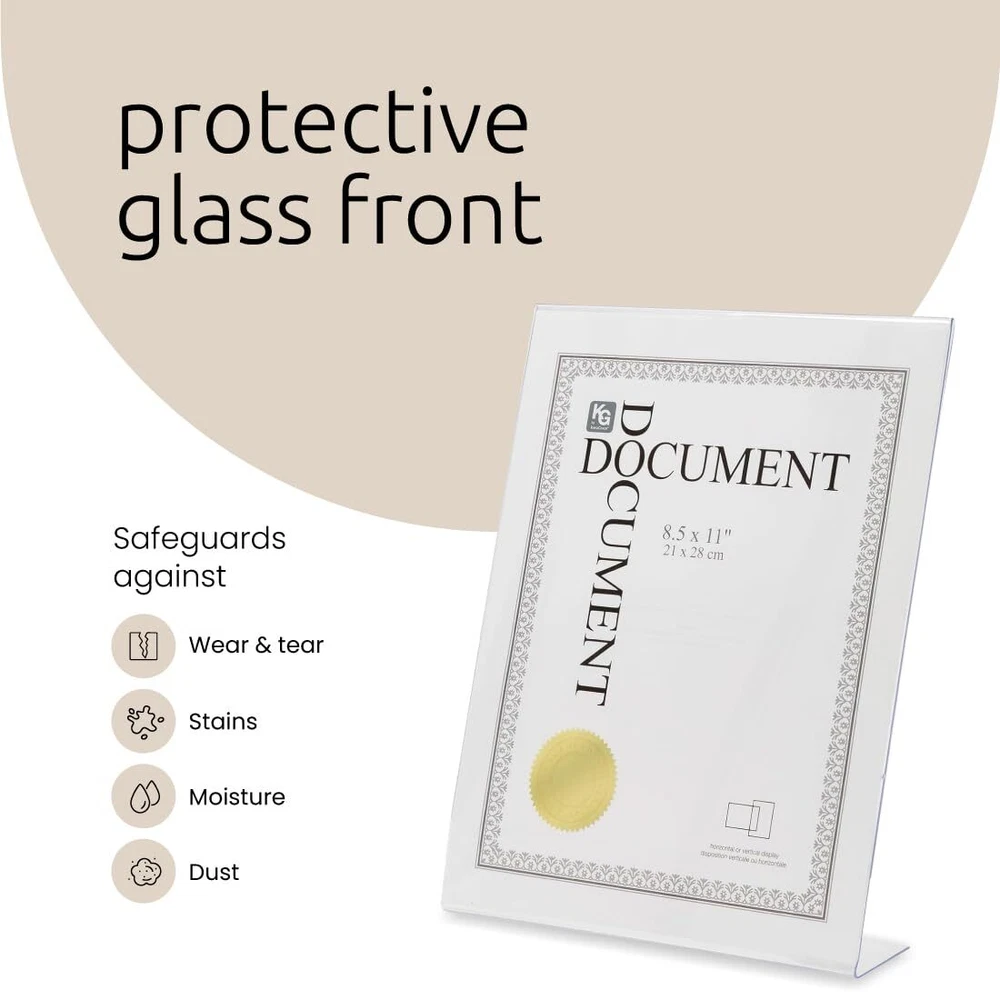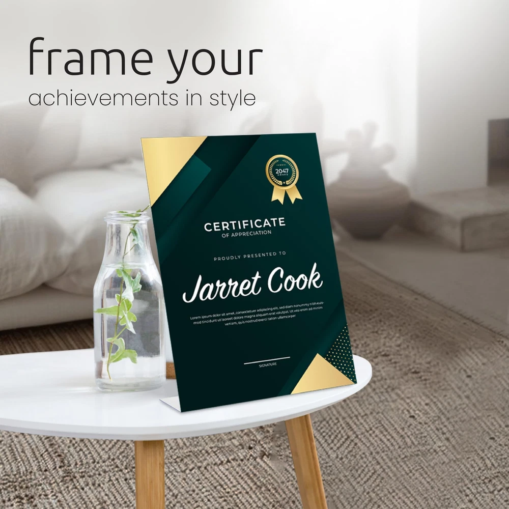 Stylishly and simply display any image with the L clear frame. The lightweight frame is easy to use, simply insert any image and display away. Perfect for documents, photos, or small papers, the L frame is an affordable addition in any office, home, or event space. Measurement: Accommodates 8.5" x 11" documents, certificates, awards, and photos. Material: Made from clear acrylic, creating a sleek and modern display. Design: Simple and elegant L stand design for versatile placement in various settings. Load from Both Sides: Easily load documents from either side of the frame. Display Options: Can be used in both vertical and landscape orientations for diverse presentations.