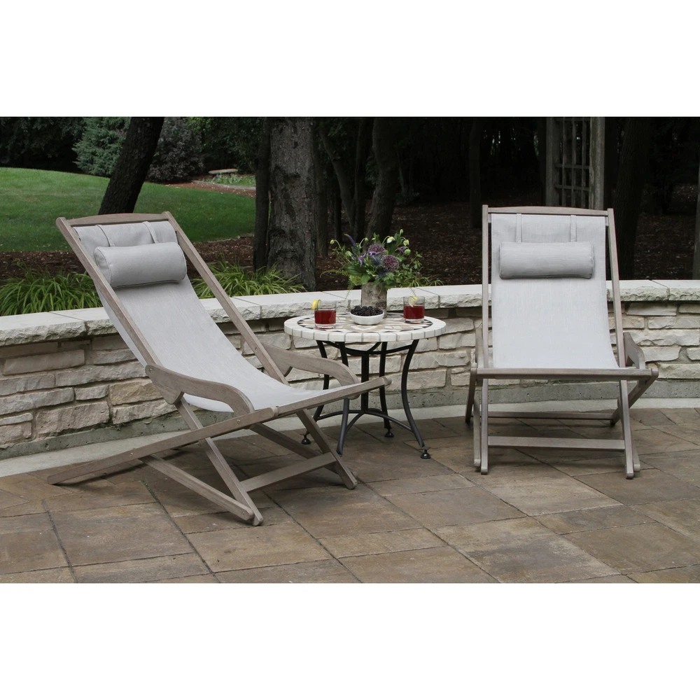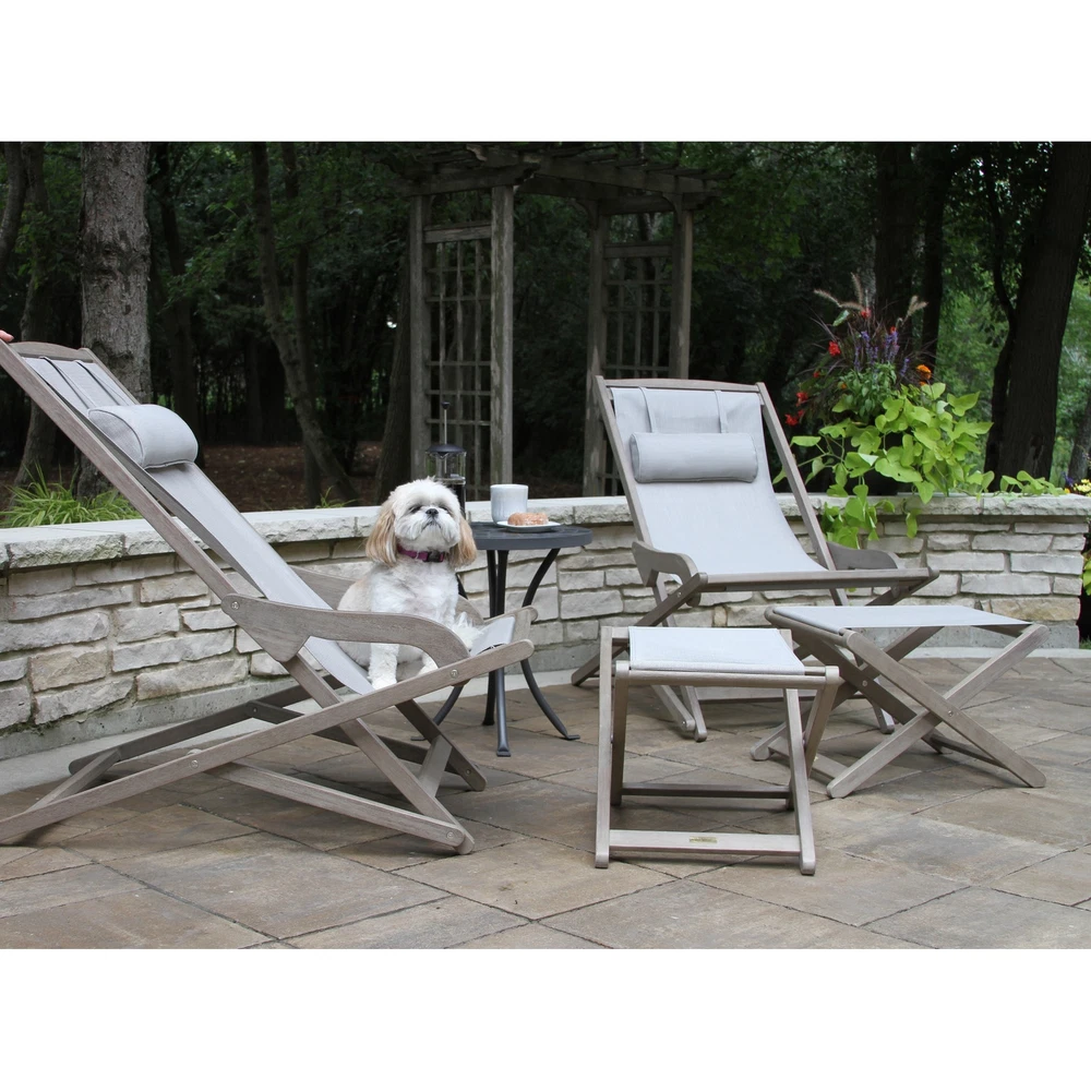 Relax in style with the Contessa Grey Wash Eucalyptus Sling Lounger. This poolside lounger features a sleek low design that makes getting in and out a breeze. It comes fully assembled with stainless steel hardware and a matching ottoman (SKU- 38021083) is available separately. The sustainable plantation-grown eucalyptus and woven resin sling fabric provide durability and comfort. When not in use, the lounger folds up for easy storage.Features: Sleek and stylish low design Fully assembled Foldable for easy storage Sustainable plantation-grown eucalyptus and woven resin sling fabric for durability and comfort Stainless steel hardwareAdditional Details: Matching ottoman sold separately (SKU- 38021083) Chair Dimensions: 25" W x 43" D x 37" H Dimensions when folded: 25" W x 5" D x 49.5" Free Shipping Over $49.99* Details Contessa Grey Wash Eucalyptus Sling Lounger Product Description: Relax in style with the Contessa Grey Wash Eucalyptus Sling Lounger. This poolside lounger features a sleek low design that makes getting in and out a breeze. It comes fully assembled with stainless steel hardware and a matching ottoman (SKU- 38021083) is available separately. The sustainable plantation-grown eucalyptus and woven resin sling fabric provide durability and comfort. When not in use, the lounger folds up for easy storage. Features: Sleek and stylish low design Fully assembled Foldable for easy storage Sustainable plantation-grown eucalyptus and woven resin sling fabric for durability and comfort Stainless steel hardware Additional Details: Matching ottoman sold separately (SKU- 38021083) Chair Dimensions25" W x 43" D x 37" H Dimensions when folded25" W x 5" D x 49.5" H Weight Capacity250 lbs. ColorGrey wash stain and champagne woven resin sling Product CareOur Gray Wash Collection requires less maintenance than other natural eucalyptus, teak, or stained hardwoods. However, oiling can help prolong and rejuvenate the finish. Depending on the amount of exposure to the elements, the finish may fleck and weather, allowing the eucalyptus to then naturally patina when left outside. Always cover or store away your furniture during harsh weather and winter. CAUTIONOil-soaked rags should be disposed of carefully.
