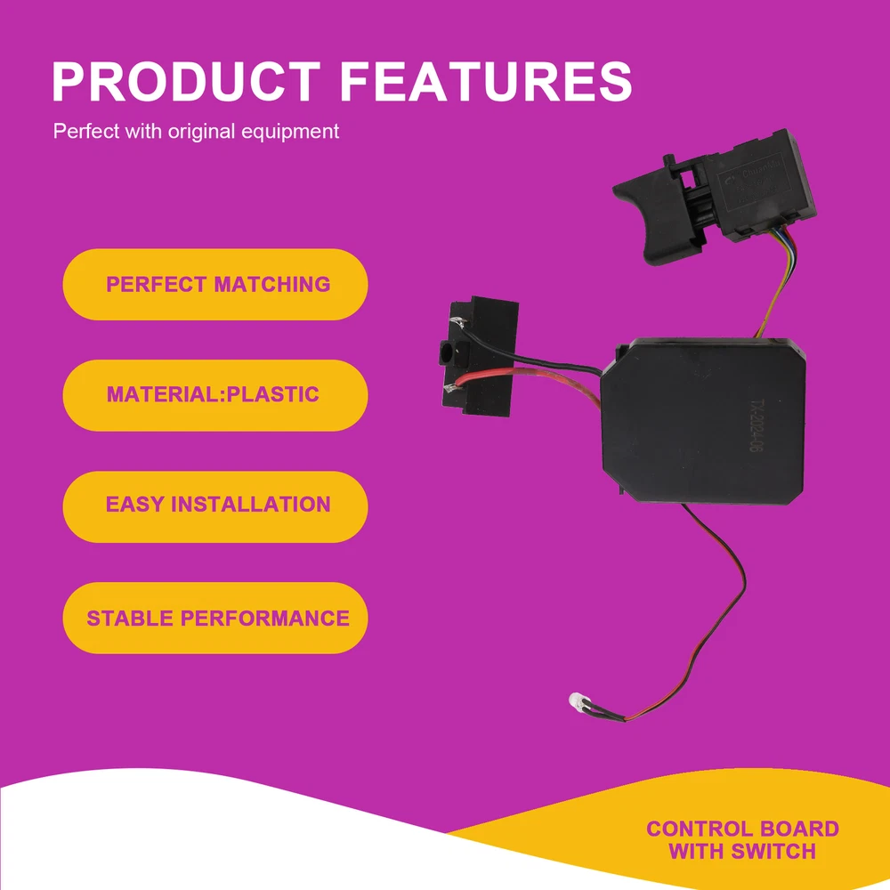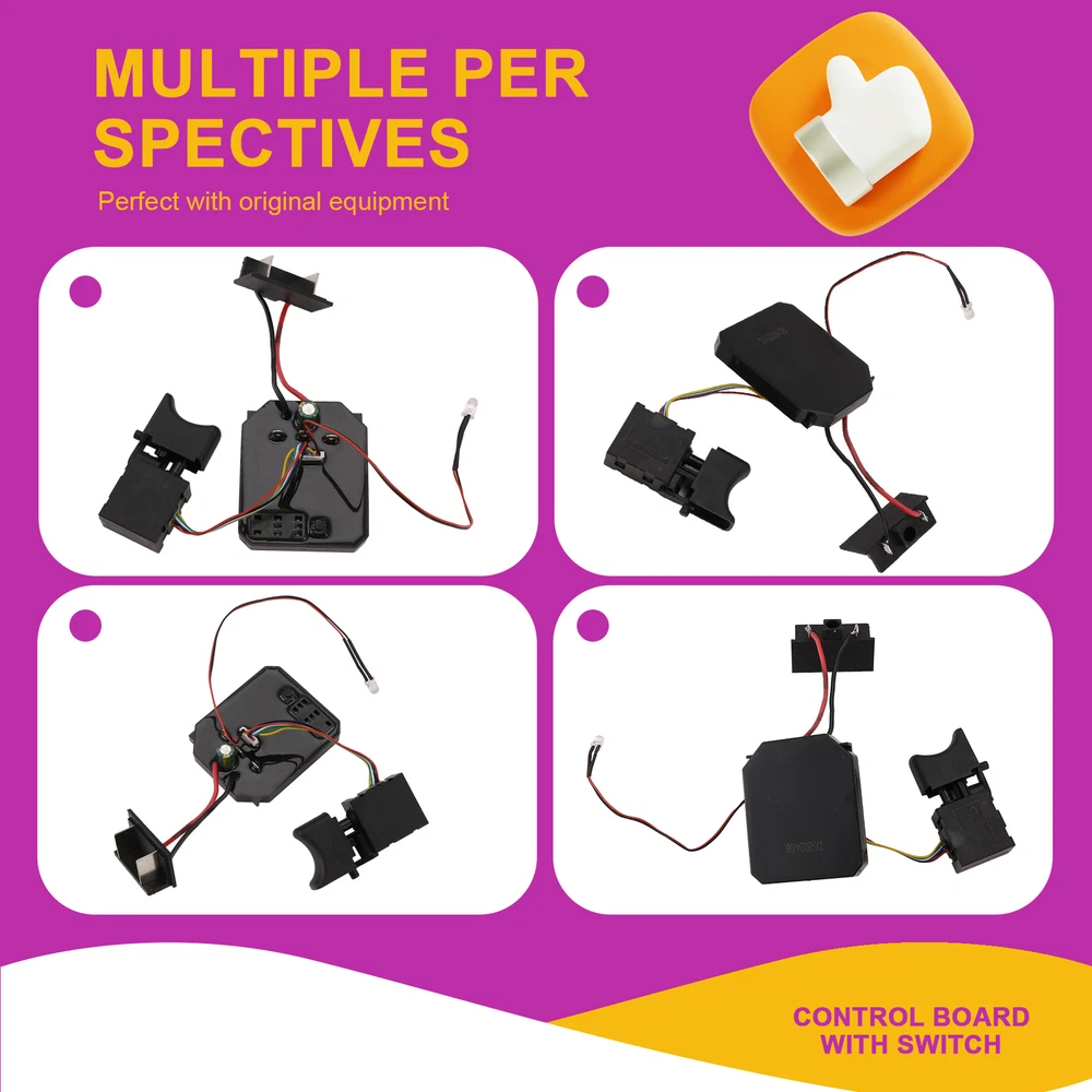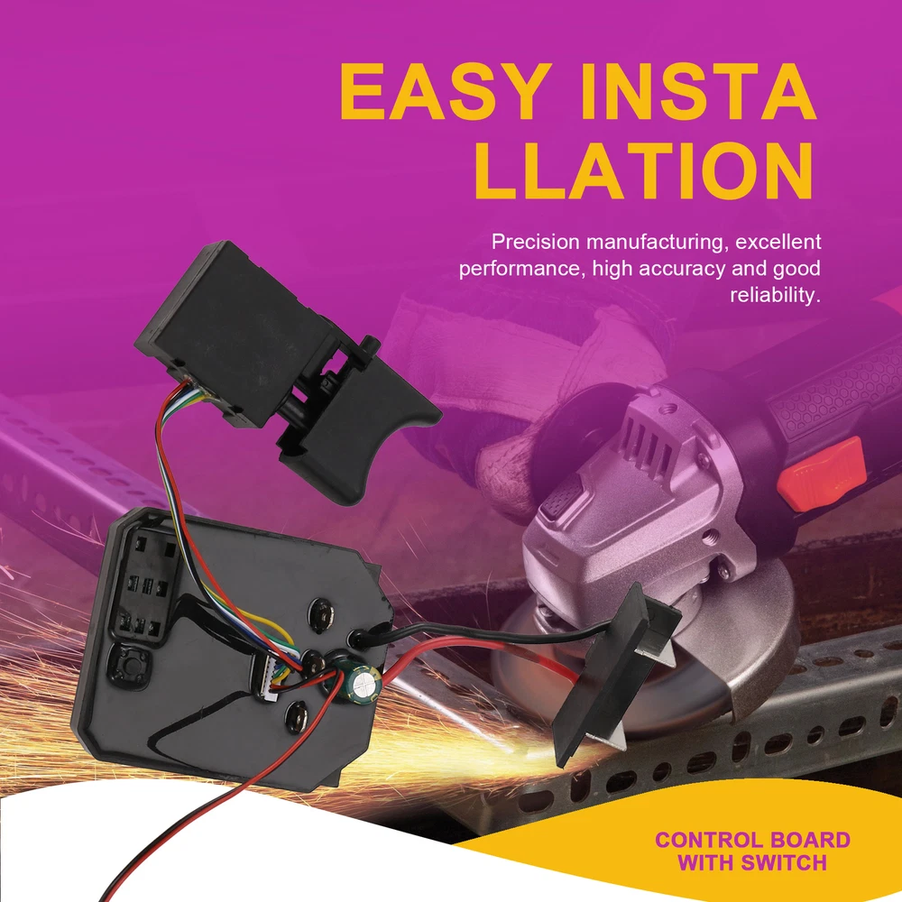 Control Board Switch for 2106/161/169 Brushless Electric Wrench Drive5832 The battery pack marked with 48V, 68V, 88V, 98V, 128VF or TV can be used, and its voltage is actually 18V (5 series 2 parallel 10 cells or 5 series 3 parallel 15 lithium batteries, fully 21V) . Before testing the machine, you must connect the wire---fix the motor---install the case---tighten the screw---make sure that the square shaft of the can be easily rotated without jamming---connect the power supply--- Press down the speed control switch so that there is no in the shell! Otherwise, there may be a buzzing alarm! The product is suitable for 2106/161/169 brushless electric wrenches. 18V 21V Brushless Angle Grinder Drive Plate Polishing For Machine Brushless sensorless angle grinder drive control board general Control board drive voltage: 18V (5 strings of lithium batteries, fully 21V), power 300W. Colour:Black Material:plastic Package Contents: 1 x Control board With Switch