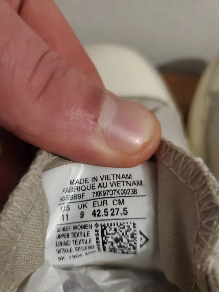In excellent nearly unworn condition, only worn a few times and no signs of wear. Back of upper shoe is elastic. Canvas material and laces have metal eyelets. See photos for details