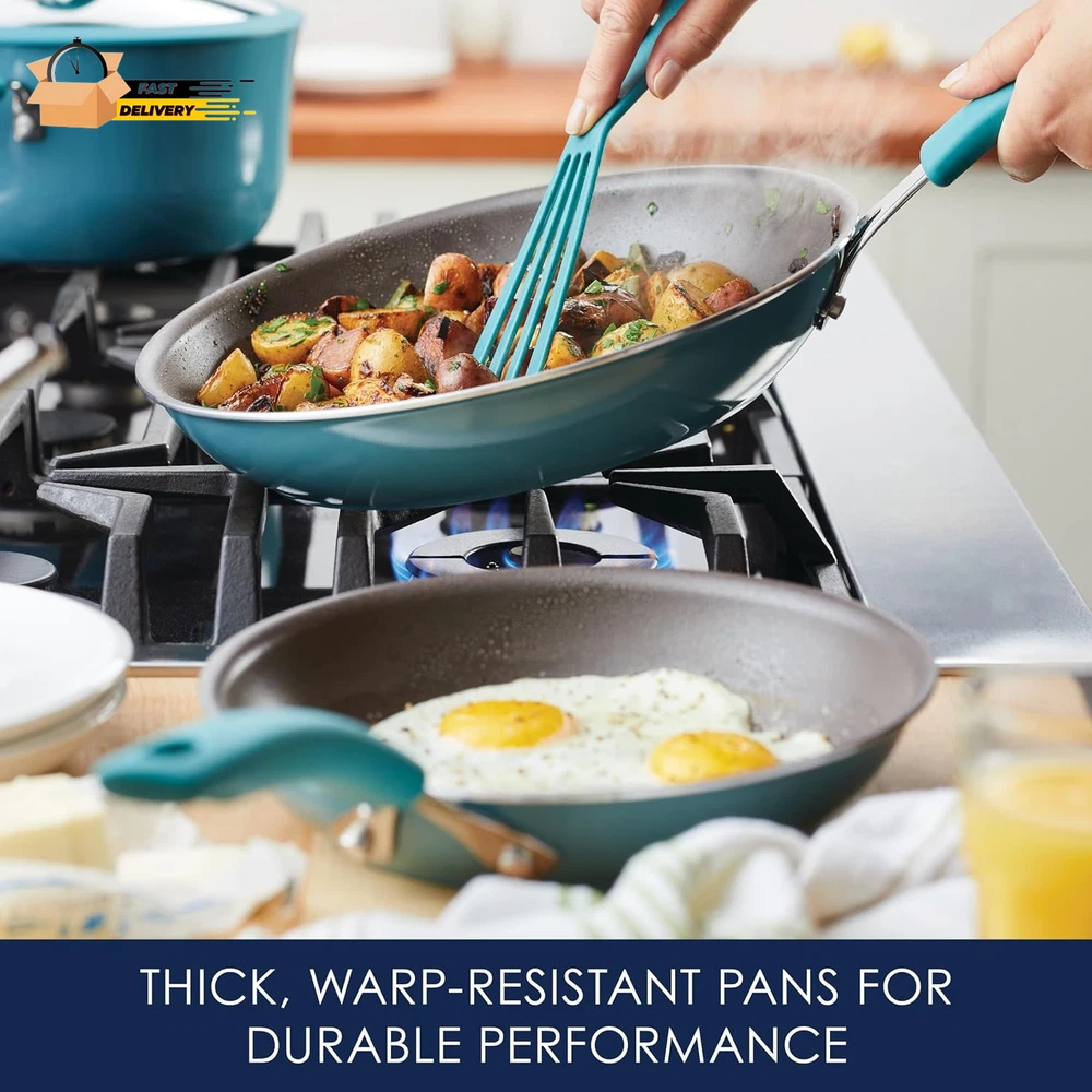 Store New Arrivals Add to Favorite View Feedback Contact Cook + Create Nonstick Frying Pans/Skillet Set, 9.5 Inch and 11.75 Description Capacity 3 Quarts Color Agave Blue Special Feature Gas Stovetop Compatible, Electric Stovetop Compatible Material Aluminum Material Type Aluminum Compatible Devices Smooth Surface Induction Has Nonstick Coating Yes Is Oven Safe Yes Handle Material Dual Riveted Silicone Model Name Cook + Create Recommended Uses For Product Kitchen cooking, sautéing, frying Additional Features Gas Stovetop Compatible, Electric Stovetop Compatible Is the item dishwasher safe? No Specific Uses For Product Home cooking Product Care Instructions Hand Wash Only Size 9.5 Inch and 11.75 Inch WHAT YOU GET: This twin pack of 9.5-inch and 11.75-inch frying pans from Rachael Ray is ideal for home chefs looking for performance with flair in a stylish and easy to clean kitchen skillet UPLEVEL YOUR COOKWARE: Upgrade the kitchen with Rachael Ray's Cook + Create cookware, now with a luxe, thicker gauge aluminum construction that feels sturdy on the stovetop and provides ridiculously fast and even heat SLIDE AND GLIDE: Frying pans feature a new, triple-layer nonstick for the ultimate in scratch resistance and durability. Foods release effortlessly and your nonstick surface stays smoother and newer, longer. BRING IT ON: Upgraded nonstick frypans feature a tulip design profile enabling the bigger, wider, better cooking surfaces for those one pan masterpieces you crave. SMOOTH OPERATORS: These versatile, easy-to-clean frying pans feature nonstick on the inside rivets, providing superb stirring and the easiest of cleanups - how cool is that? Level up your kitchen with Cook + Create Nonstick Cookware from Rachael Ray. These practical 9.5-inch and 11.75-inch frying pans are crafted from thicker gauge aluminum for a luxe and sturdy feel and reliable stovetop performance that heats up quickly and evenly. The on-trend, contemporary design features a tulip-shaped profile for bigger and wider cooking surfaces and optimum frypan performance with flair. Want even more convenience? The skillets also feature nonstick on the inside rivets, for super-smooth stirring and easy-clean cooking surfaces that don't get food build-up around the handle attachments. A new, triple layer nonstick provides the ultimate in scratch resistance and durability, and the frying pan is oven safe to 400°F. For even more of what you want (and less of what you don't), reach for Rachael Ray Cook + Create cookware and uplevel your mealtime moments with performance and flair. ABOUT US We offer the best prices around on high quality products. Our E-store includes media such as books, movies, music and games while offering electronics, toys, sporting apparel, clothing, tools, general home, garden items and more. SHIPPING We are always working hard to ensure your package arrives as soon as possible. Please understand that some factors like weather, high postal traffic, and the performance of shipping companies are outside of our control. We offer free shipping to the lower 48 states and ship within 2 business days of payment, usually sooner. We do not accept P.O. Boxes. Please provide a physical address. For shipping outside of the continental USA, we only use eBay's Global Shipping Program.The item is shipped to KY and then sent to the rest of the world. International customers are responsible for all duties and taxes. Continue to check out in order to calculate costs for shipping the item to your country. Messages regarding eBay's Global Shipping Program MUST be directed at eBay EXCLUSIVELY. RETURNS We offer a 30-Day Return Policy on items which you are not completely satisfied with. You have the option for a full-refund or an exchange of the item. No returns are available on items shipped outside of the USA. PAYMENT We accept PayPal. CONTACT US This page content is yet to come Please ad us to your favorite seller and visit again later Thank You CUSTOMER SATISFACTION We try our very best to make sure every customer is completely satisfied. If there's a problem, message us! We're happy to help. WE ACCEPT Copyright © 2021 AutoDS. | All Rights Reserved