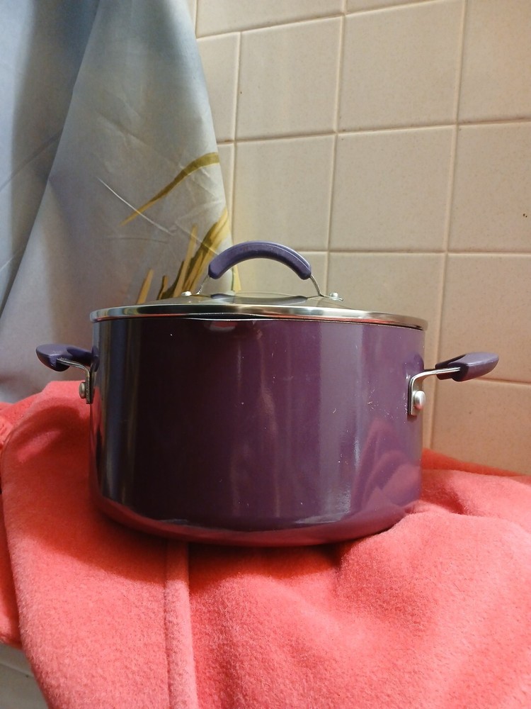 This Cook's Essentials 6 qt pot is a must-have addition to your kitchen. The purple enamel finish adds a pop of color to your cookware collection, while the non-stick surface makes cooking and cleanup a breeze. The pot comes with a lid and is dishwasher safe for easy cleaning. Made of high-quality aluminum, this pot is perfect for all your cooking needs. Whether you're boiling, steaming, or sautéing, this pot will get the job done. The Cook's Essentials brand is known for its quality products, and this pot is no exception. Add it to your cart today and take your cooking to the next level.