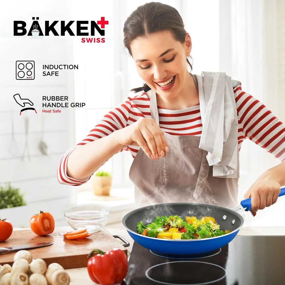 POTS AND PANS – with two sauce pots, a Dutch oven pot and jumbo cooker included you can boil, broil and simmer a range of food items up to a maximum temperature of 500° Fahrenheit (260° Celsius). All our pots come with see-through tempered glass lids for added versatility and measurements inside the pots for convenience. Also included are a small fry pan and a medium fry pan for eggs, pancakes and so much more! COOKWARE SET – update your existing cookware to our professional home kitchenware which features a massive 23 items! Everything you need to create top class meals is included. Our entire pots and pans set has a durable and long lasting non-stick coating as well as comfortable and cool to touch form-fitting handle grips for your convenience. Made from reinforced pressed aluminum metal they are the must have cook set for your home SUITABLE FOR YOUR COUNTER COOKTOP – we have designed our cook ware to be compatible with gas, electric, ceramic and induction counter cooktops. Our pan set is food grade safe and suitable for all abilities and is designed to effectively distribute and retain heat for all-round even cooking. With an integrated plaid wave pattern for exceptional non-stick surfaces in all pans POTS AND PANS – with two sauce pots, a Dutch oven pot and jumbo cooker included you can boil, broil and simmer a range of food items up to a maximum temperature of 500° Fahrenheit (260° Celsius). All our pots come with see-through tempered glass lids for added versatility and measurements inside the pots for convenience. Also included are a small fry pan and a medium fry pan for eggs, pancakes and so much more! UTENSILS INCLUDED – we want you to have everything you need when roasting, baking and preparing delicious meals and snacks which is why we have also included heat-resistant kitchen tool utensils with our pan set. The soup ladle, spatula, brush and measuring spoons are made from engineered silicone and all match the design of the pots and pans so you can enjoy modern cookware in your kitchen LONG LASTING TECHNOLOGY – our pots and pans and bakeware set items are all stain resistant and easy to clean. They are dishwasher safe, but we recommend handwashing for better results. The environmentally friendly construction, stylish color choice and extensive collection of items makes this induction cookware an all-rounder for beginners and experts alike. It is a great gift idea for those starting out in their first home, newlyweds or for friends and relatives who love to cook