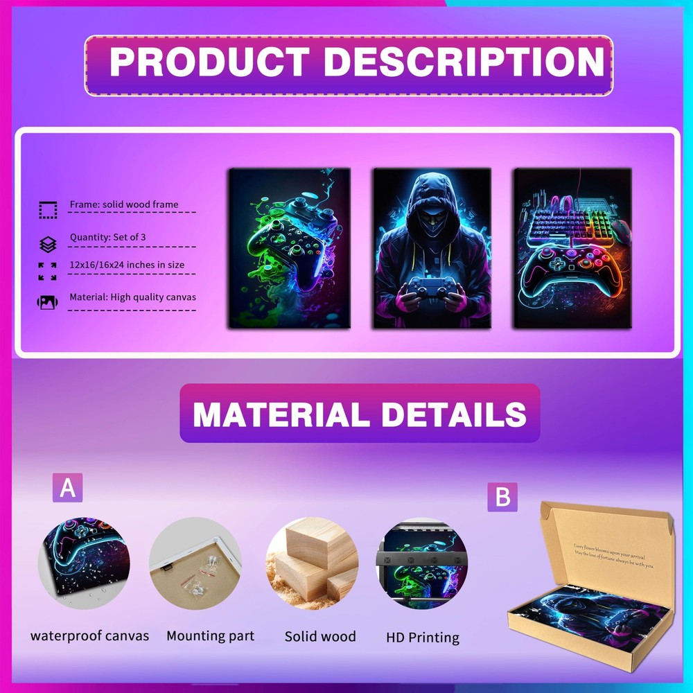 gaming posters gaming wall decor gaming wall art gamer wall decor gaming posters for boys room game room decor gamer room decor for boys fortnite poster gaming poster gaming decor gaming room decor boys room decor room decor for teen boys gaming room decor for boys gaming room teen boy room decor game room wall decor decor gamer decor gamer decor for boys bedroom fortnite wall decor gaming bedroom decor fortnite room decor bedroom wall art posters for room boy room decor gaming decor for boys bedroom room decor for boys boys gaming room decor teenage boy room decor gamer room decor fortnite posters pokemon posters for boys room posters for boys room boy bedroom decor room wall art video game posters fortnite posters for boys room roblox poster video game decor teen room decor boy wall poster fortnite wall decals teen wall art fortnite rug teen boys room decor video game room decor boys room wall decor framed canvas wall art boys wall art gaming bedroom decor for boys ryans world games game room big wall decor roblox pics boys wall decor pokemon rug teen boy room fortnite decor fortnite tapestry of duty decor framed wall decor fortnite bedroom decor for boys wall games for game room the boys poster pokemon wall decor ' room décor playstation decor teen boy bedroom decor wall decor set boy wall decor fortnite room decor for boys room decor posters roblox room decor for boys gaming wallpaper boy room wall decor game room decor for boys boys gamer room decor wall art gamer room of duty poster wall art sets game decor for boys room teen wall decor girl in red poster pokemon wall art room decor for boys kid room decor pokemon room decor for boys pokemon rug for boys bedroom cuadros y decoracion pared gamer wall art framed wall art for bedroom teen room wire wall art art decor gaming pictures wall decor decor wall gaming room wall decor gamer posters for boys room Immersive Gaming Experience: Elevate your gaming haven with our 3pcs Game Room Decor. These neon gaming wall art posters encapsulate the excitement and energy of gaming culture, featuring vibrant colors and iconic gaming that bring your favorite games to life Ideal for Gaming Enthusiasts of All Ages: Perfect for children, youth, and teen gamers alike, these canvas prints are designed to adorn the walls of game rooms, bedrooms, and play areas. The gamer theme adds a touch of authenticity to any gaming space, making it the ultimate retreat for gamers Perfect Gift for Gaming Fans: Searching for the perfect gift for a gaming enthusiast? Look no further! Whether it's for a , holiday, or special occasion, these game room decor posters are a surefire way to delight any gamer and enhance their gaming setup Versatile Decor for Various Gaming Themes: these canvas prints complement a wide range of gaming themes. Elevate your gaming experience and express your love for gaming in style. The neon colors and detailed designs add depth and character to any gaming room decor Easy Installation and Lasting Impressions: Measuring 16x24 in, these framed canvas prints are easy to install and instantly transform any space into a gaming paradise. The durable construction ensures long-lasting enjoyment, allowing gamers to immerse themselves in their passion for years to come