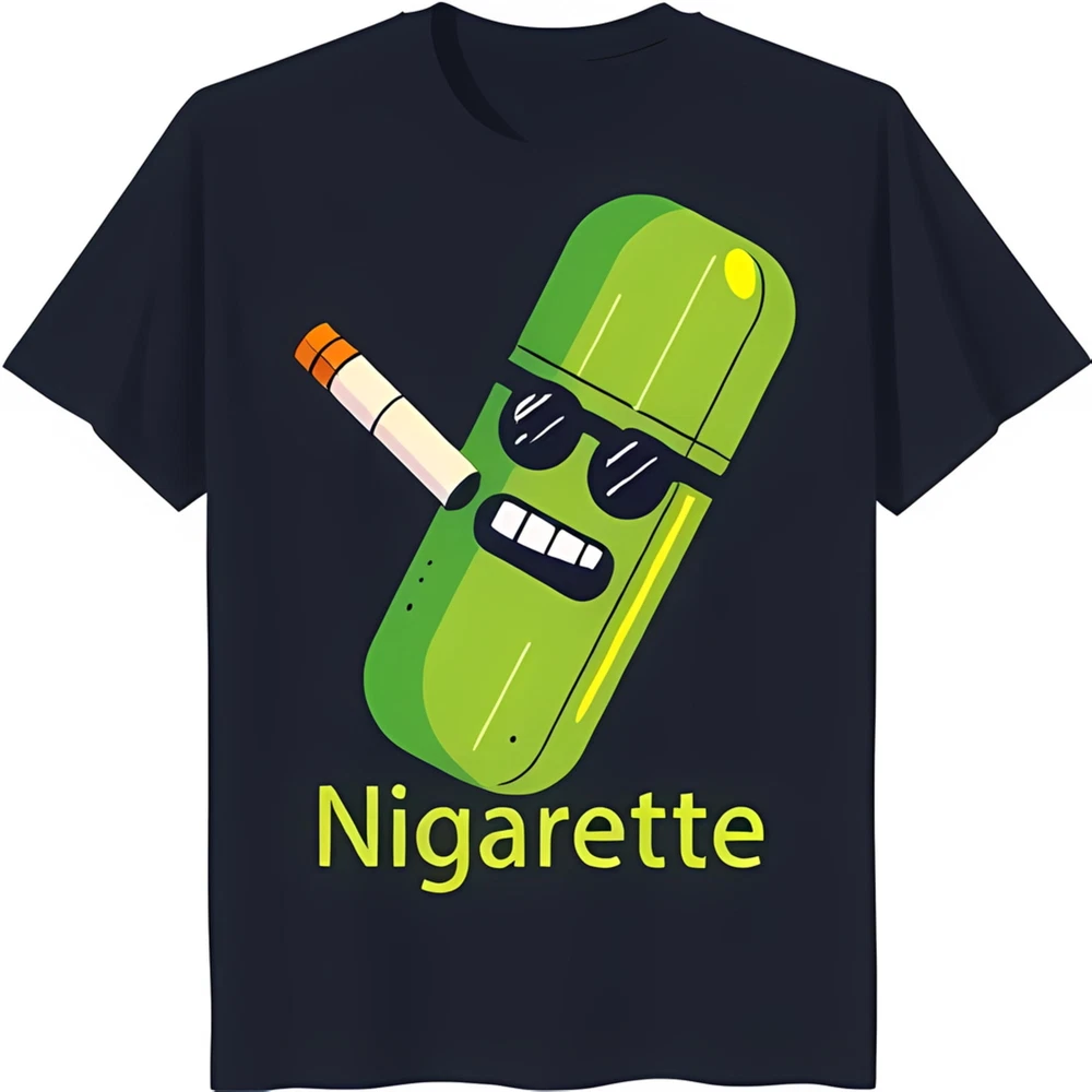 Cool Green Cartoon in Shades on Nigarete Black T-Shirt