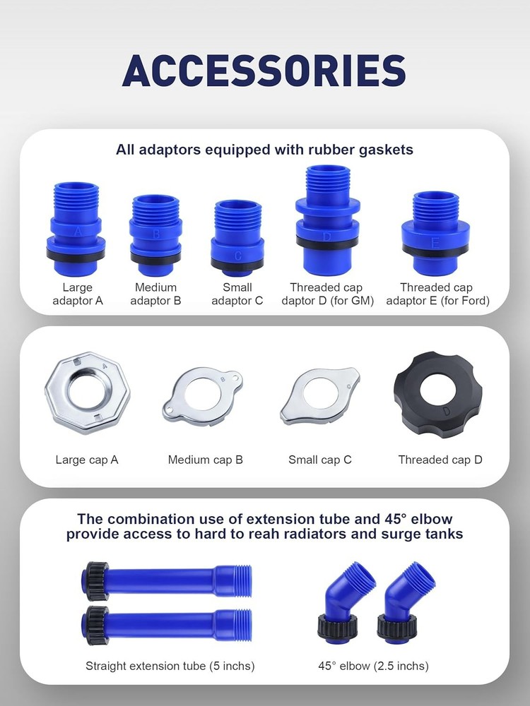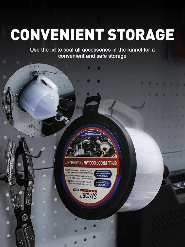 Coolant Bleeder Kit, Universal Radiator Burping Funnel, No-Spill Coolant Funnel, Flush Kit radiator coolant funnel features translucent body with clear scale, holds up to 77 oz ( coolant, allows precise control of the coolant to be added, eliminates trapped air pockets which causes erratic cooling system and heater perfoemance This antifreeze funnel kit comes with 5 adaptors and 4 caps, works on almost any domestic or imported vehciles; and comes with 2 pcs straight extension tubes & 2 pcs 45° elbows allow access to caps located under shrouds or in fender wells special designed funnel with adaptor equipped with rubber gasket ensures no spill and no lekage during changing radiator coolant, flushing systems, vacuum filling, or replacing hoses, keeps vehicle cooling system and other engine parts clean Unlike other coolant refill kit comes with a separate fluid stopper, funnel designed with a shut-off valve on the funnel which coltrol the flow velocity of the coolant in a easier way, ensures coolant changing/refilling job more easy and convenient burping funnel for radiator, cooling system flush kit, coolant flush kit, radiator bleeder kit, antifreeze flush kit, coolant funnel burping kit, spill free funnel, radiator burp funnel, radiator bleeder radiator funnel burping kit, no spill coolant funnel kit, oil funnel, oil funnel for oil change, oil funnel kit, kit de embudo para refrigerante, kit de limpieza de radiador, embudo de refrigerante, kit de eructo para embudo de refrigerante kit de limpieza de refrigerante, kit de purga de refrigerante, embudo del radiador, kit de purga de radiador, kit de embudo sin derrames para sistema de refrigeración, kit de embudo para refrigerante sin derrames, kit de embudo para llenar radiadores Visit the store
