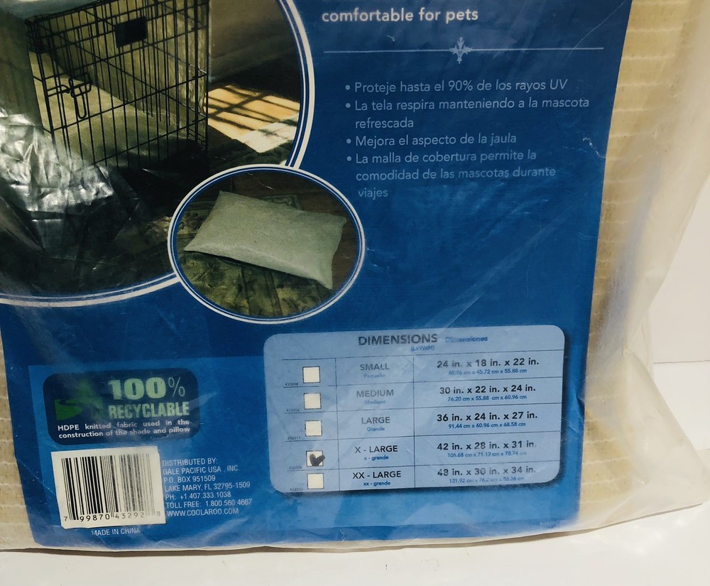 Coolaroo Dog Crate Shade Cover 42” x 28” x 31” Size XL Cover Only No Pillow. Condition is Brand New. Comes with everything you see in the pictures only. Please view pictures to evaluate for yourself. Shipped via USPS Ground Advantage.