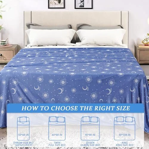 【BREATHABLE & COMFORTABLE】 We know that many people sweat at night or during naps, resulting in an inability to get a good night's sleep, especially in the summer. The cool fabric upgrade allows you to use in the summer more cool and fit your skin, keeping it breathable and dry. When you wake up, you won't feel sticky inside the blanket or covered in sweat. 【LONG-LASTING COOL FEELING】 Even in warm and hot summer weather, our special Arc-chill cooling fiber blanket (Q-Max>0.45) does an excellent job of keeping your skin cool. cool blanket is the perfect bedding choice for hot sleepers, night sweats, and hot flashes. 【VARIOUS USES】 If you night sweats when you sleep, our queen size blanket can accelerate the heat absorption and perspiration of the body surface, greatly improving the comfort index of summer life. You can also use big blanket for queen size bed, couch. Spend a special summer with the ones you love. 【PICK THE RIGHT SIZE】 We offer summer blankets in four sizes for different needs. For the 50"x60" cold blanket, just right for the single bed/couch/sofa. It is very light and easy to carry. Whether you're in the car or catching a plane, you can take the cooling comforter anywhere. 60"x80", 90"x90" and 90"x108" fit on the twin/full/queen bed. 【EASY CARE】 sky blanket is completely hand washable or machine washable. However, it is recommended to put the thin blanket in a laundry mesh bag to prevent tangling and damage, providing good protection for the lightweight cooling blanket. After washing, it is best to hang it in a cool place to dry, not tumble dry.