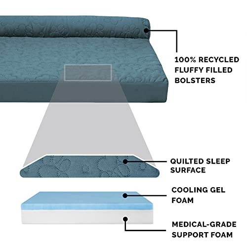 30 Days Return Policy Fast Delivery Trusted seller Cooling Gel Dog Bed for Medium/Small Dogs w/ Removable Bolsters & Washable Cover, For Dogs Up to 35 lbs - Pinsonic Quilted Paw L Shaped Chaise - Bluestone, Medium Product Description COMFORT AS PRIORITY: The stylish L shaped chaise design creates a cozy and inviting space that promotes comfort and security; designed with supportive bolsters for dogs to rest their heads on for optimum lounging comfort SLEEP SURFACE: Featuring pinsonic quilted polyester fabric that is gentle on noses and paws for enhanced snuggling and burrowing comfort EASY ON JOINTS: The gel top helps whisks heat away and contours to your pet's figure to cushion pressure points and improve body alignment; fluff-filled bolsters support the neck, back, hips, and joints to help ease discomfort and promote restful sleep PRODUCT DETAILS: Cooling Gel Dog Bed, Bluestone; Medium - 30" x 20" x 6" (3" Base Foam Height; Sleep Surface: Approx. 26.5" x 16.5") AVAILABLE IN: Iceberg Green, Bluestone, and Titanium; the dog bed also comes in Medium, Large, and Jumbo sizes.IMPORTANT: Not suitable for pets with excessive teething or destructive chewing behavior.EASY CARE: The removable dog bed cover is completely machine washable; for more specific cover and foam care instructions, please refer to the hang tag and/or seam label if applicable. Shipping Returns Payment Shipping Shipping is FREE to all addresses other than APO/PO boxes in the lower 48 states. All our stock ships from US-based warehouses. Shipped via USPS or UPS (depending on location and package weight) Unless stated otherwise, all orders will ship within 24-72 hours of your payment being processed. Check our feedback to see the great reviews of FAST shipping we offer. Returns As our valued customer, we will do our best to make sure the product you receive arrives to you on time and as expected. If you are not satisfied with your purchase, please contact us within 30 days of receiving your order to process a return. Payment We currently accept payment via eBay managed payments only. Once payment is cleared, we will dispatch your shipment within 1-3 business days. Please refer to the "Shipping" tab for more information regarding shipping speed to your destination.