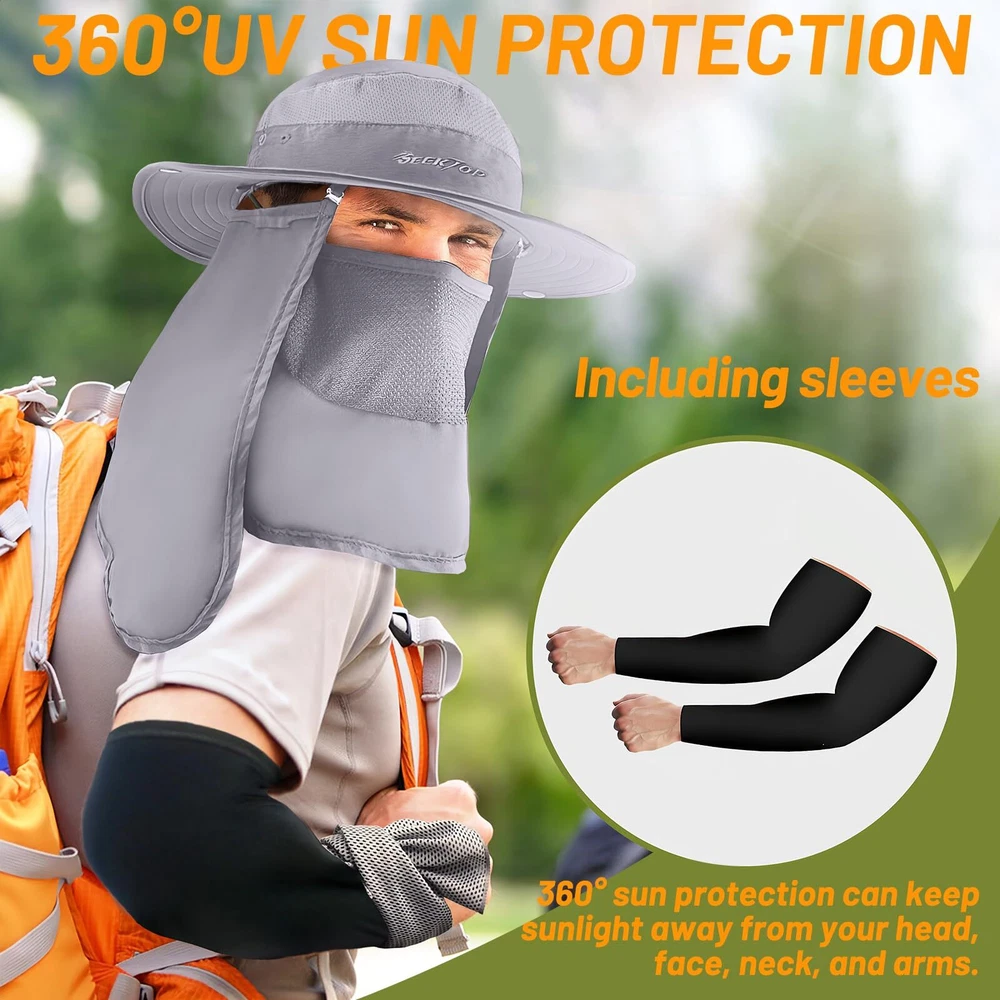 This sun protection set is a game-changer for outdoor activities! The hat fits comfortably with just the right brim width, and the removable neck flap and reinforced face cover offer extra shade without feeling bulky. The cooling arm sleeves are breathable and stay put, making them perfect for long hikes or fishing trips. Lightweight yet effective, this set keeps you cool and protected all day. Highly recommend for anyone who loves the outdoors!
