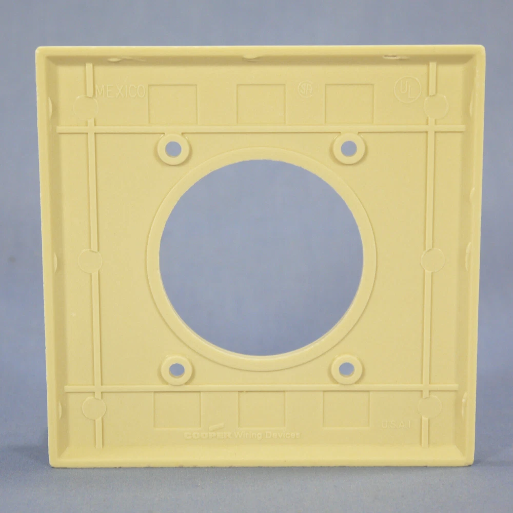 Fruit Ridge Tools, LLC Our eBay Store Contact Us Add to Favorite Sellers Cooper Standard 2G Ivory Dryer Range Welder 2.156" Outlet Cover Wallplate 2168V Product Details Quantity in Lot: 1 Brand: Cooper Wiring Devices Part Number: 2168V Color: Ivory Material: Plastic Gangs: 2-Gang Size: Standard Type: 30 & 50 Amp Power Outlet 2.15in. Hole Wallplate Openings: 30 & 50 Amp Power Outlet 2.15in. Hole Grade: Standard Grade Cooper 2168V ivory 2-gang single outlet cover. Standard grade with 2.156" diameter receptacle opening. Standard size, measuring 4.5"h x 4.563"w. Typical use would be for straight blade power outlets. Features include: Non-flammable thermoset phenolic or urea Flush-fitting, warp-resistant design Designed for high dielectric strength and arc resistance Resistant to fading, discoloration, grease, oils, organic solvents, moisture, and scratches Easy to clean, smooth finish Noncombustible Each is individually packaged with matching mounting screws This is New Old Stock and is returnable for any reason. (SKU # CWD2168V-EA; Weight: 0.1500 lbs.)
