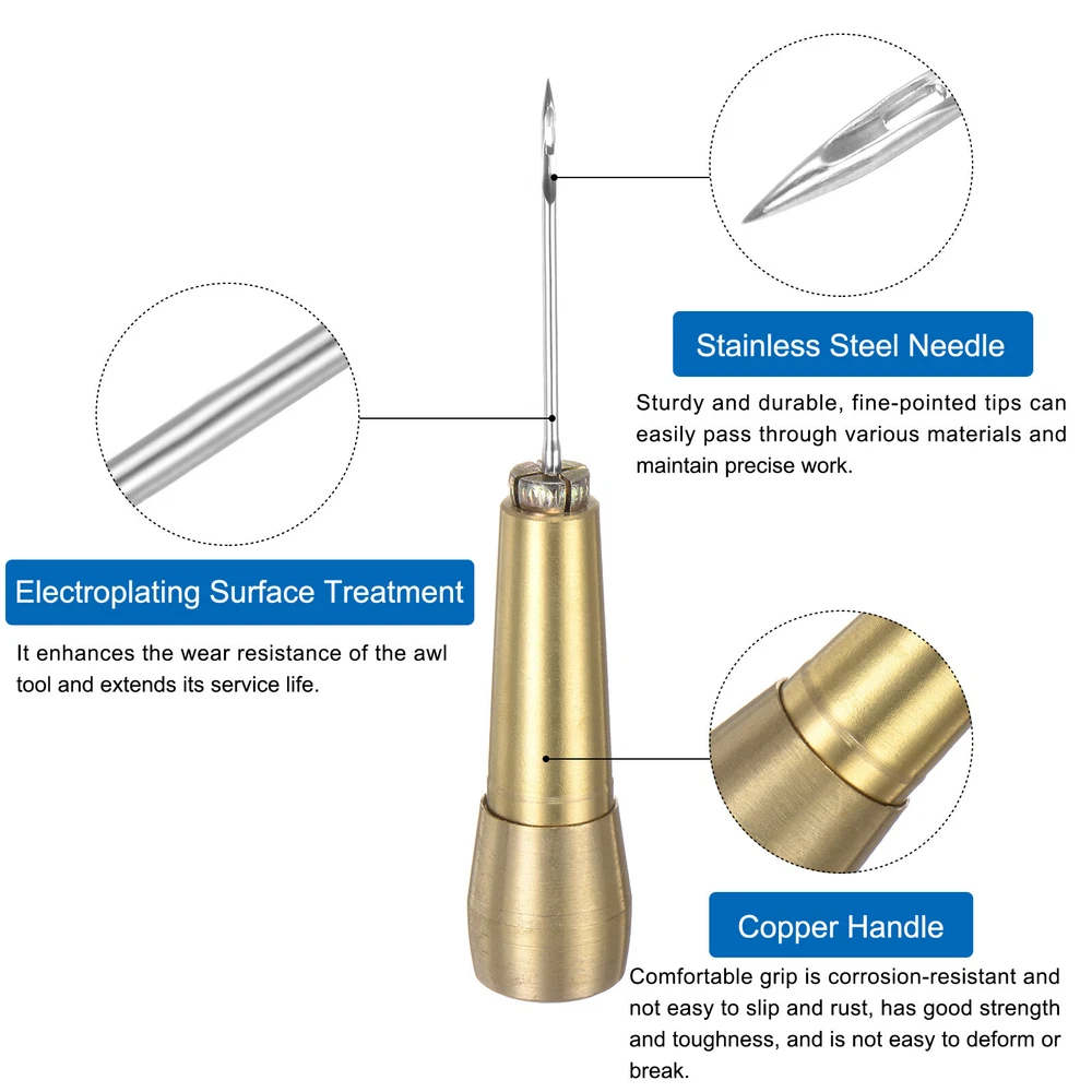 Document Awl Size: 110 x 21mm / 4.33" x 0.83"(L x W)Needle Size: 55 x 2mm / 2.17" x 0.08"(L x W)Material: Copper Handle + Stainless Steel NeedleSurface Treatment: PlatingStyle: Copper Handle AwlColor: YellowPackage Content: 1set Sewing Awl(1 handle + 3 needles).The copper handle can maintain a comfortable grip, making it feel gentle and not easy to slip; it is also anti-oxidation, not easy to rust and corrosion-resistant, and has good strength and toughness, not easy to deform or break; the sturdy and durable stainless steel needle has an extremely fine pointed tip, It can easily pass through various fabrics and materials and maintain precise work for a long time.Our copper handle awl adopts an electroplating surface treatment, which increases the gloss of the sewing awl surface and improves the appearance quality. It also enhances the corrosion resistance and wear resistance of the awl tool and extends its service life.This convenient copper-handled awl can be used to sew or repair leather shoes, bags, soles, canvas, etc. It can also assist in manual work such as leather drilling, manual punching, daily sewing, and DIY crafts.Small and practical tool, needle changing can be completed by turning the top of the copper handle, the needle can be removed when not in use, they are lightweight and easy to store together, do not take up much space, and are easy to find the next time you use them.When using the hand-held awl, be careful to prevent fingers or other body parts from coming into contact with the needle to prevent accidental. Copper Handle Sewing Awl Set Handwork Sewing Awl Needle Repair Tool Kit, Yellow Awl Size: 110 x 21mm / 4.33" x 0.83"(L x W) Needle Size: 55 x 2mm / 2.17" x 0.08"(L x W) Material: Copper Handle + Stainless Steel Needle Surface Treatment: Plating Style: Copper Handle Awl Color: Yellow Package Content: 1set Sewing Awl(1 handle + 3 needles). The copper handle can maintain a comfortable grip, making it feel gentle and not easy to slip; it is also anti-oxidation, not easy to rust and corrosion-resistant, and has good strength and toughness, not easy to deform or break; the sturdy and durable stainless steel needle has an extremely fine pointed tip, It can easily pass through various fabrics and materials and maintain precise work for a long time. Our copper handle awl adopts an electroplating surface treatment, which increases the gloss of the sewing awl surface and improves the appearance quality. It also enhances the corrosion resistance and wear resistance of the awl tool and extends its service life. This convenient copper-handled awl can be used to sew or repair leather shoes, bags, soles, canvas, etc. It can also assist in manual work such as leather drilling, manual punching, daily sewing, and DIY crafts. Small and practical tool, needle changing can be completed by turning the top of the copper handle, the needle can be removed when not in use, they are lightweight and easy to store together, do not take up much space, and are easy to find the next time you use them. When using the hand-held awl, be careful to prevent fingers or other body parts from coming into contact with the needle to prevent accidental. Hot Item Payment 1.We accept eBay payment . 2.Payment must be received within 7 business days of auction closing. Shipping 1.We ship to your eBay or Paypal address. Please make sure your eBay and Paypal address is correct before you pay. 2.Items will be shipped within 1-3 business day when we received payment. 3.Delivery time depends on destination and other factors. Description Policy Copper Handle Sewing Awl Set Handwork Sewing Awl Needle Repair Tool Kit, Yellow Awl Size: 110 x 21mm / 4.33" x 0.83"(L x W) Needle Size: 55 x 2mm / 2.17" x 0.08"(L x W) Material: Copper Handle + Stainless Steel Needle Surface Treatment: Plating Style: Copper Handle Awl Color: Yellow Package Content: 1set Sewing Awl(1 handle + 3 needles). The copper handle can maintain a comfortable grip, making it feel gentle and not easy to slip; it is also anti-oxidation, not easy to rust and corrosion-resistant, and has good strength and toughness, not easy to deform or break; the sturdy and durable stainless steel needle has an extremely fine pointed tip, It can easily pass through various fabrics and materials and maintain precise work for a long time. Our copper handle awl adopts an electroplating surface treatment, which increases the gloss of the sewing awl surface and improves the appearance quality. It also enhances the corrosion resistance and wear resistance of the awl tool and extends its service life. This convenient copper-handled awl can be used to sew or repair leather shoes, bags, soles, canvas, etc. It can also assist in manual work such as leather drilling, manual punching, daily sewing, and DIY crafts. Small and practical tool, needle changing can be completed by turning the top of the copper handle, the needle can be removed when not in use, they are lightweight and easy to store together, do not take up much space, and are easy to find the next time you use them. When using the hand-held awl, be careful to prevent fingers or other body parts from coming into contact with the needle to prevent accidental. Hot Item Payment 1.We accept eBay payment . 2.Payment must be received within 7 business days of auction closing. Shipping 1.We ship to your eBay or Paypal address. Please make sure your eBay and Paypal address is correct before you pay. 2.Items will be shipped within 1-3 business day when we received payment. 3.Delivery time depends on destination and other factors.